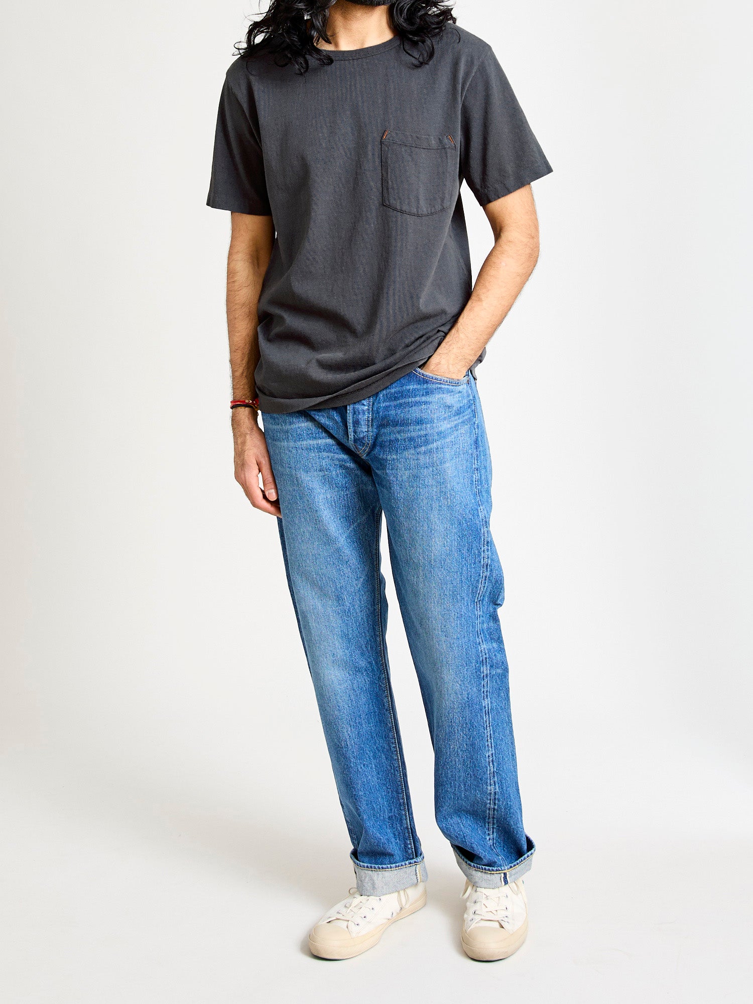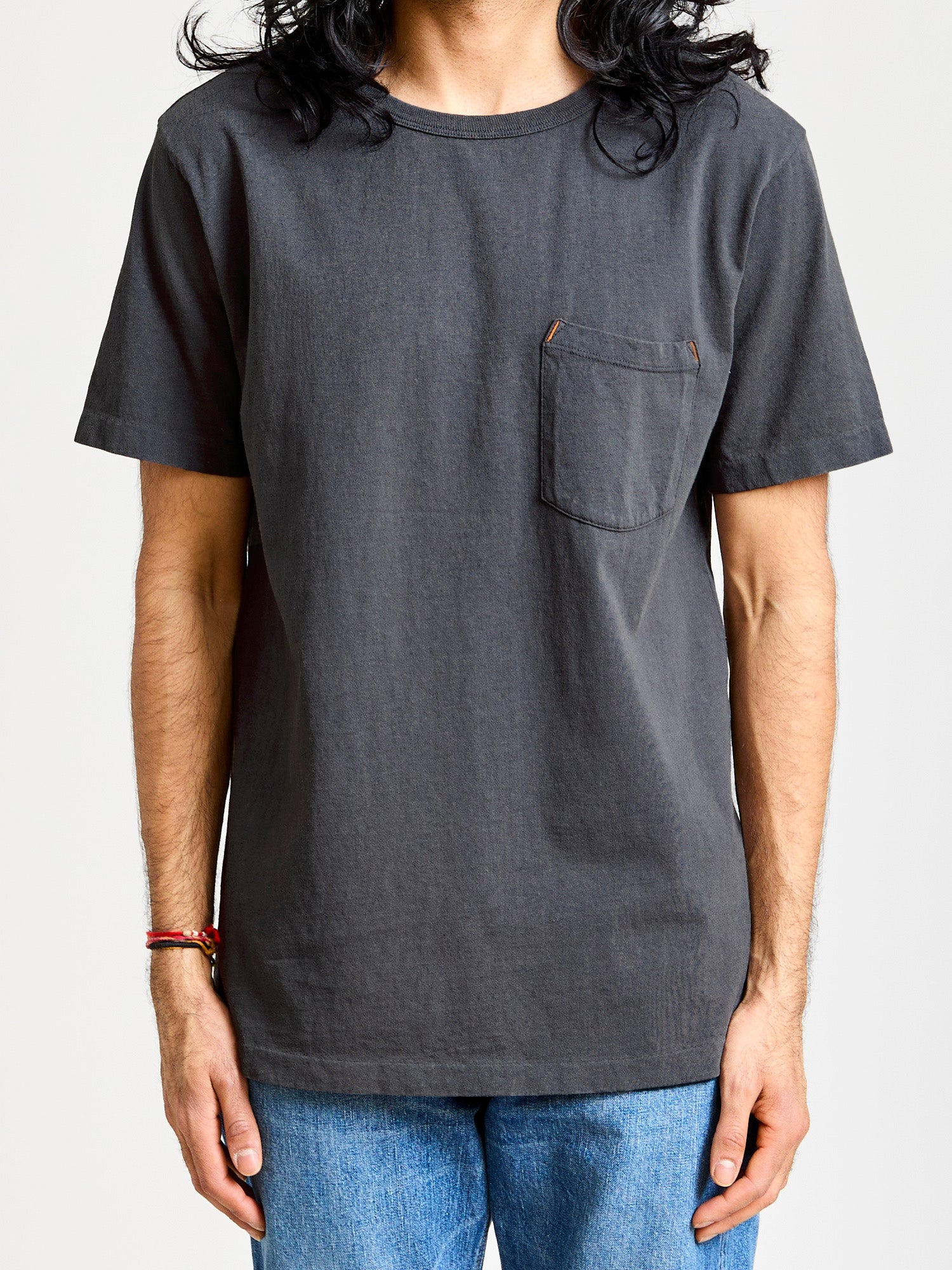 • This pocket t-shirt is crafted using a US woven 9oz cotton knit made exclusively for Freenote. Featuring a handpicked custom color palette, the shirts come garment-dyed and pre-washed for a vintage look and feel. All t-shirt colors are custom and unique to Freenote. Cut in a regular fit, the shirts are finished with a single chest pocket and bar tack stitch accents.
