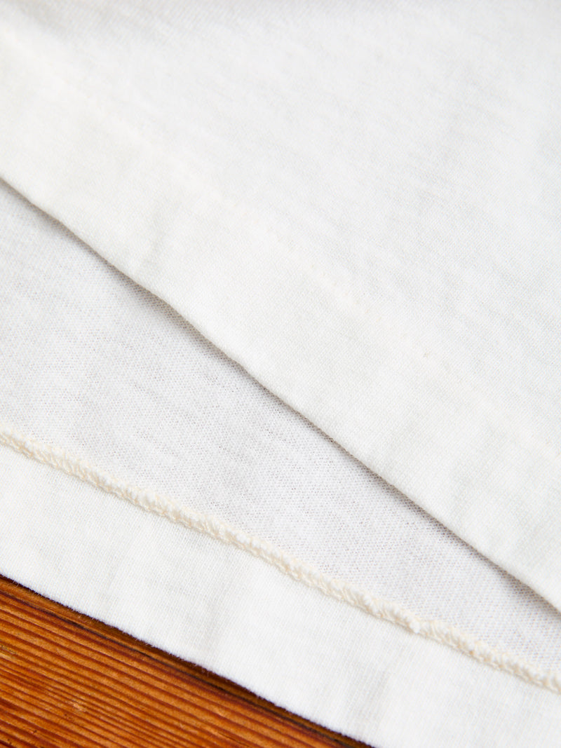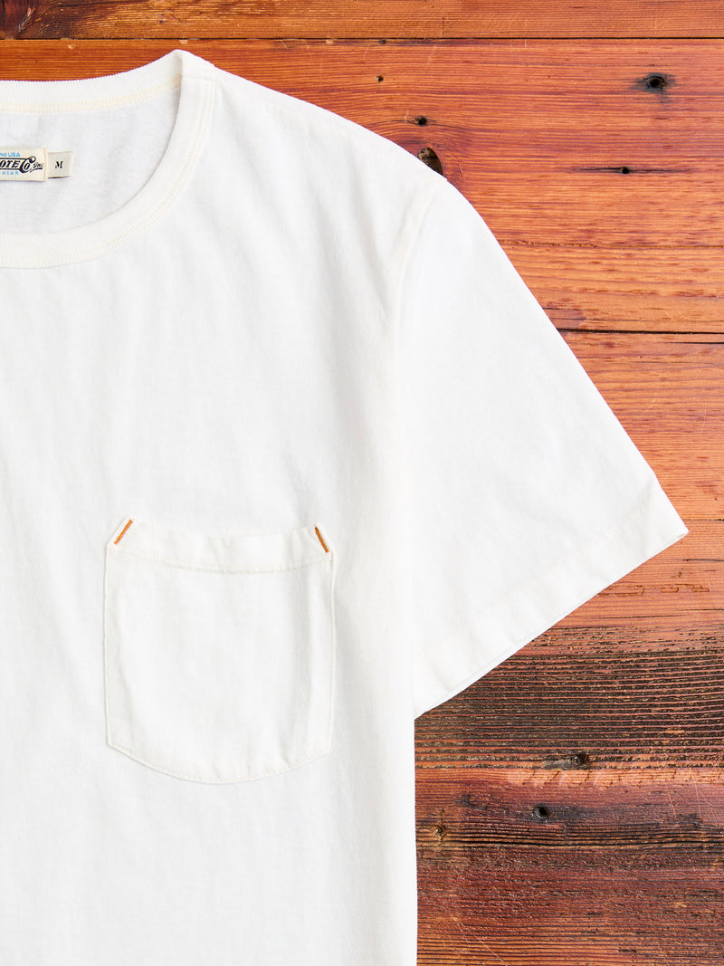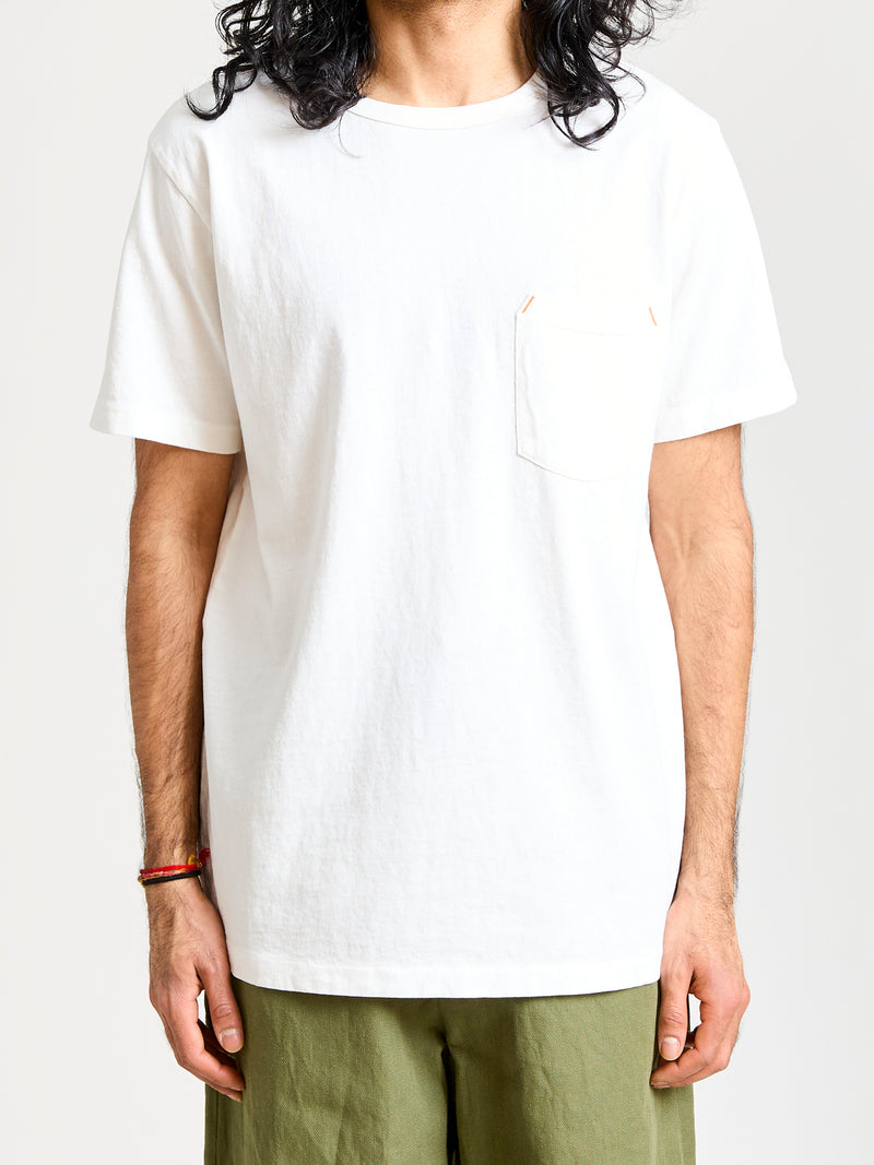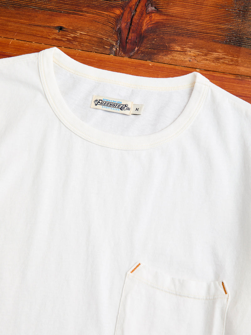 • This pocket t-shirt is crafted using a US woven 9oz cotton knit made exclusively for Freenote. Featuring a handpicked custom color palette, the shirts come garment-dyed and pre-washed for a vintage look and feel. All t-shirt colors are custom and unique to Freenote. Cut in a regular fit, the shirts are finished with a single chest pocket and bar tack stitch accents.