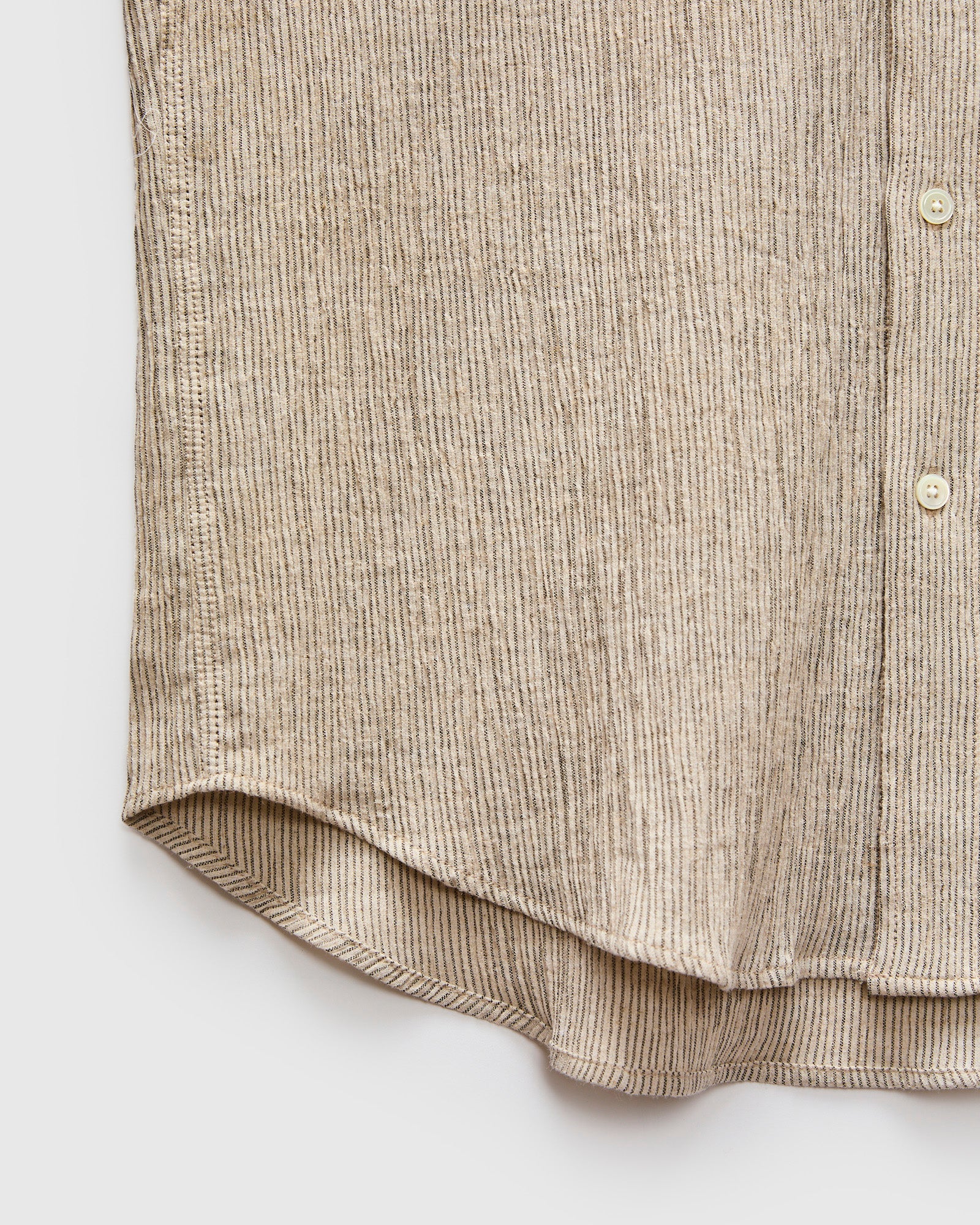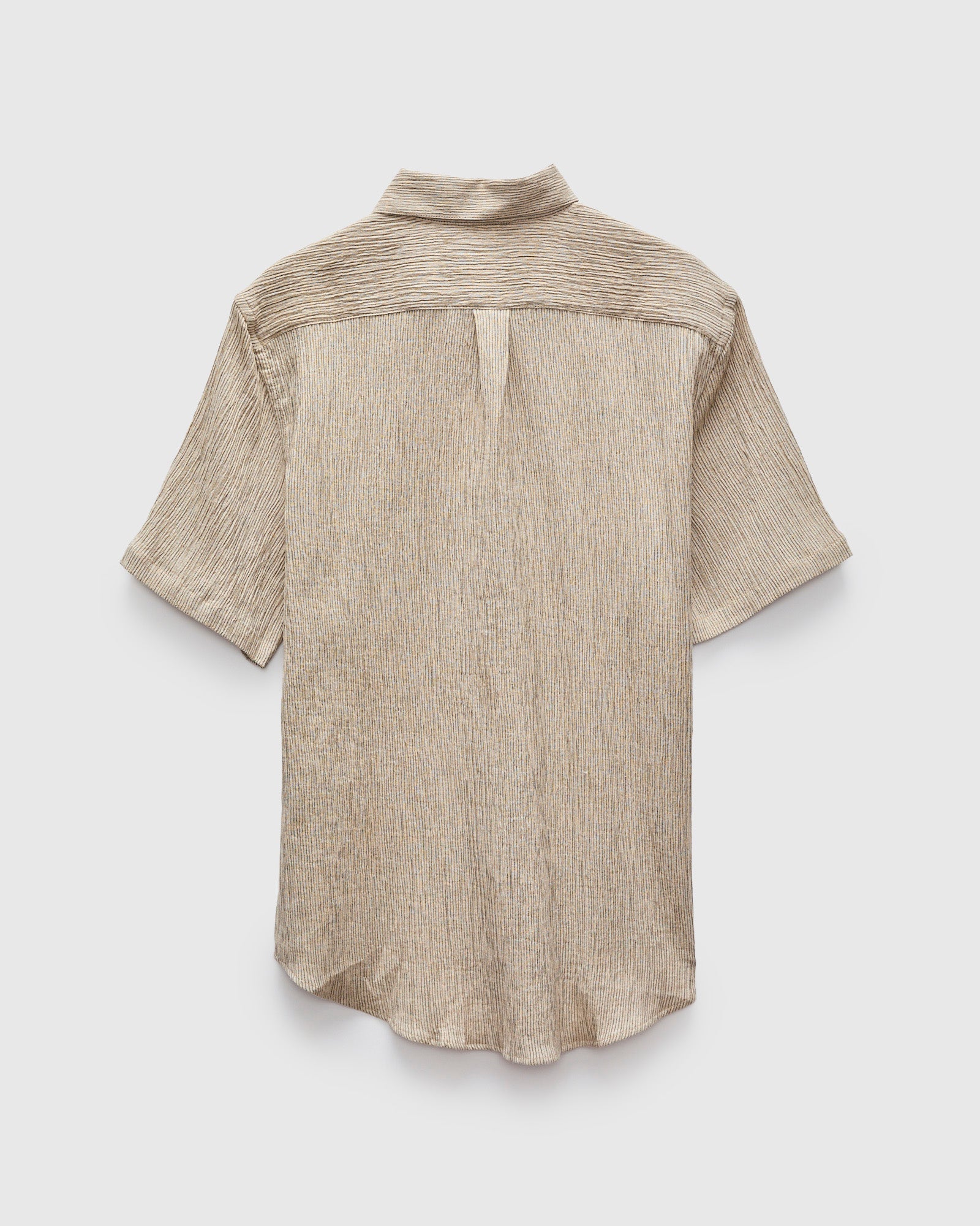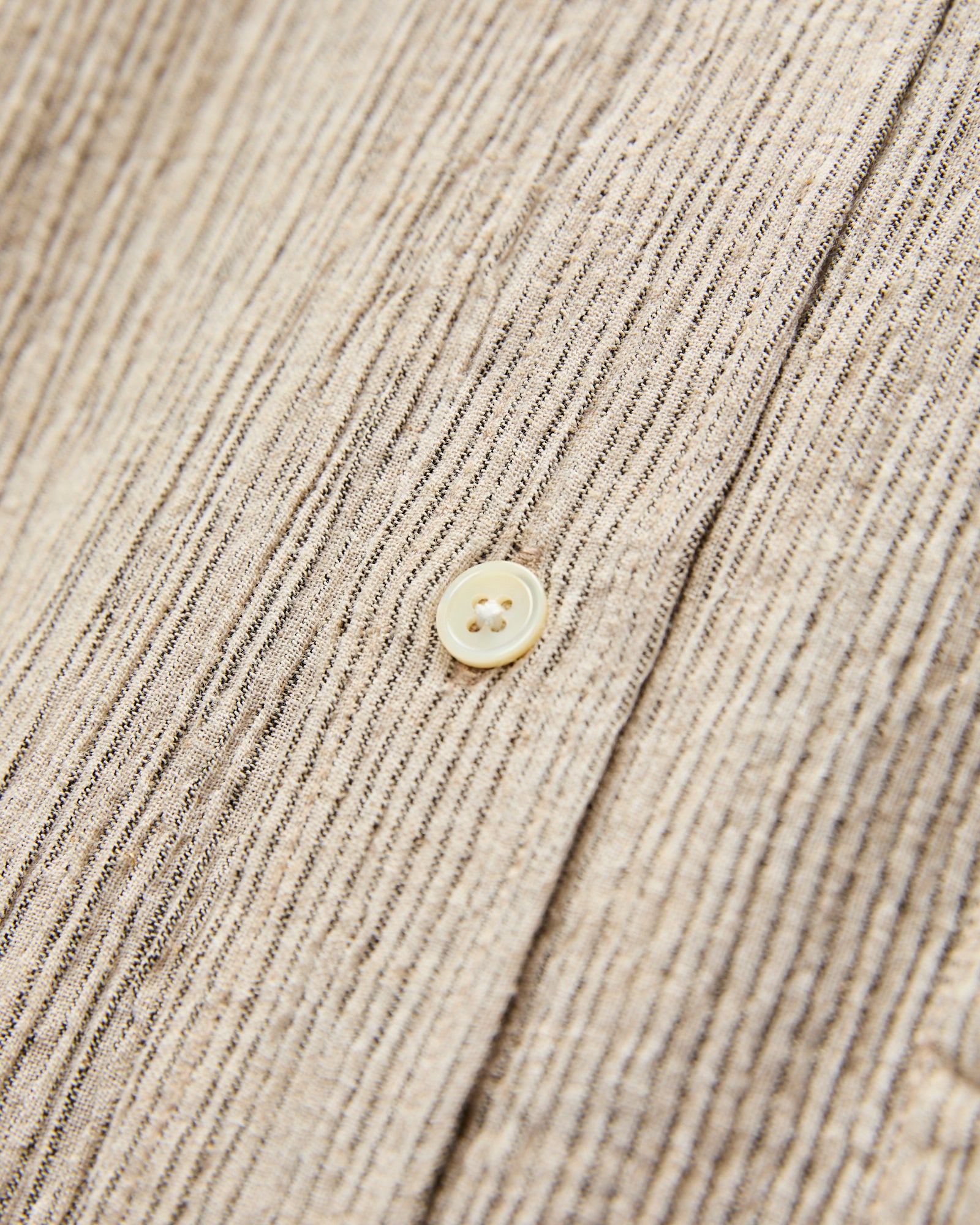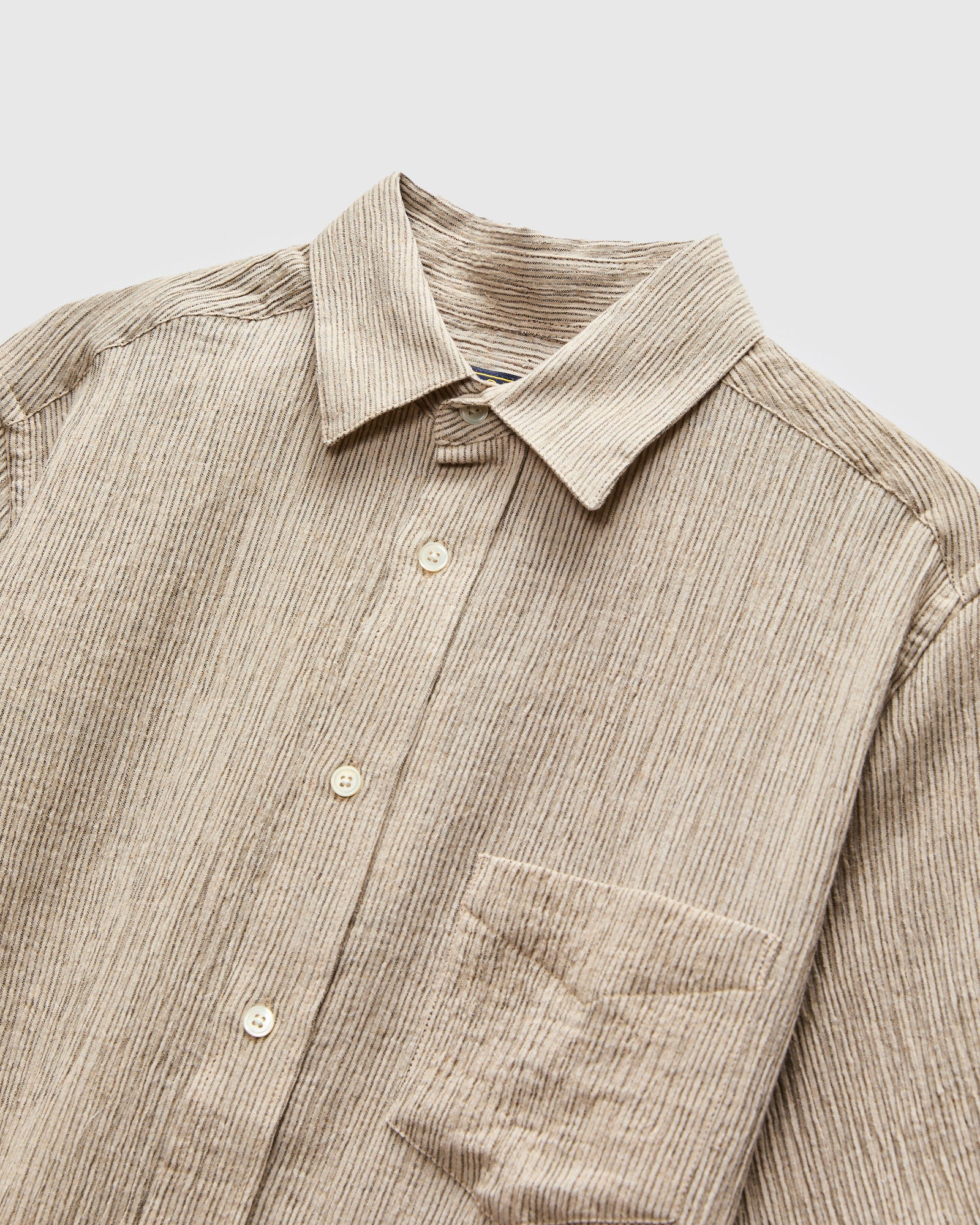 • The Aaron shirt from Portuguese Flannel is an open-collar vacation shirt made using fabric from the brand's storied archive. Drawing from generations of textile expertise, the fabric is woven with a lightweight-textured weave. The shirt comes fitted with a single chest pocket and straight hem finish.