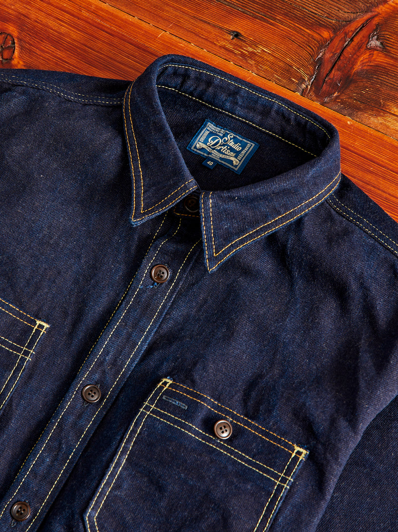 Aishibuzome Selvedge Denim Work Shirt in Indigo