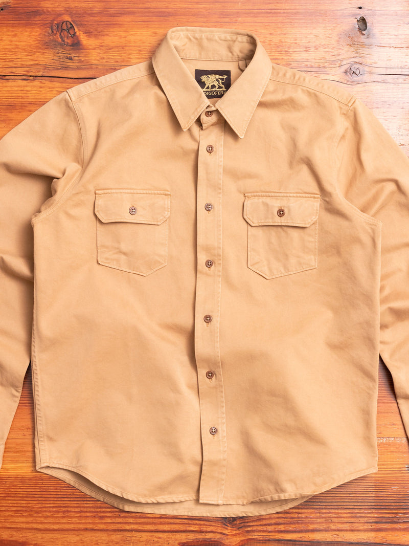 • The Alamo work shirt from Indigofera is sewn using a heavyweight Japanese twill fabric with a soft worn-in feel. Inspired by vintage military uniforms, the shirt's washed fabric is adorned with two oversized utility pockets for classic look. Finished with corozo buttons and clean single stitch construction.
