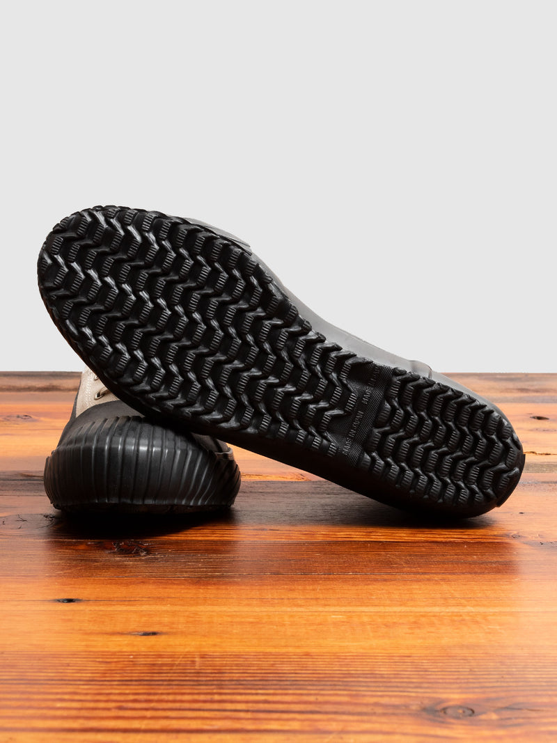 • The All-Weather Sneaker from Moonstar is a utilitarian shoe designed to withstand rain, snow, and mud. Crafted in Japan, the sneakers are built using a heavyweight canvas upper and come equipped with an encapsulating vulcanized rubber sole. The shoes are melded together using the ancient "Ka-ryu" technique, which fires the outsoles in a kiln at 240°F to create a stronger and more durable shoe after extensive wear.