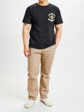 • The "D'Artisan in Blue" T-Shirt from Studio D'artisan features fun denim oriented graphics screen-printed in Gifu, Japan. Crafted using heavy USA-grown cotton, SDA shirts sport a sleek texture and substantial hand feel. This installment features a playful take on a classic American rock album.