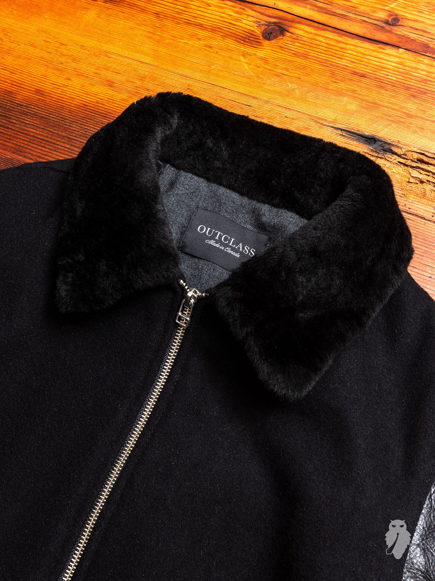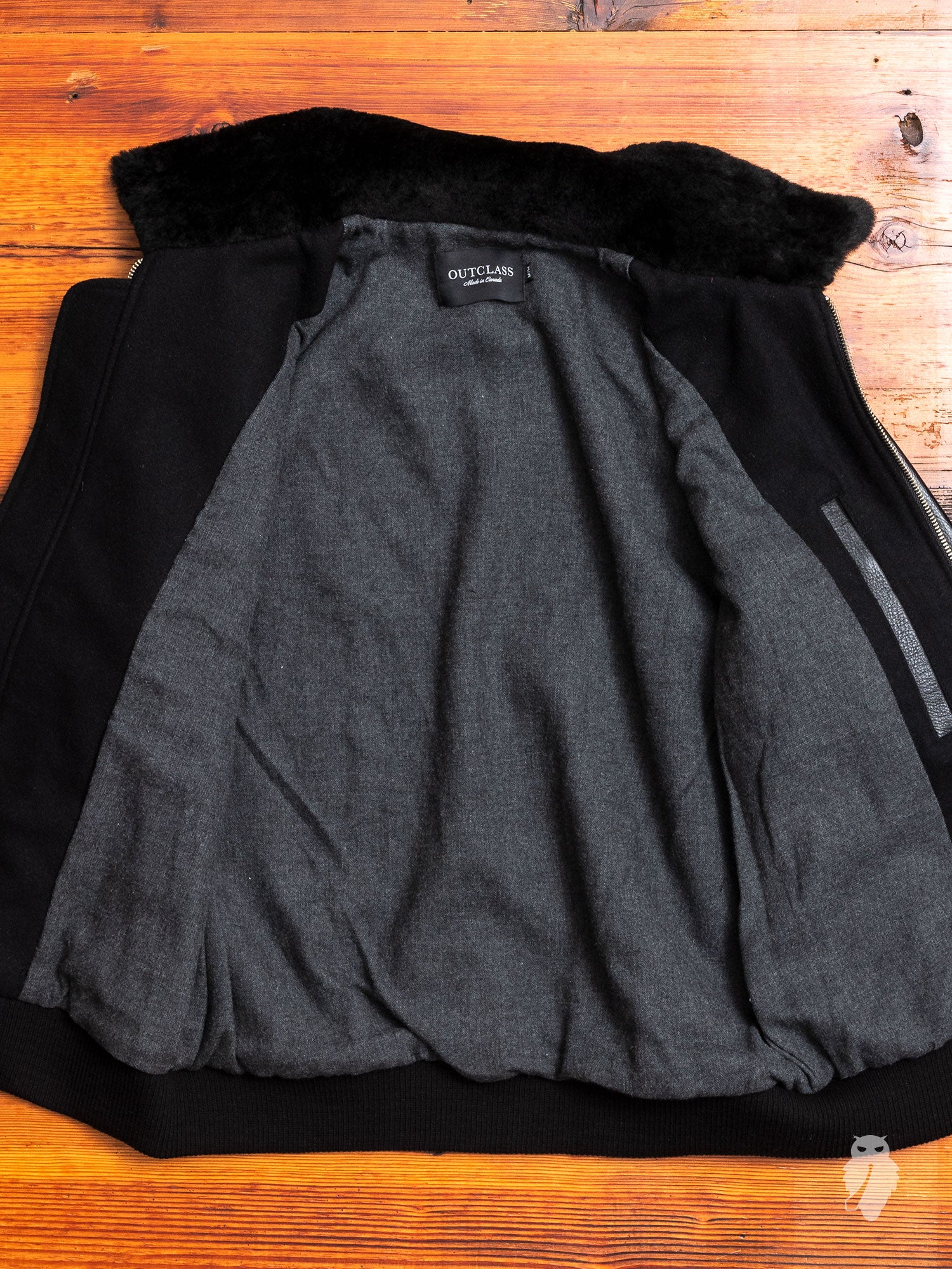 • Inspired by the classic flight jacket, the Aviator Jacket from Outclass is the brand's reinterpretation of the popular military style. Built upon the brand's signature bomber design, the jacket is hallmarked by its shearling collar, and features a black flannel body liner for extra warmth in cold weather. Fitted with signature Outclass details like leather reinforced welt pockets, and two-way YKK zippers.