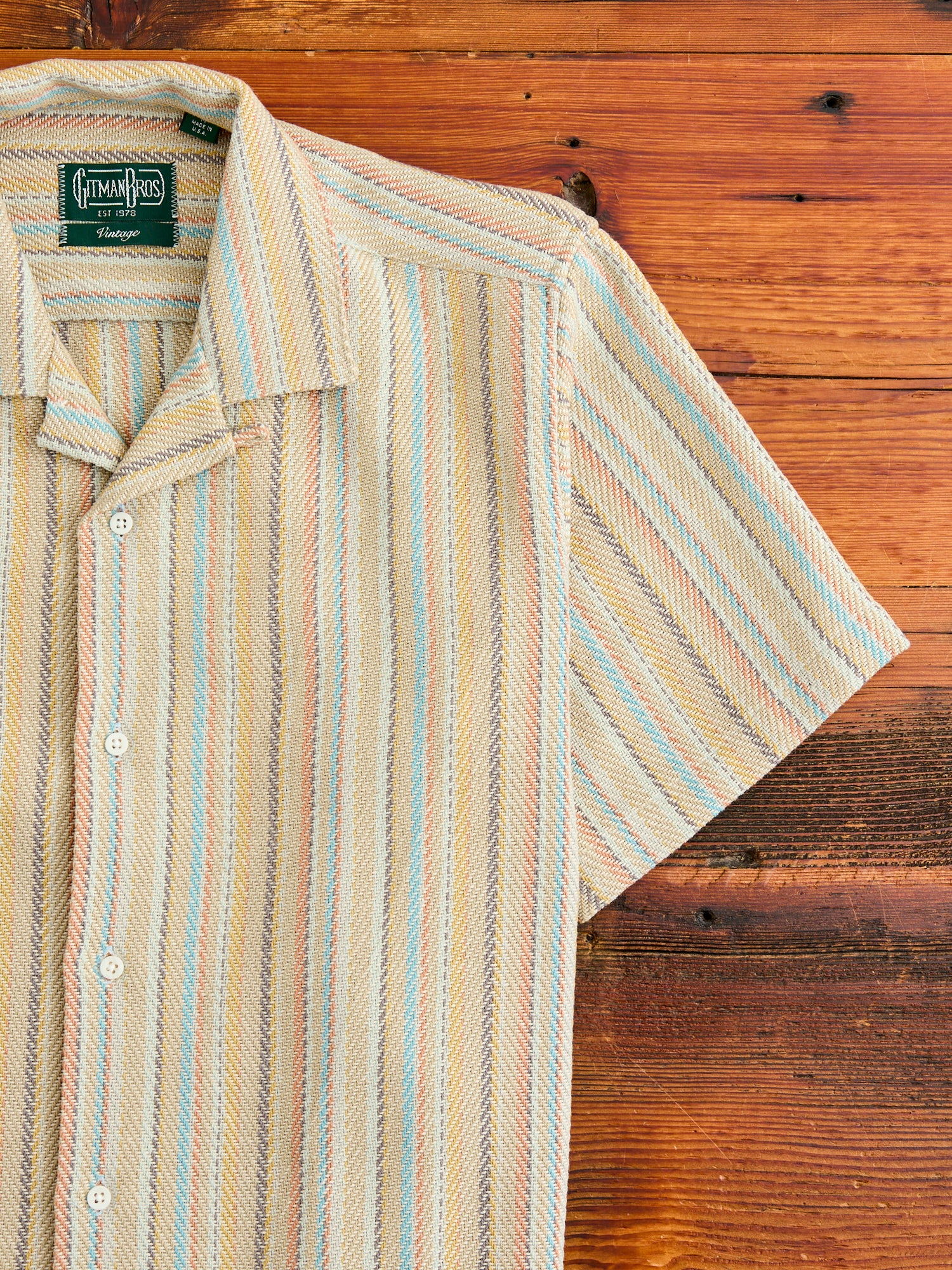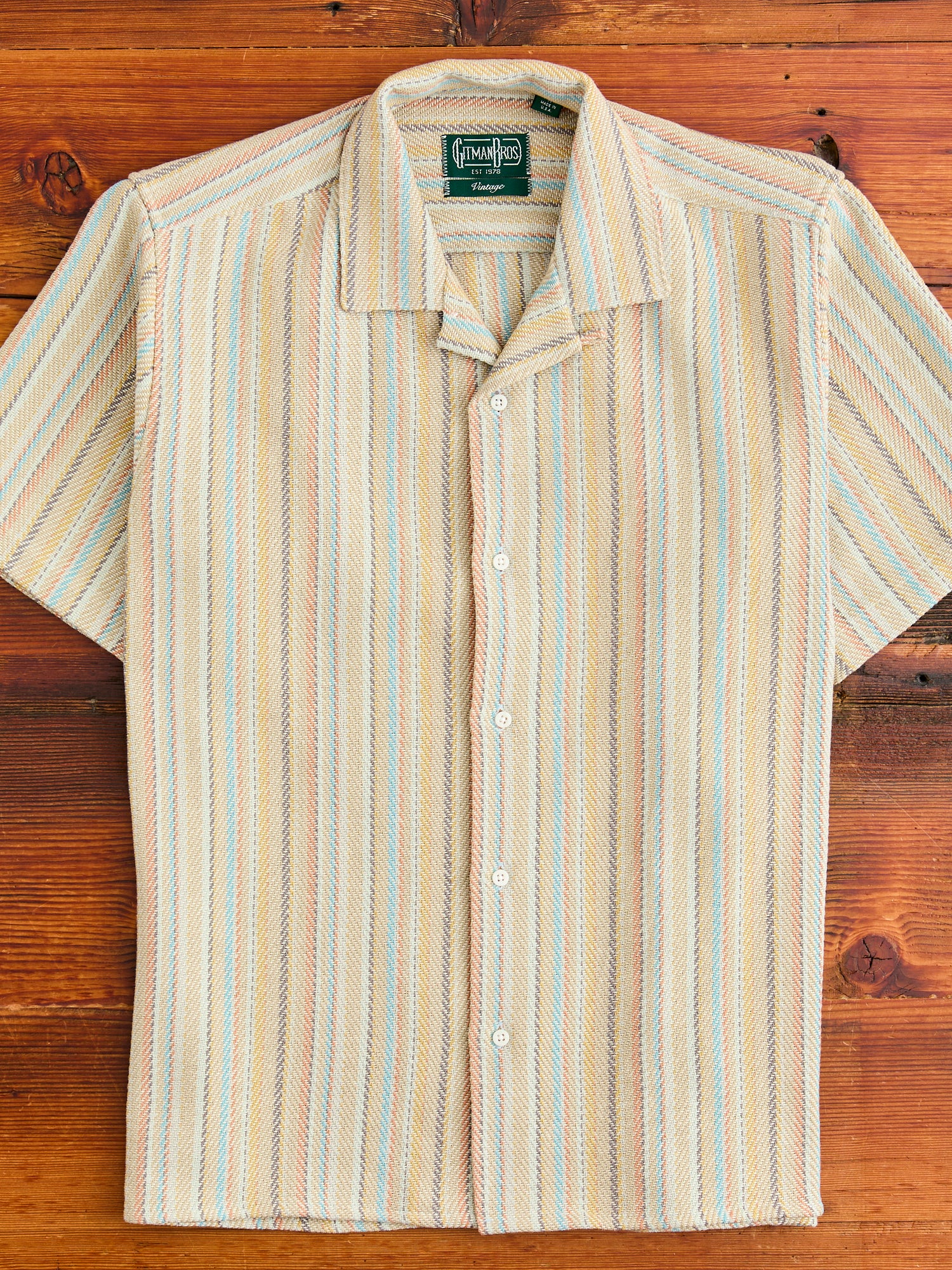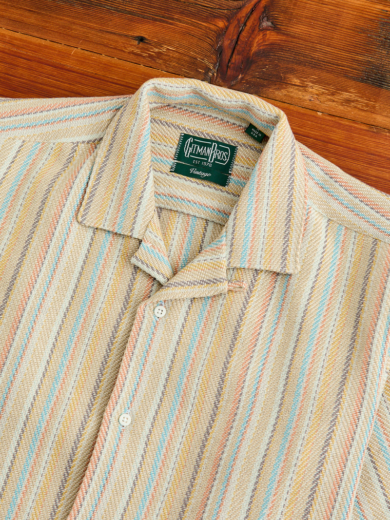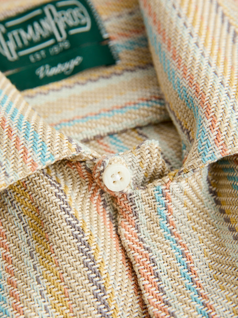 • This camp shirt from Gitman Vintage is made from a unique fabric at their Lafayette, Tennessee factory. This shirt features a cotton jacquard fabric with a playful pastel pattern. Finished with minimal detailing and sewn in the camp shirt style - a relaxed fit, straight hem cut designed for more breathability in warm weather.