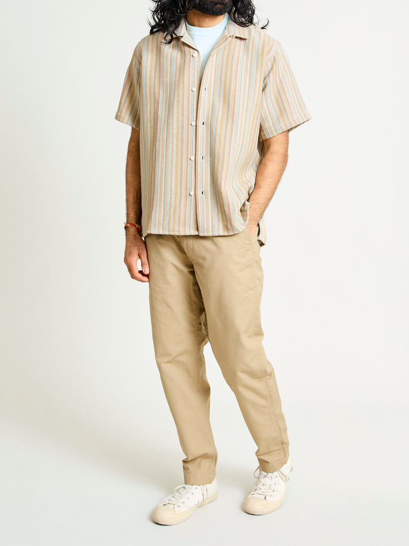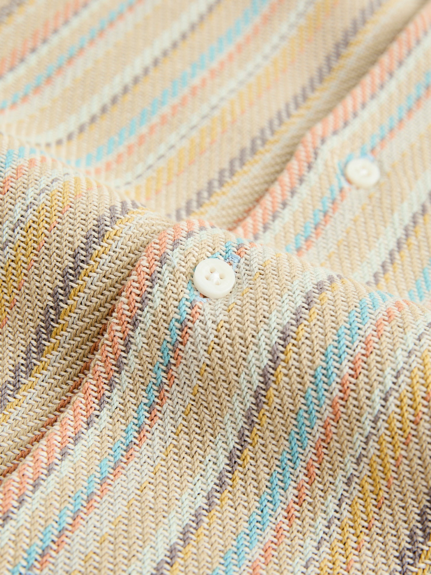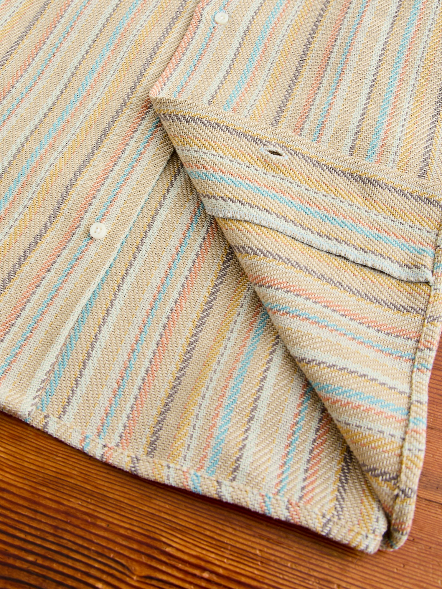 • This camp shirt from Gitman Vintage is made from a unique fabric at their Lafayette, Tennessee factory. This shirt features a cotton jacquard fabric with a playful pastel pattern. Finished with minimal detailing and sewn in the camp shirt style - a relaxed fit, straight hem cut designed for more breathability in warm weather.