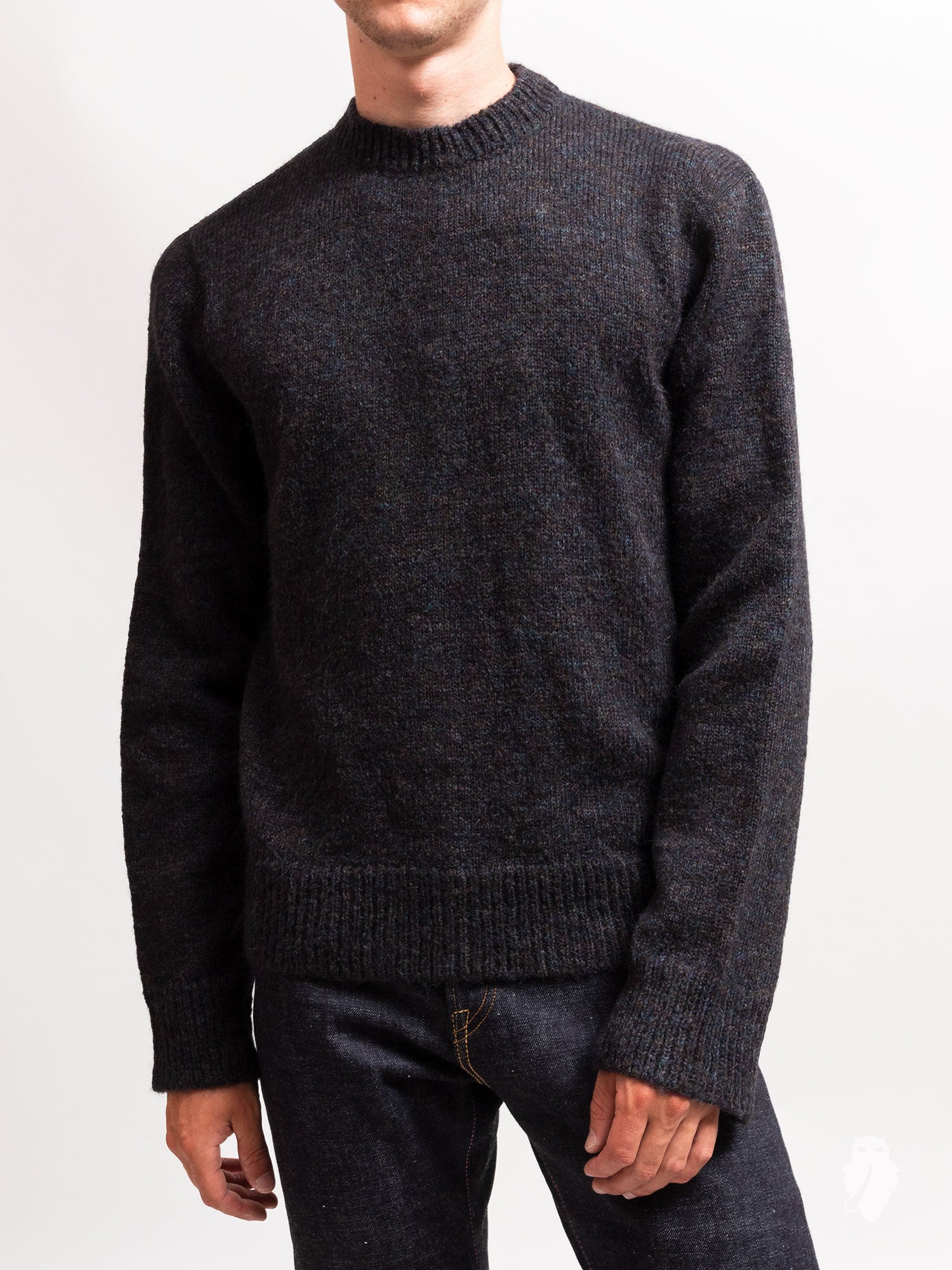Base Roundneck Sweater in Black Tweed