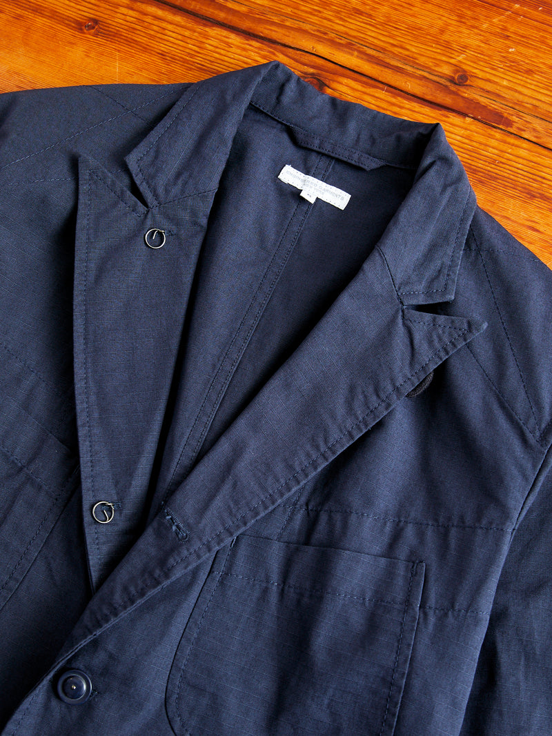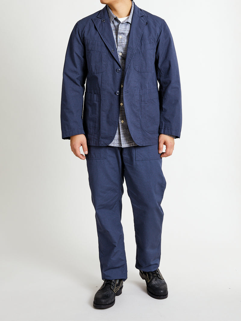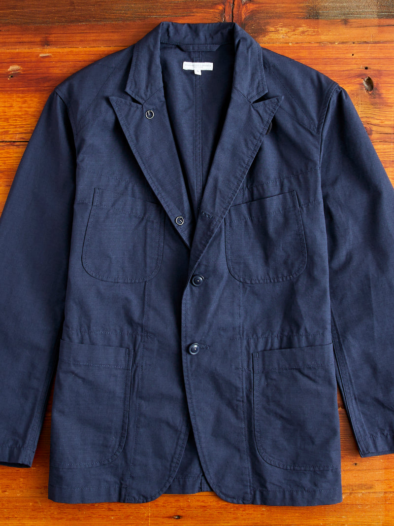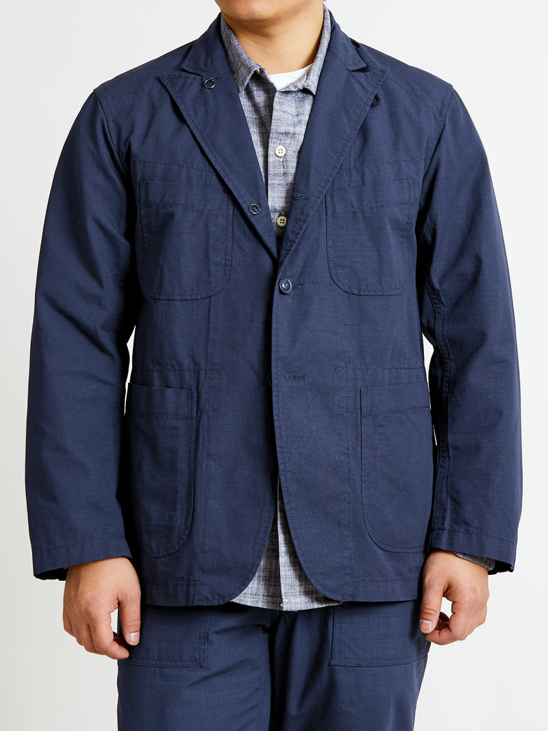 • The Bedford Jacket is a signature design from Engineered Garments. Crafted using a military-inspired cotton ripstop fabric, the fabric features a medium-weight heft and comes crafted in a hybrid blazer-chore coat design. The jacket comes cut in a tailored silhouette with two large patch pockets at the waist, two pockets at the chest, peak lapels, and a classic three-button placket.