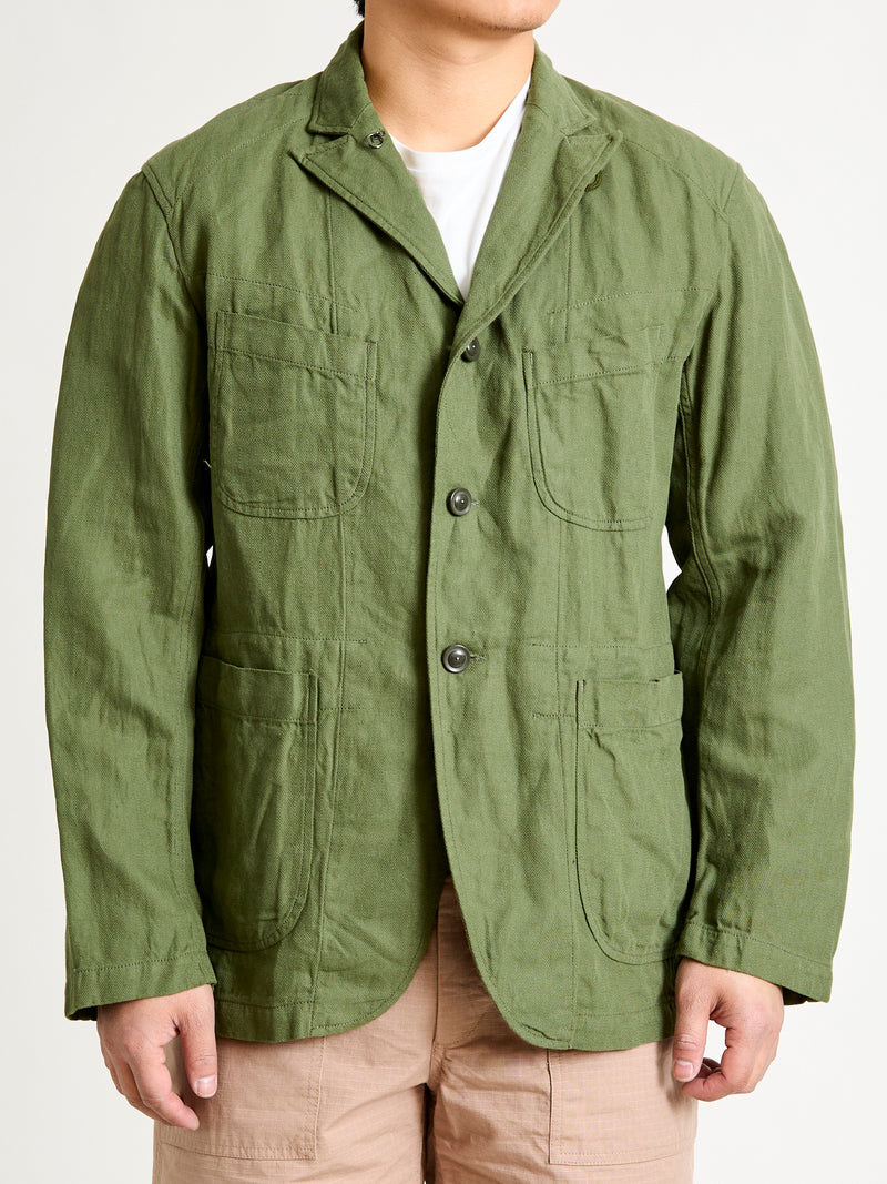 • The Bedford Jacket is a signature design from Engineered Garments. Crafted using a cotton hemp satin fabric, the fabric features a medium-weight heft and comes crafted in a hybrid blazer-chore coat design. The jacket comes cut in a tailored silhouette with two large patch pockets at the waist, two pockets at the chest, peak lapels, and a classic three-button placket.