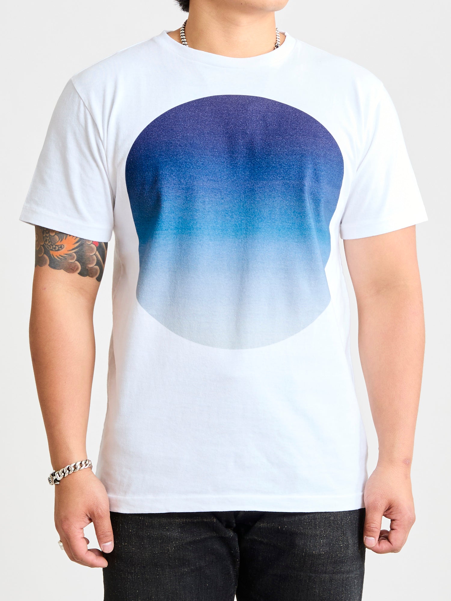 • This t-shirt from Blue Blue Japan is made from a slub cotton fabric with a large circle design at the chest as an homage to the national flag of Japan. The circle receives its color from a hand-dying process that allows for better manipulation of the dye and an outstanding variation in color across the design.
