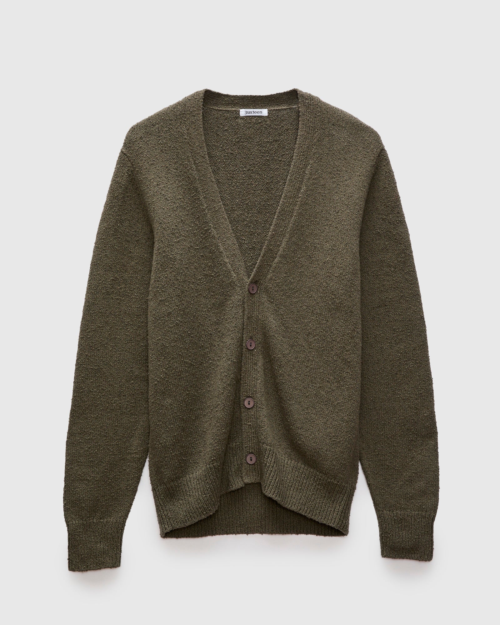 Classic Cardigan in Olive Boucle