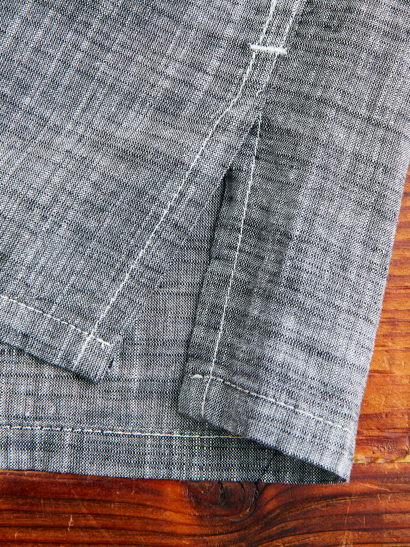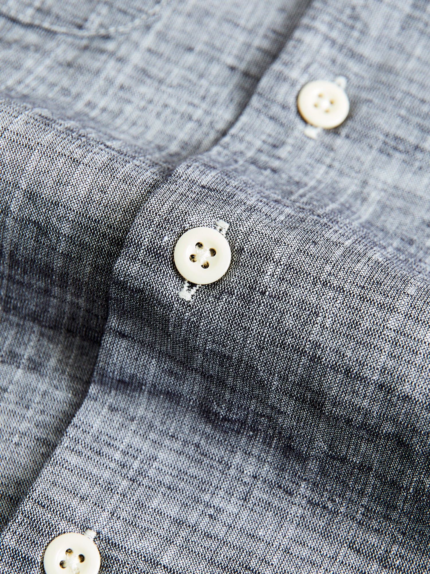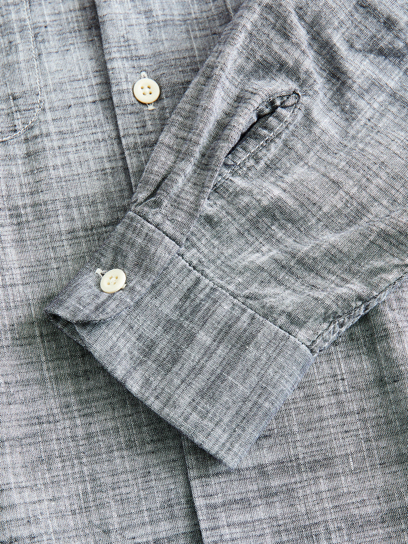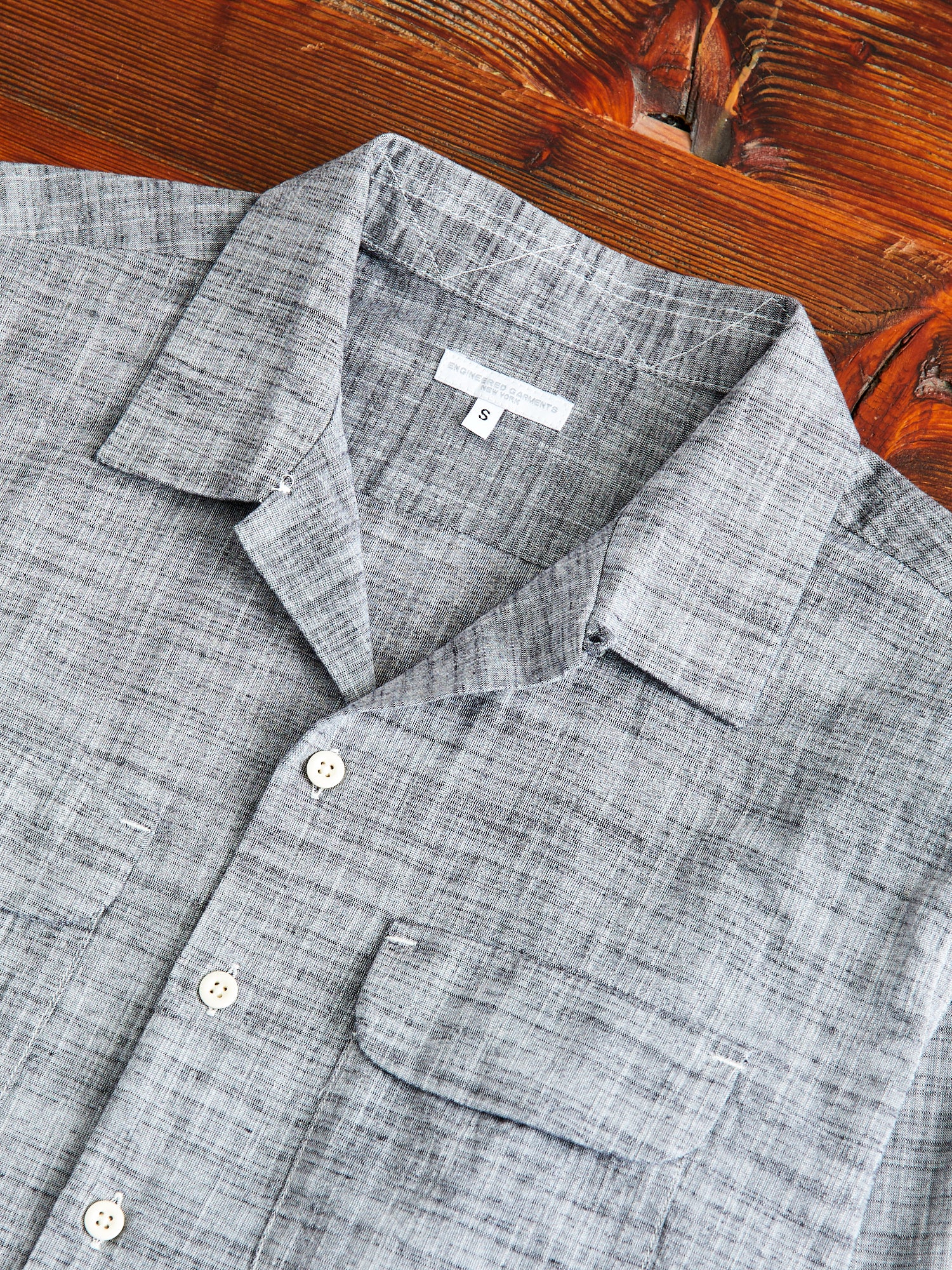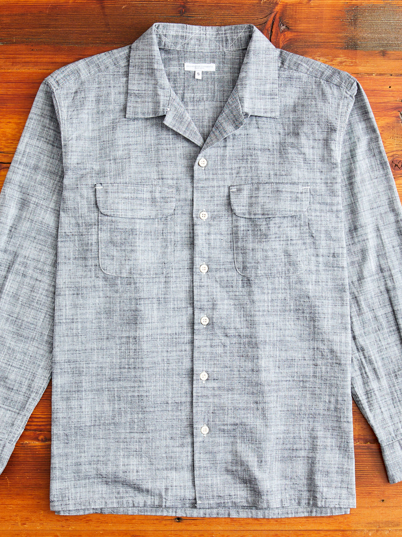 • Engineered Garments' signature button-down, the Classic Shirt is designed with a contemporary twist— boasting a relaxed fit, spread collar, and straight hem. Tailored from a lightweight cotton slub fabric, this shirt features a loose weave and slub texture. Complete with dual chest pockets, barrel cuffs, and a button-down placket adorned with mother of pearl buttons.