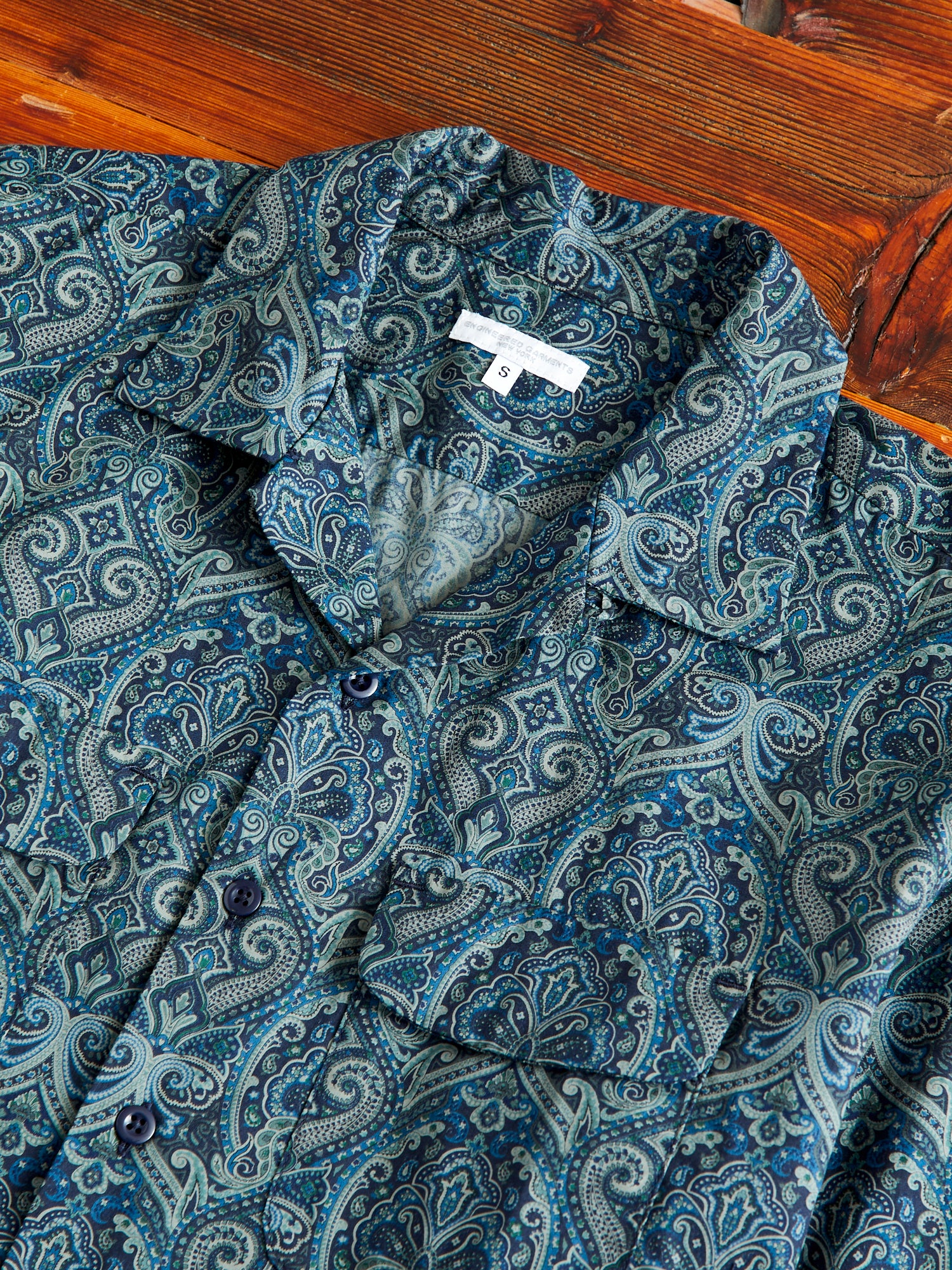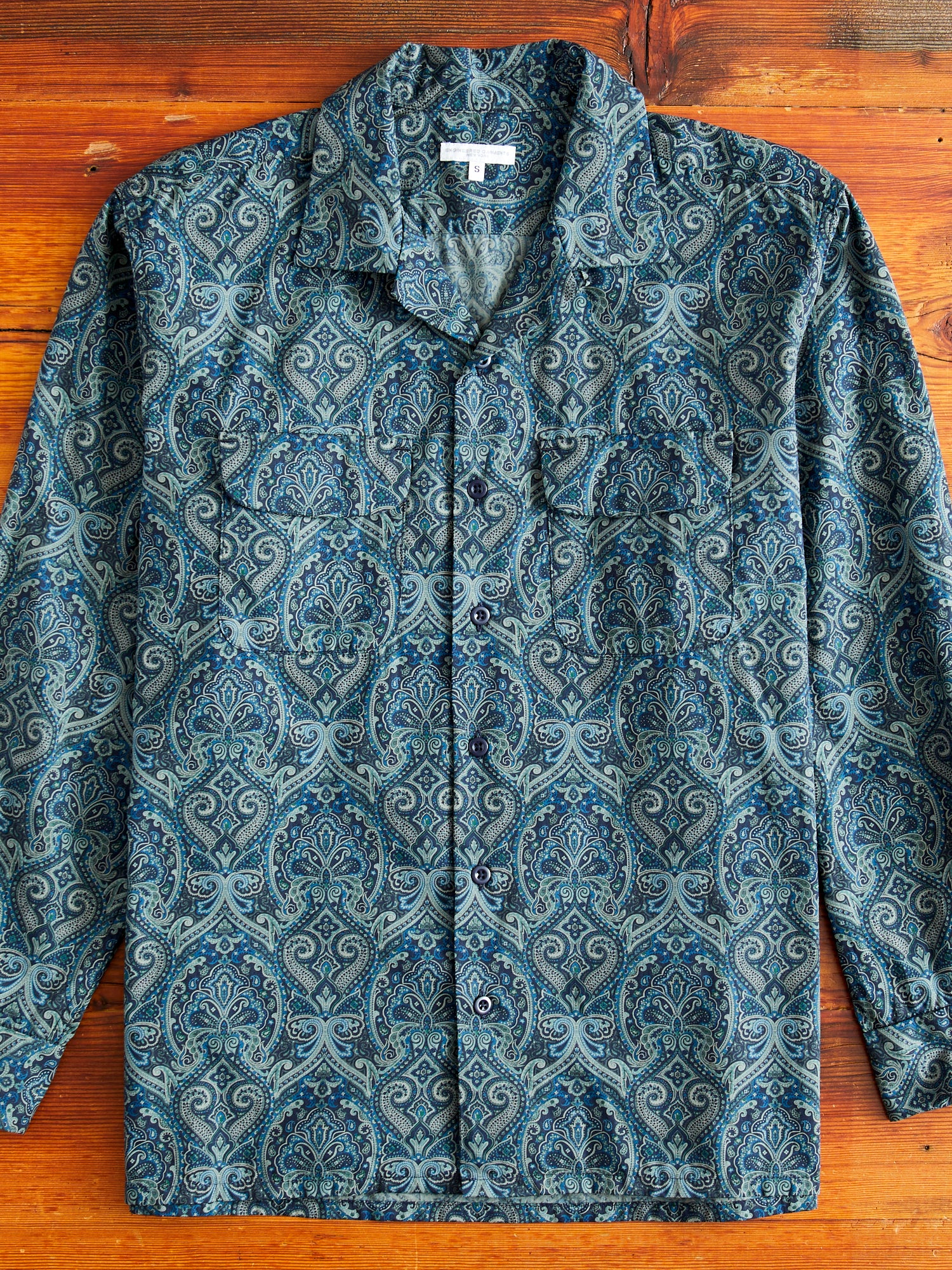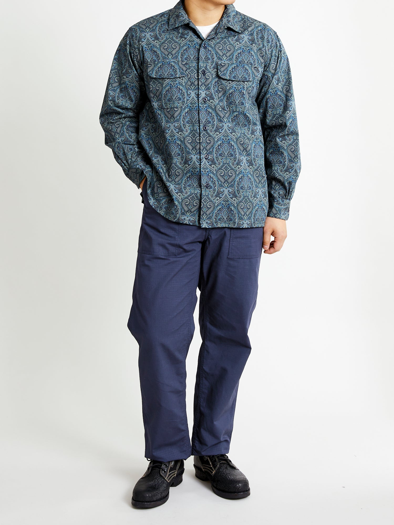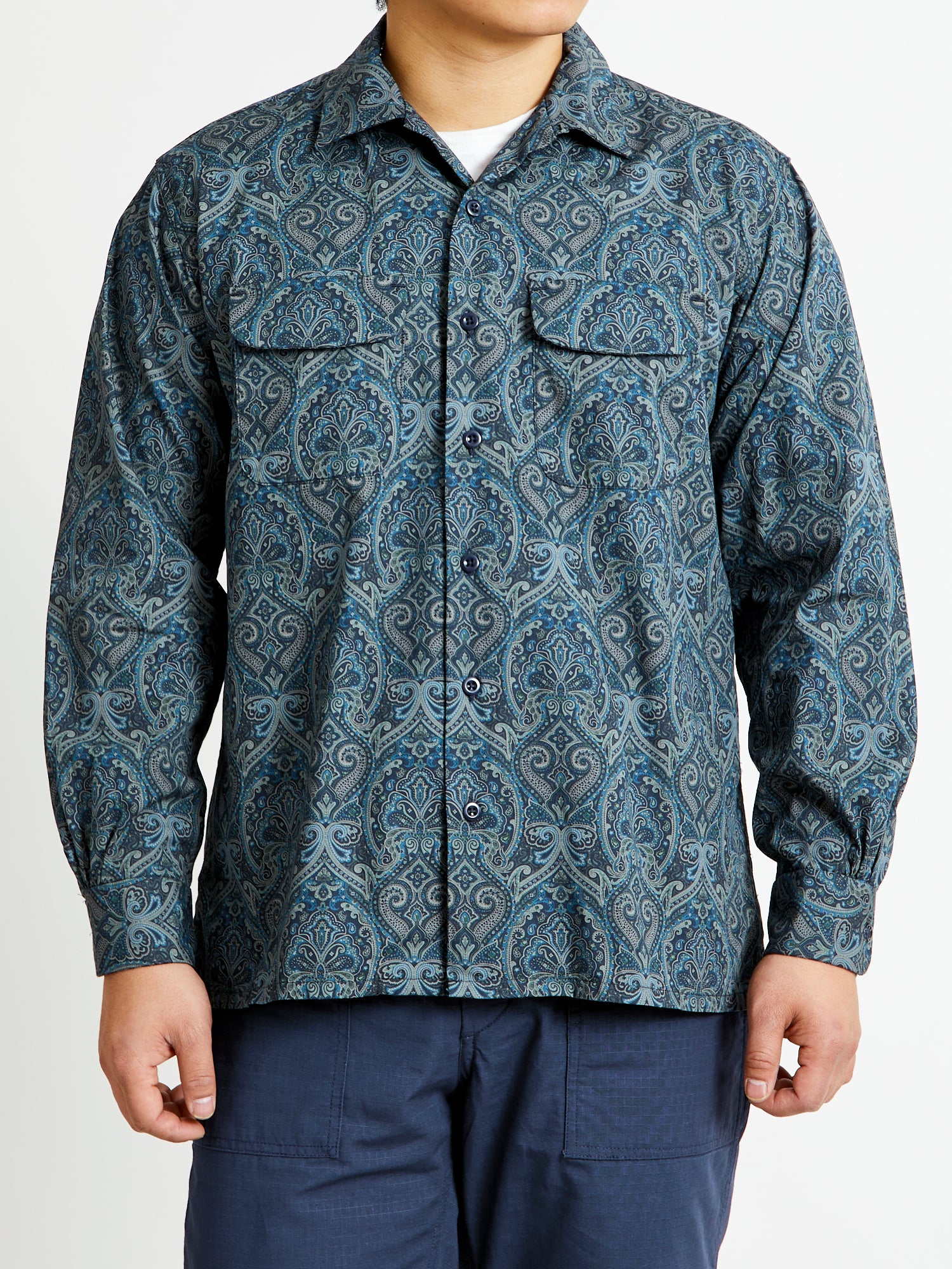 • Engineered Garments' signature button-down, the Classic Shirt is designed with a contemporary twist— boasting a relaxed fit, spread collar, and straight hem. Tailored from a lightweight paisley-printed fabric, this shirt features a high-density weave and a smooth texture. Complete with dual chest pockets, barrel cuffs, and a button-down placket adorned with mother of pearl buttons.
