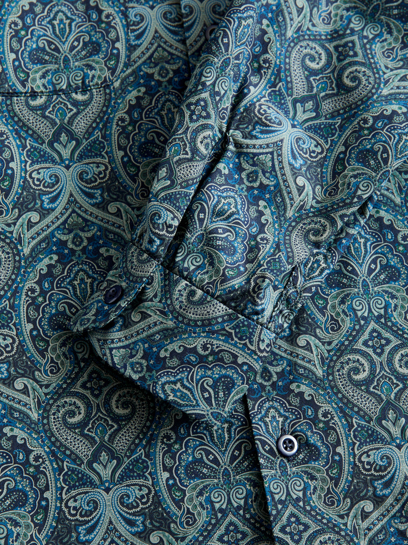 Classic Shirt in Navy Cotton Paisley Print