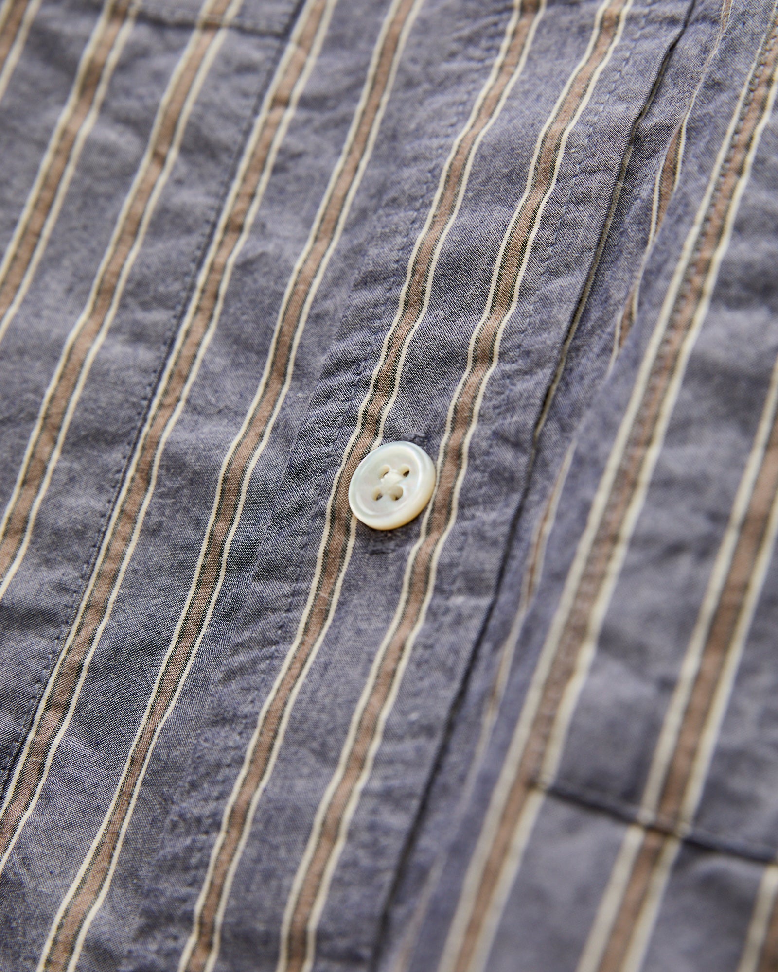 • 3sixteen's Commuter Shirt is a casual long-sleeve button-up, drawing inspiration from classic dress shirts and vintage work shirts. The Commuter is cut with extra room in the shoulders and body for an easy silhouette and relaxed drape. This iteration features a yarn-dyed stripe fabric woven in Japan with a smooth, crisp hand feel. Finished with two large chest pockets, raised placket, and shell buttons. ⁠⁠