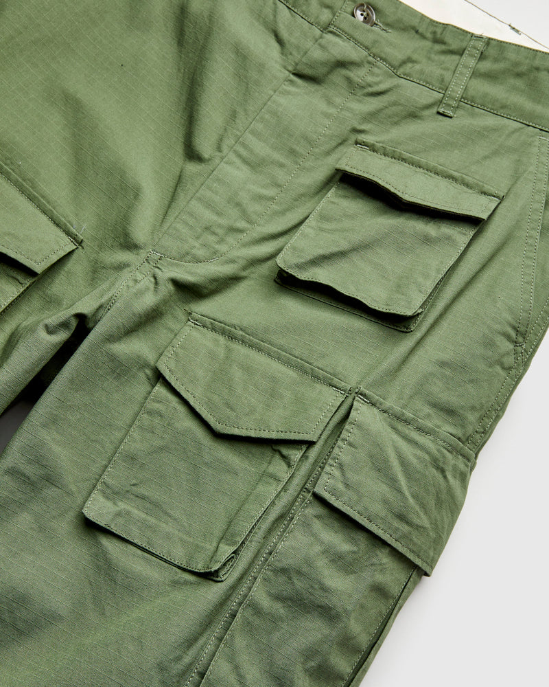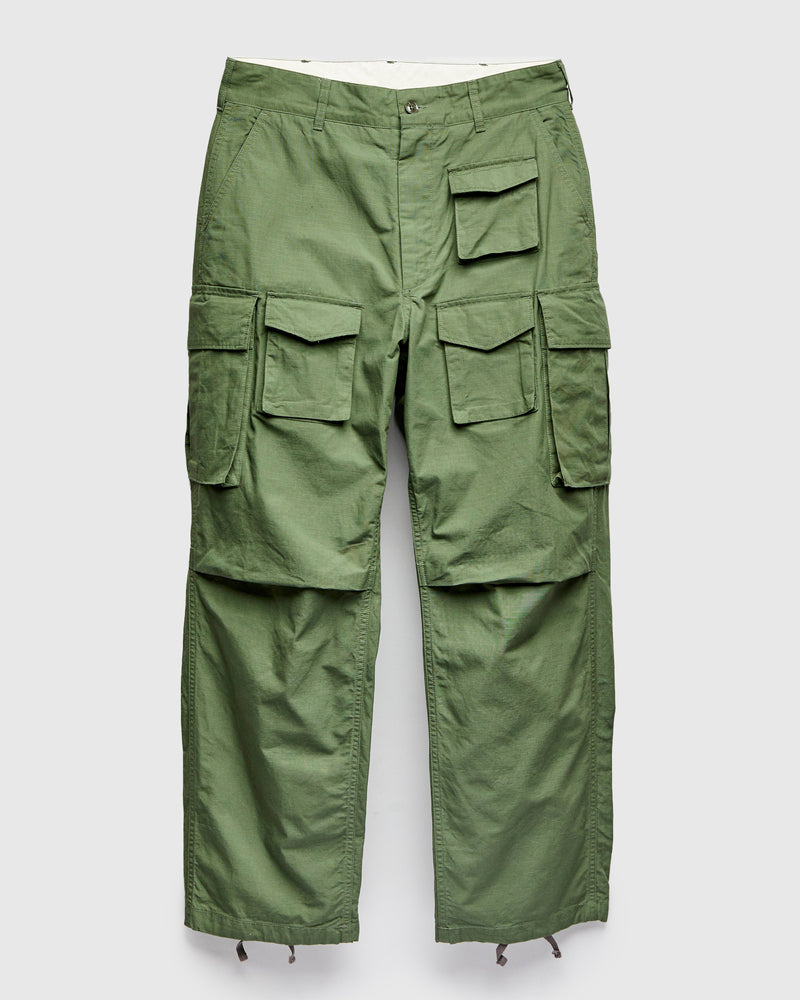 • A contemporary take on military flight trousers, the FA Cargos from Engineered Garments outfits the timeless fatigue with an array of pockets in a relaxed fit silhouette. Featuring a cotton ripstop fabric, the pants sport a mediumweight feel and high durability. The pants come cut in a tailored straight-leg fit, with a roomy top-block and slight taper down the leg. Detailed with a tucked knee deigned for better draping, an array of patch pockets, and cinch openings at the hem.
