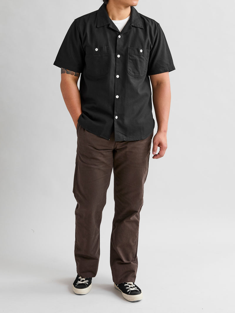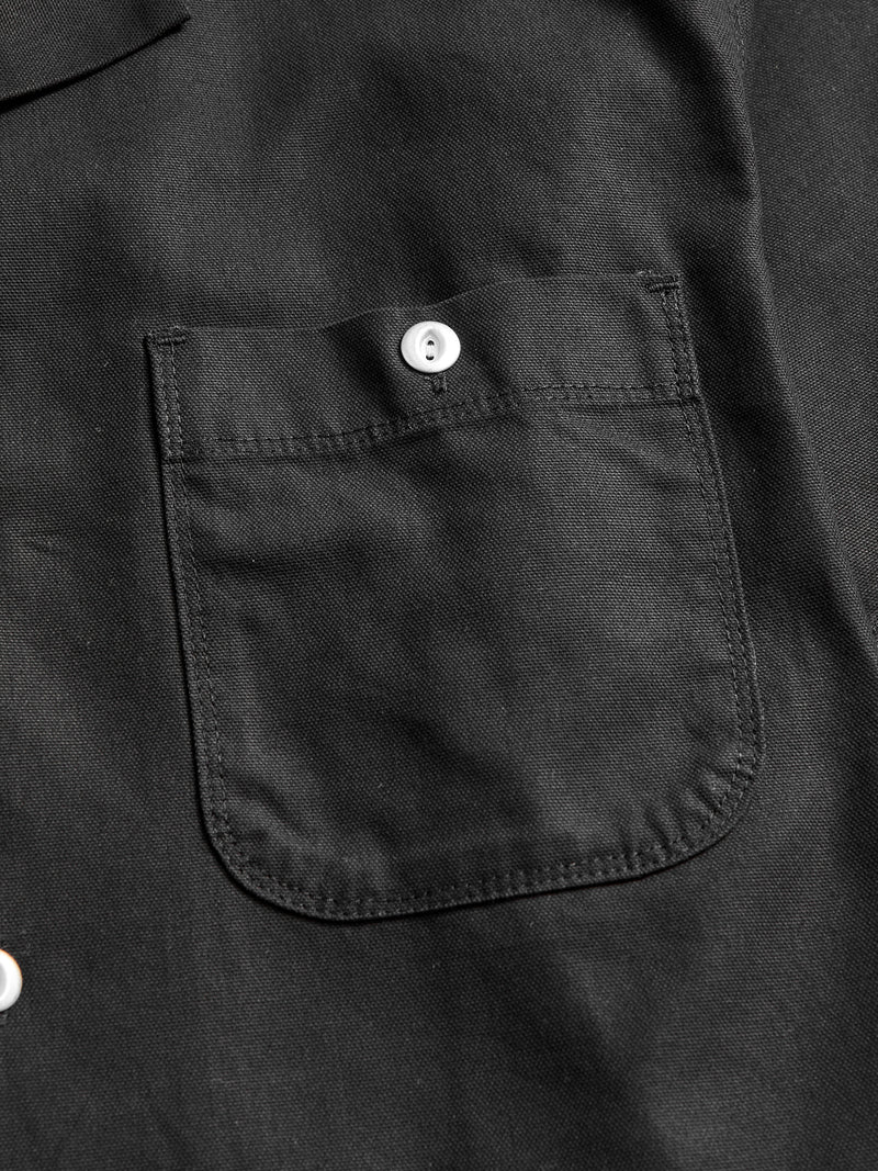 • The Dayton Work Shirt from Freenote is sewn using an a 6oz cotton canvas fabric from Japan inspired by 1950's garage shirting. The shirt is fitted with an open camp collar and two oversized utility pockets at the chest large enough to store a variety of tools or gadgets. Finished with double needle stitching and custom metal repro buttons from Japan.