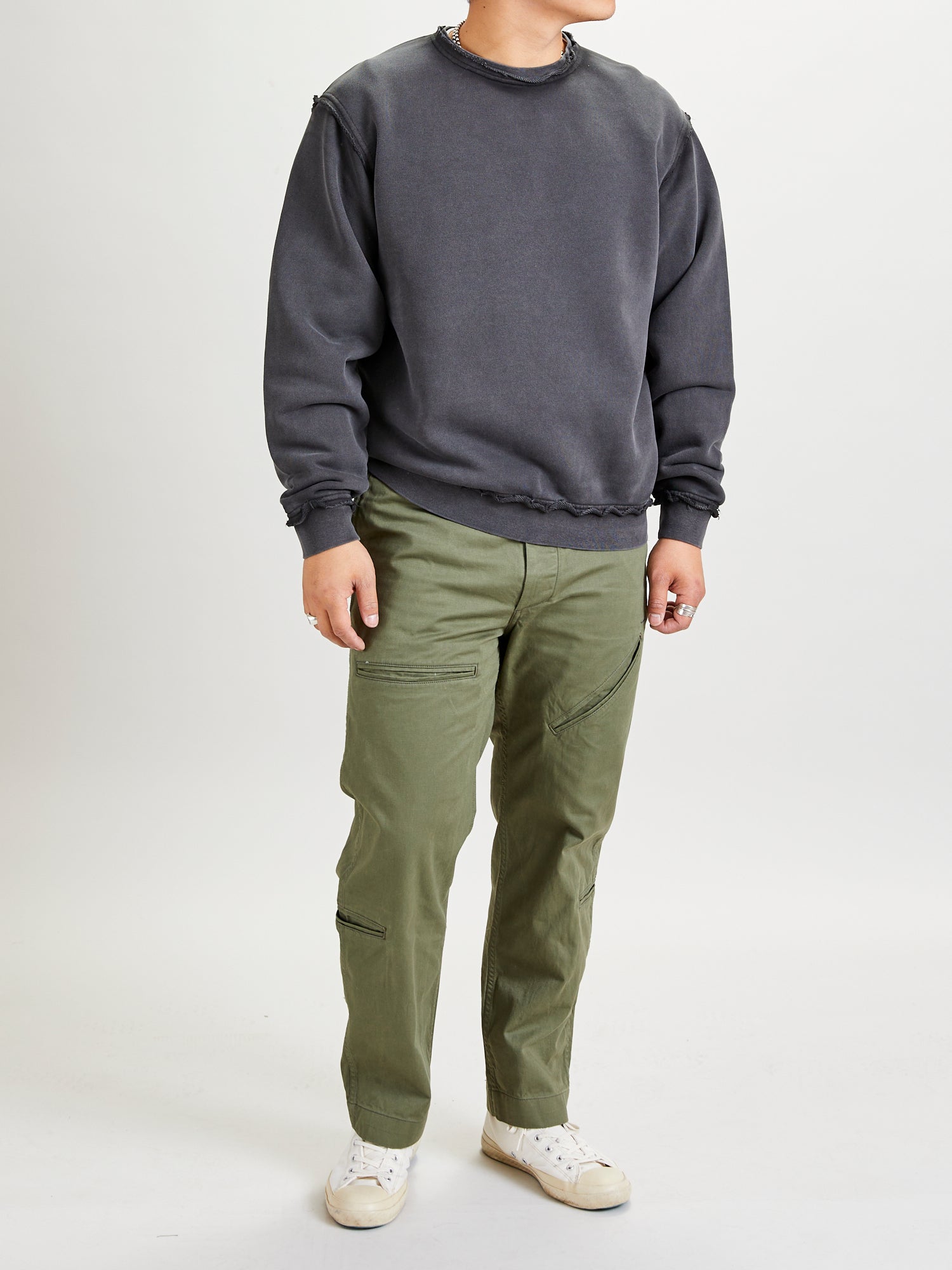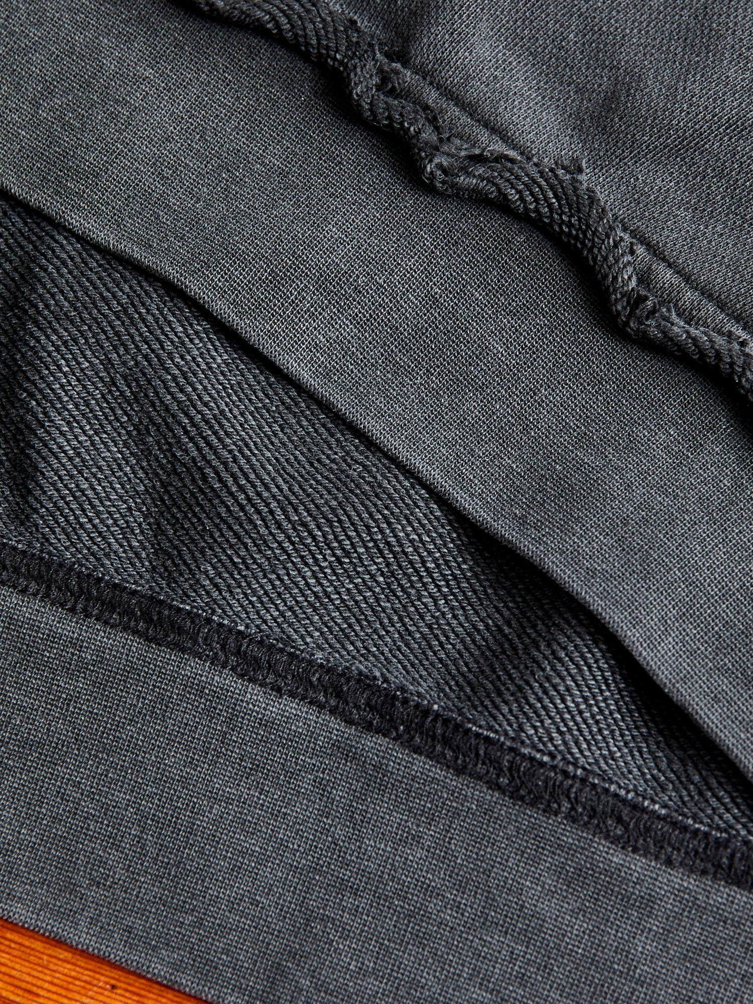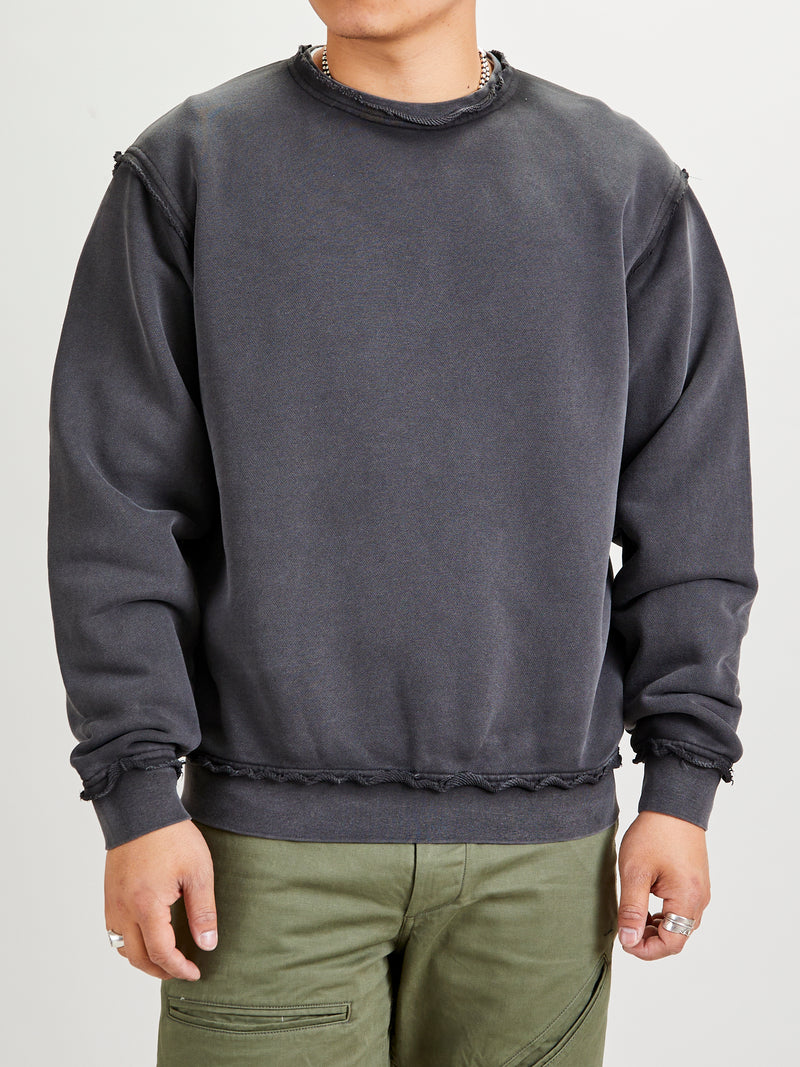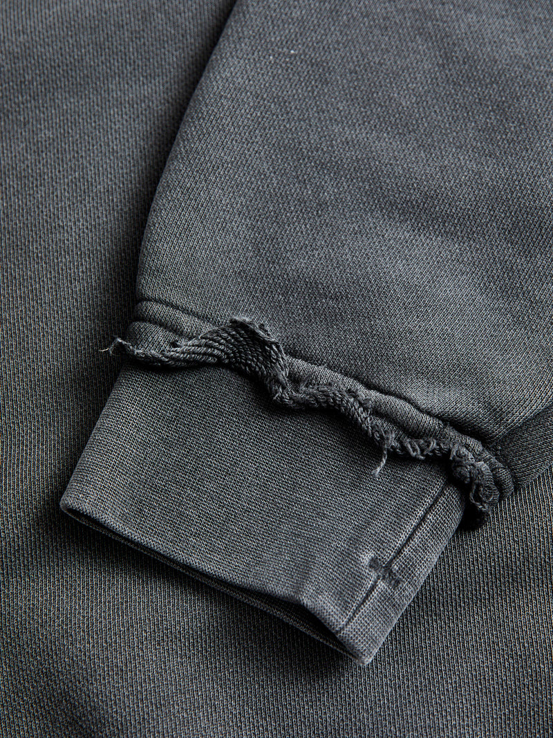 • Eastlogue's crewneck sweatshirts are cut and sewn in South Korea using the brand's heavyweight french terry fabric. This iteration features a heavy wash and distressing process giving the fabric an intentionally damaged appearance. The sweatshirt is detailed with a V-gusset reinforced neckline, ribbed hemming, and gusseted arm openings. Cut in a drop-shoulder relaxed fit, this crewneck is intended to fit slightly oversized.