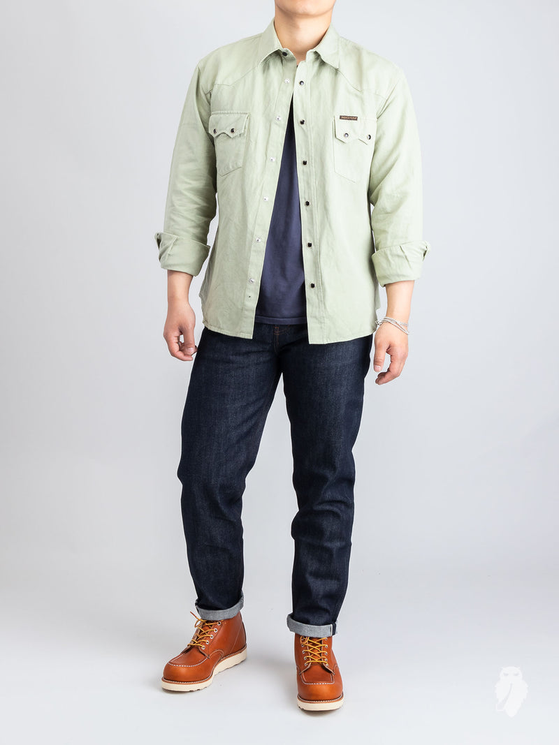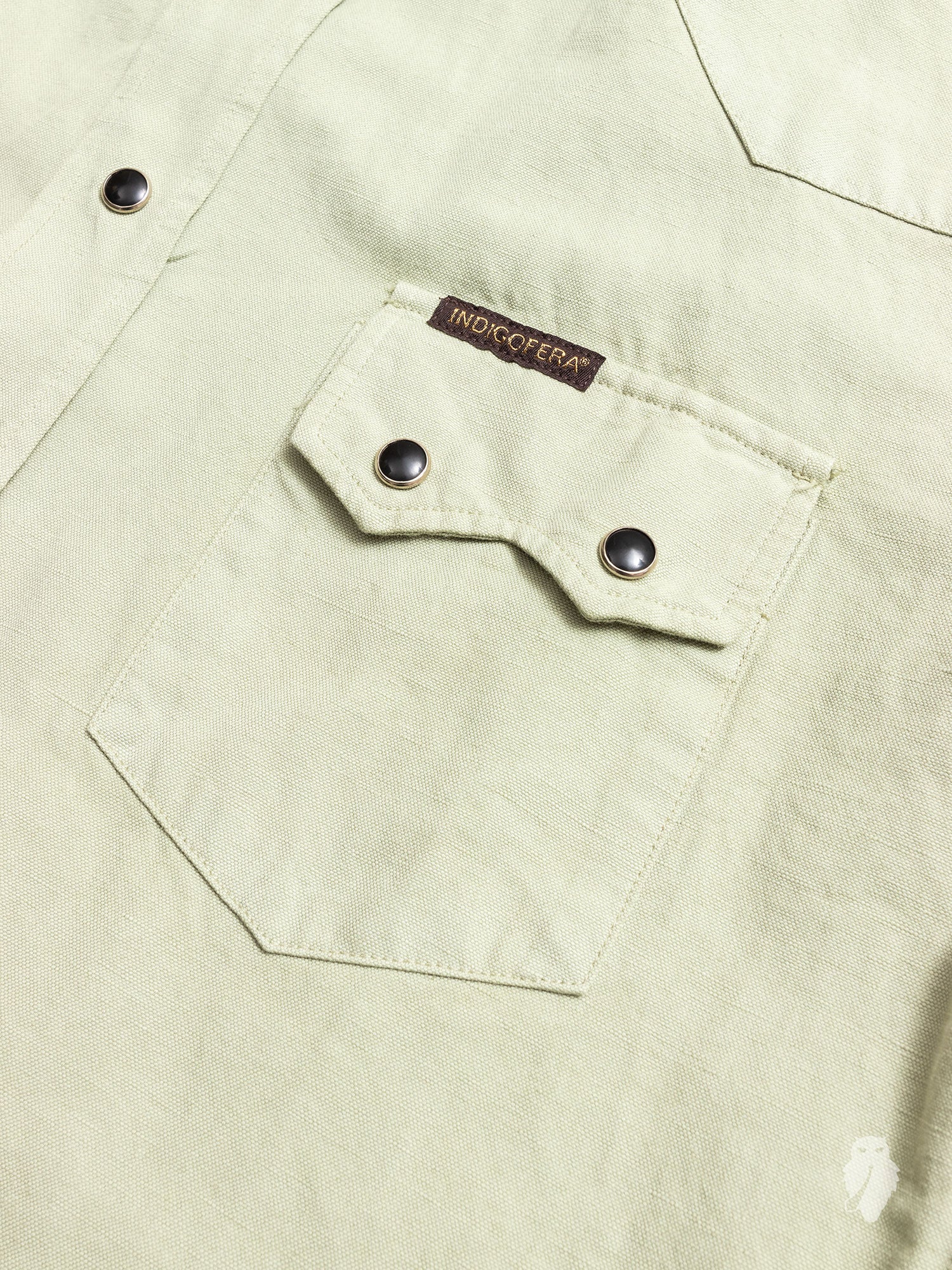 • The Dollard shirt from Indigofera is the brand's take on the classic Western-style shirt. This installment is crafted using a slub cotton canvas that has been pigment-dyed to receive a beautiful vintage color. The shirt comes designed with iconic Western-style details including snap buttons and pointed shoulder yoke, and is a cut in a versatile regular fit.