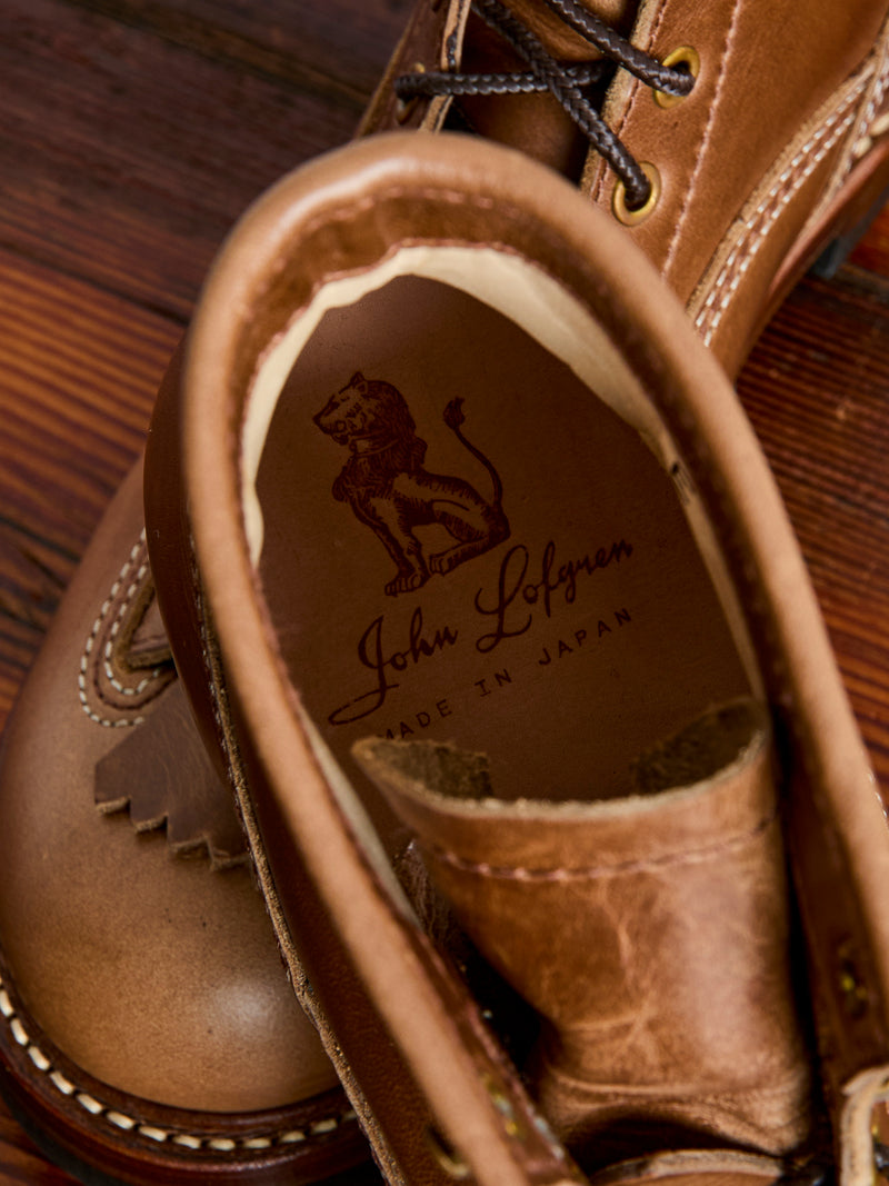 • The John Lofgren Donkey Puncher Boots are a heavily built logger style boot, crafted entirely in Japan. Renowned for being incredibly comfortable right out the box, the Donkey Punchers are built using a Horween Chromexcel upper with Japanese horsehide lining. The boot is fully resoleable, incorporating classic Goodyear welt construction using USA made storm welts, and come anchored with Vibram's 705 half soles and 700 heels.