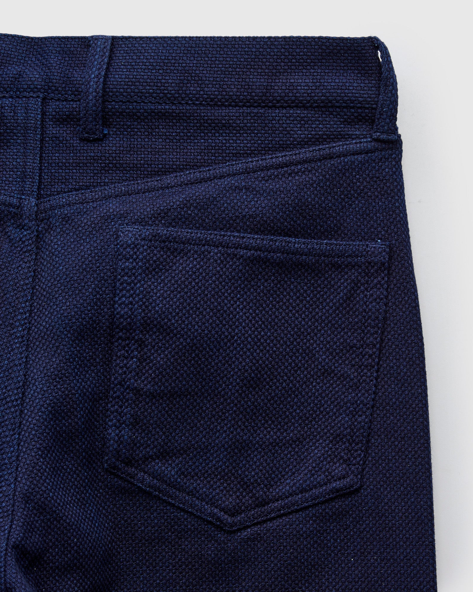 • Hand-dyed and cut in a classic silhouette, the Double Cloth Sashiko Jeans blend western workwear with traditional Japanese textiles. With roots in martial arts, the Double Cloth Sashiko fabric sports a heavyweight weave and textured surface. The pants are hand-dyed a deep indigo color, yielding a beautiful blue shade that will fade with wear and flourish with age. Fitted with traditional workwear-style detailing and a Japanese YKK zipper fly.