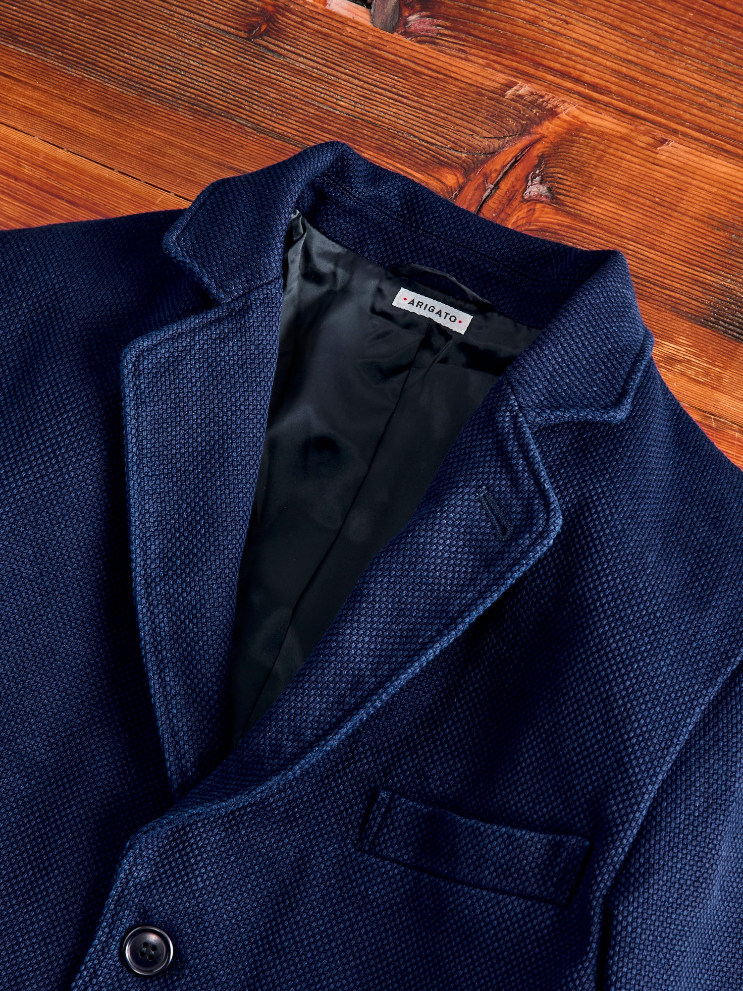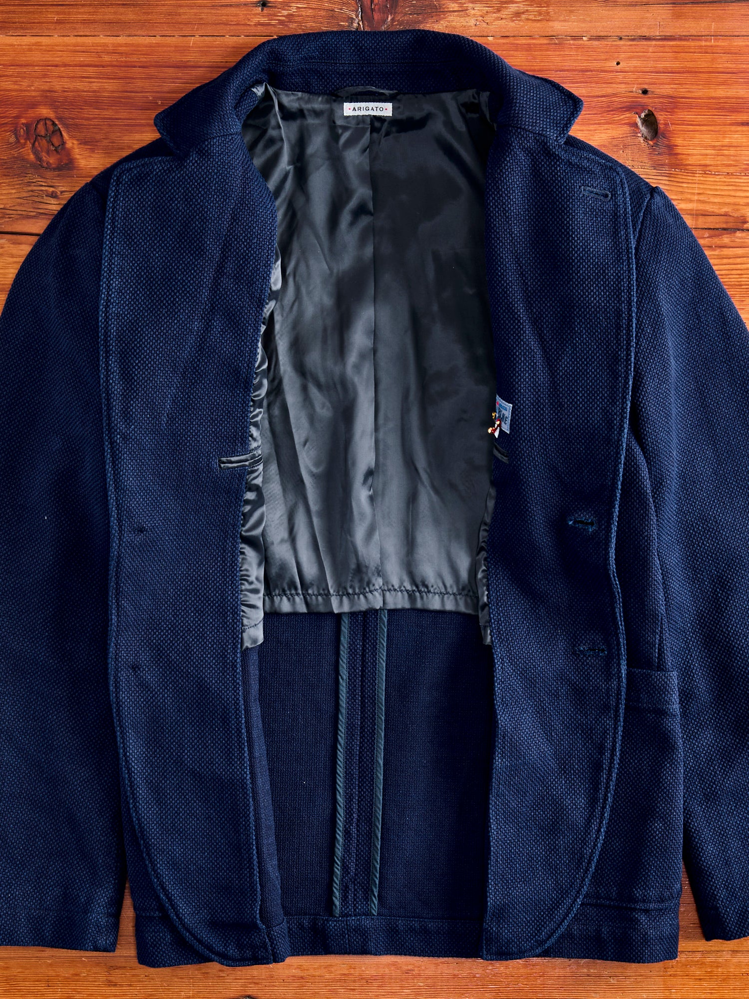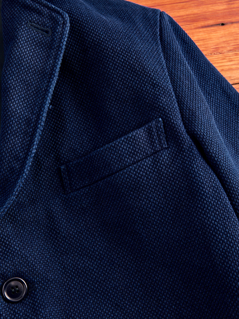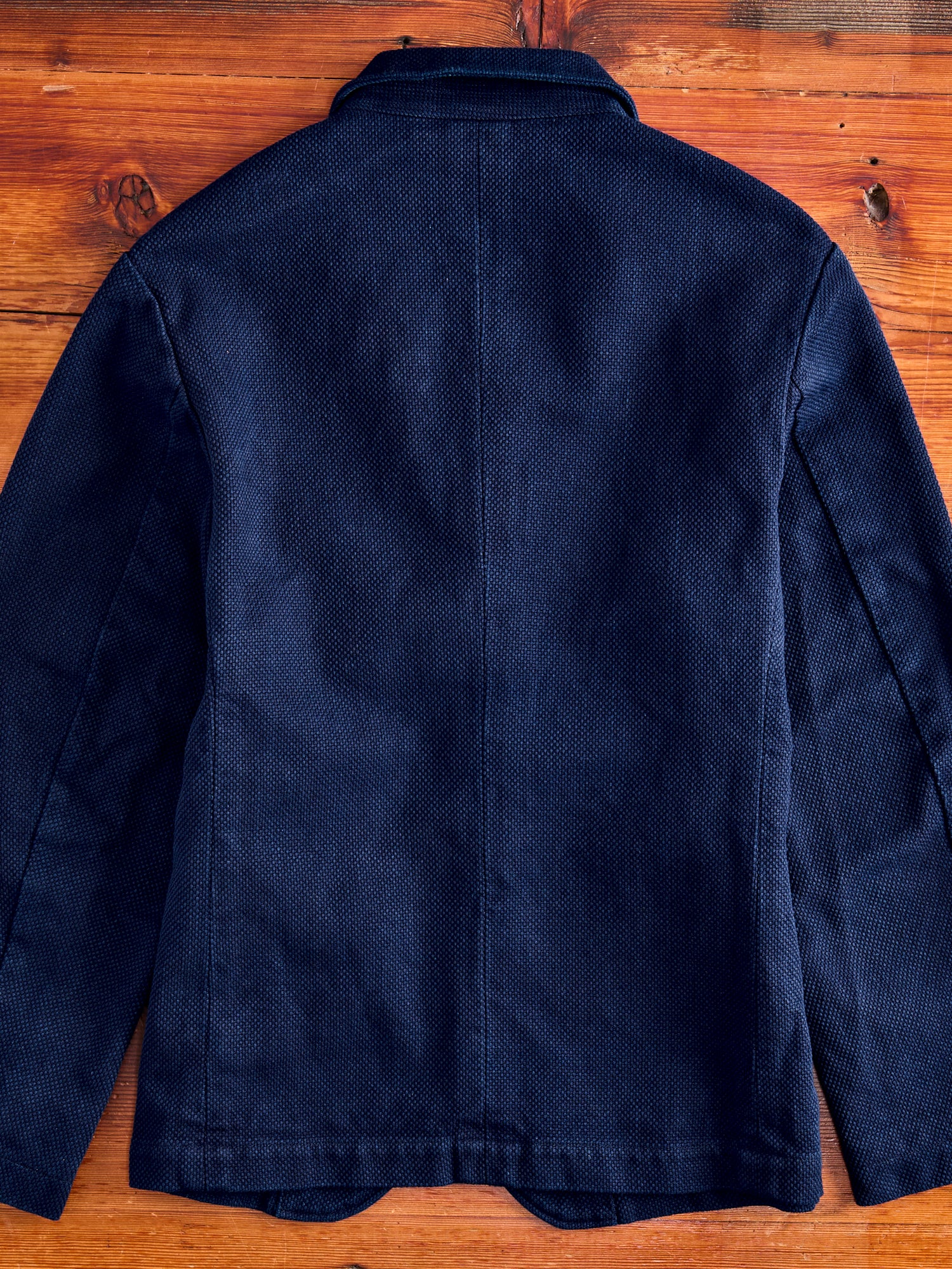 Double Cloth Sashiko Tailored Jacket in Hand Dyed Indigo
