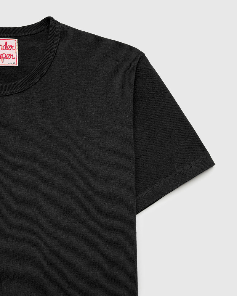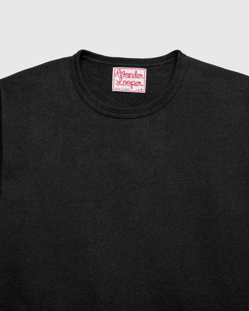 • Wonder Looper's Double Heavyweight T-Shirt is made from one of the heaviest jersey fabrics ever produced, and has come to define the brand as its staple piece. Circular knit in Japan, the fabric has an uneven surface texture, and weighs roughly two times that of a conventional heavyweight t-shirt. Cut in a modern athletic fit and finished with a binder neck ribbed collar and Union Special flat side seam construction.