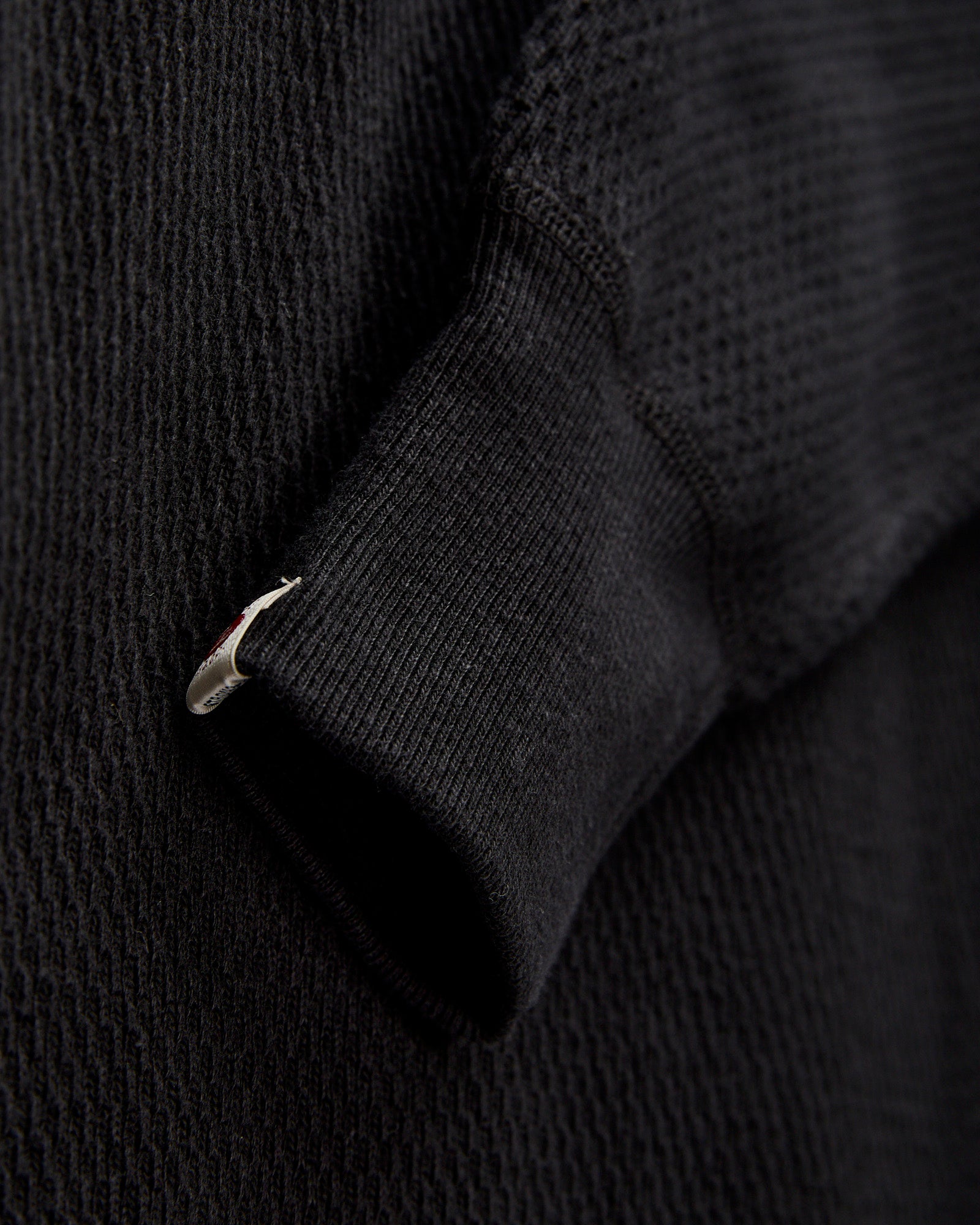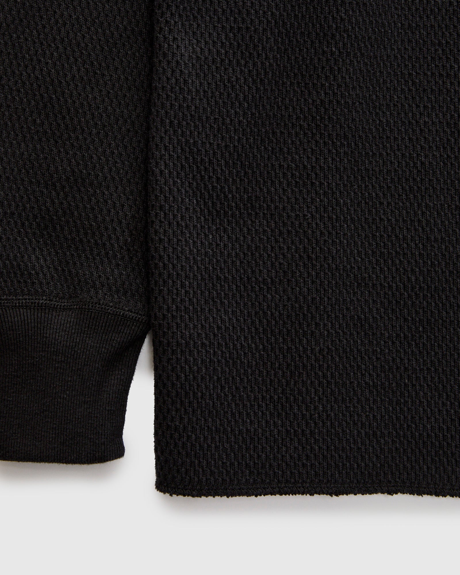 • Designed as the ultimate base layer, UES' Double Honeycomb Thermal is constructed at a substantial 16.5oz weight using old-world knitting machines. Built for maximum insulation and comfort, the fabric is exceptionally thick with a plush interior, making it suitable as either a standalone piece or a foundational layer during colder months. Cut in a slim profile, the shirt is finished with ribbed cuffs, a reinforced collar, and traditional four-needle flat-seam construction.