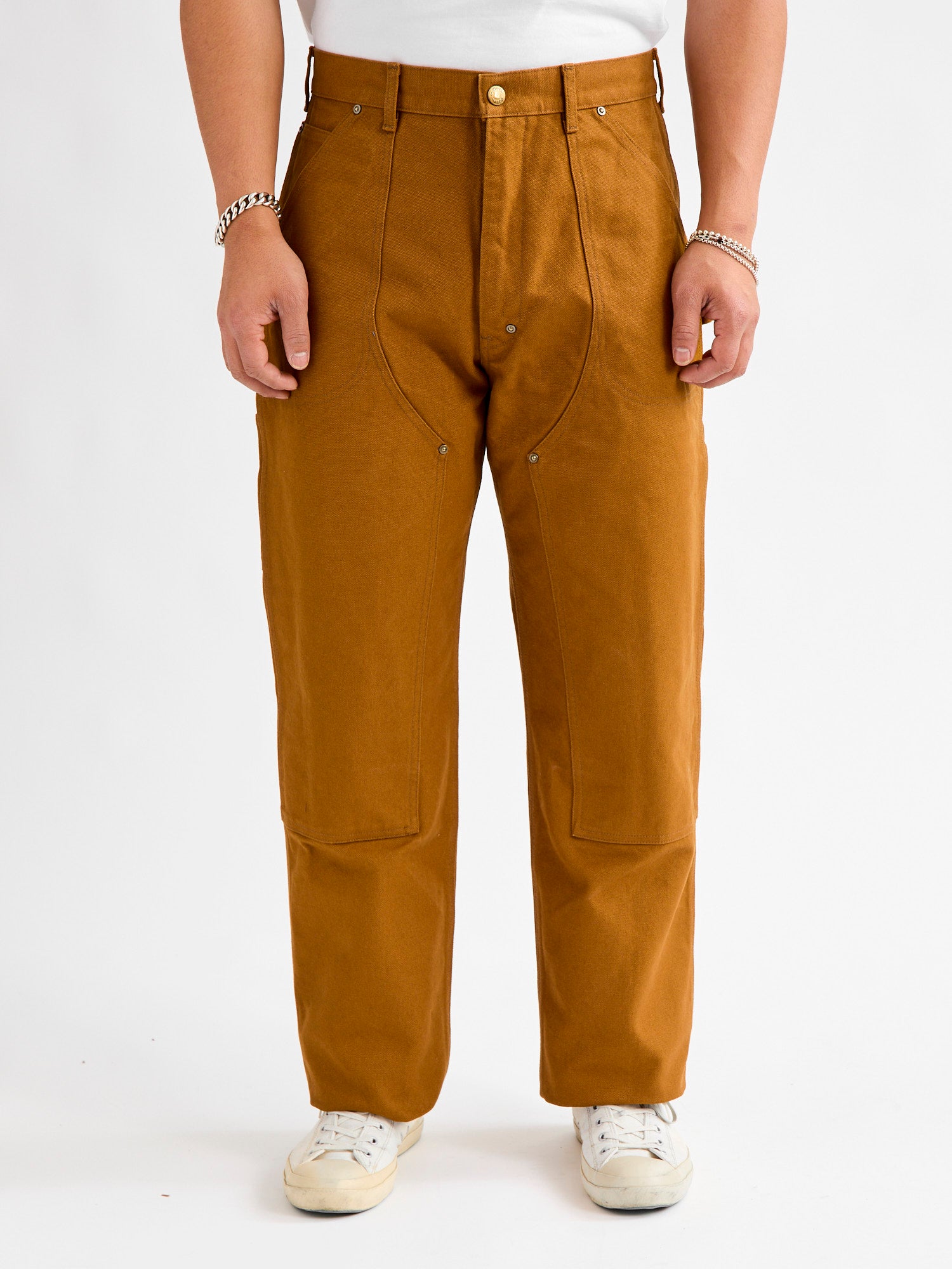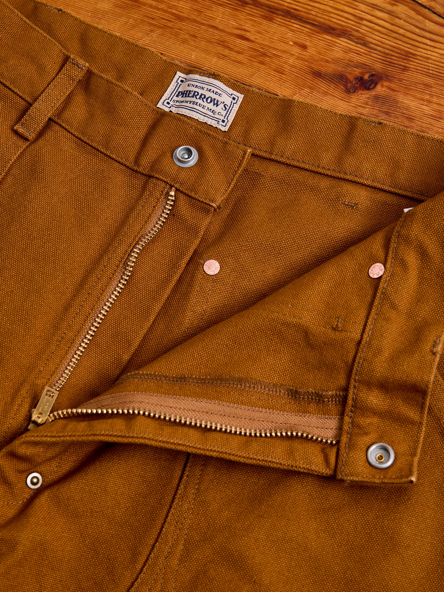 • Reproducing 1960s Painter Pants, these workwear trousers are cut in a straight leg fit from a mediumweight Japanese duck canvas. Pherrow's follows vintage patterns in crafting these trousers complete with time accurate rivet positioning, stitch angles, and knee to thigh double-layered paneling. Beautifully made in Japan, the duck canvas fabric features a stiff and durable texture that will soften up with wear and tear.