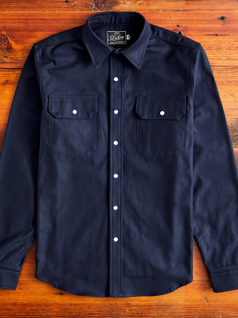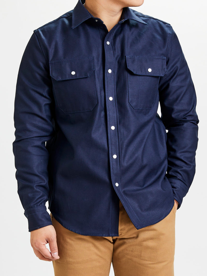 Drover Overshirt in Navy Sateen