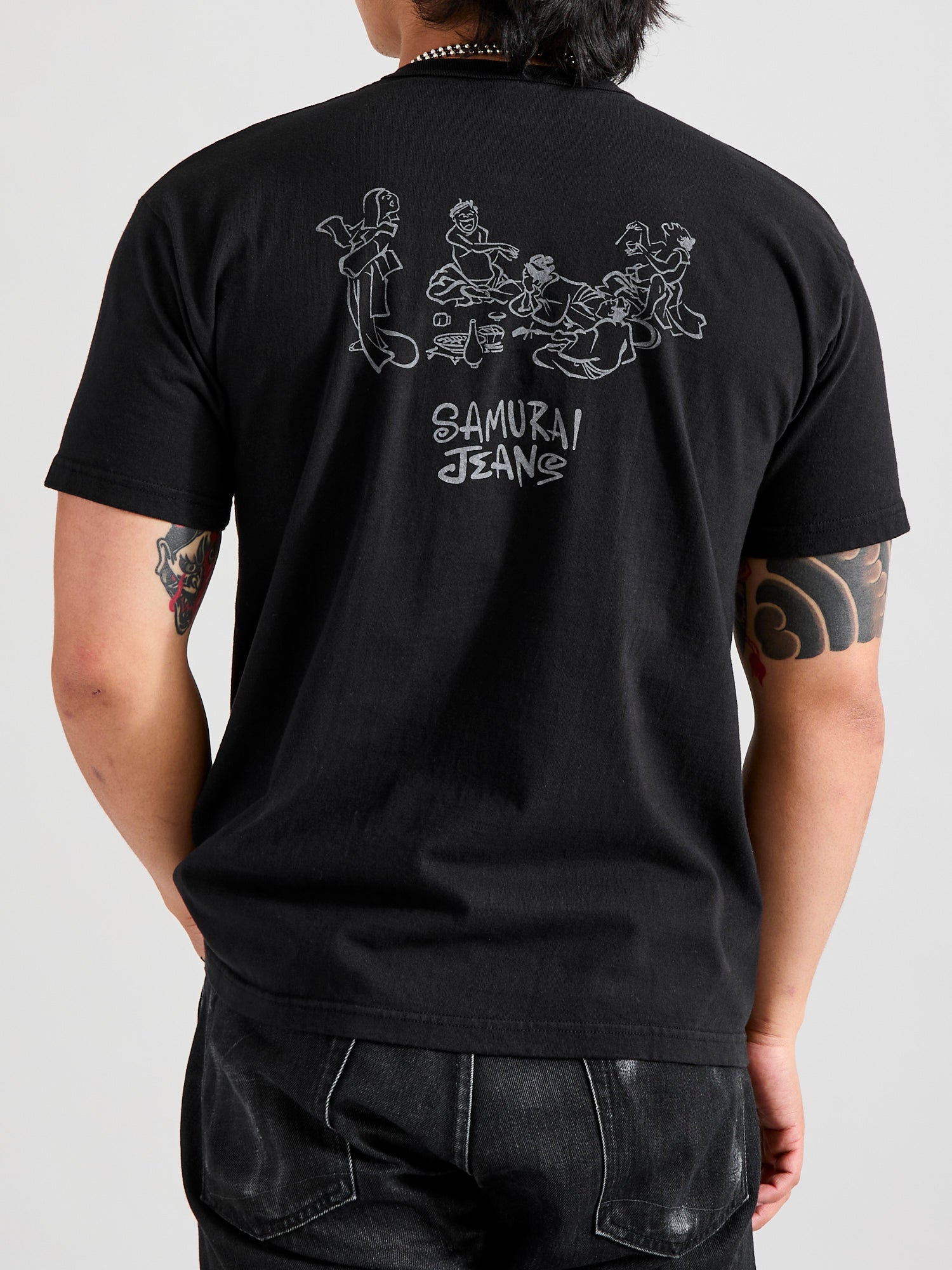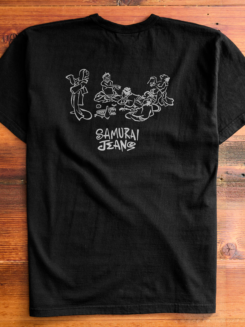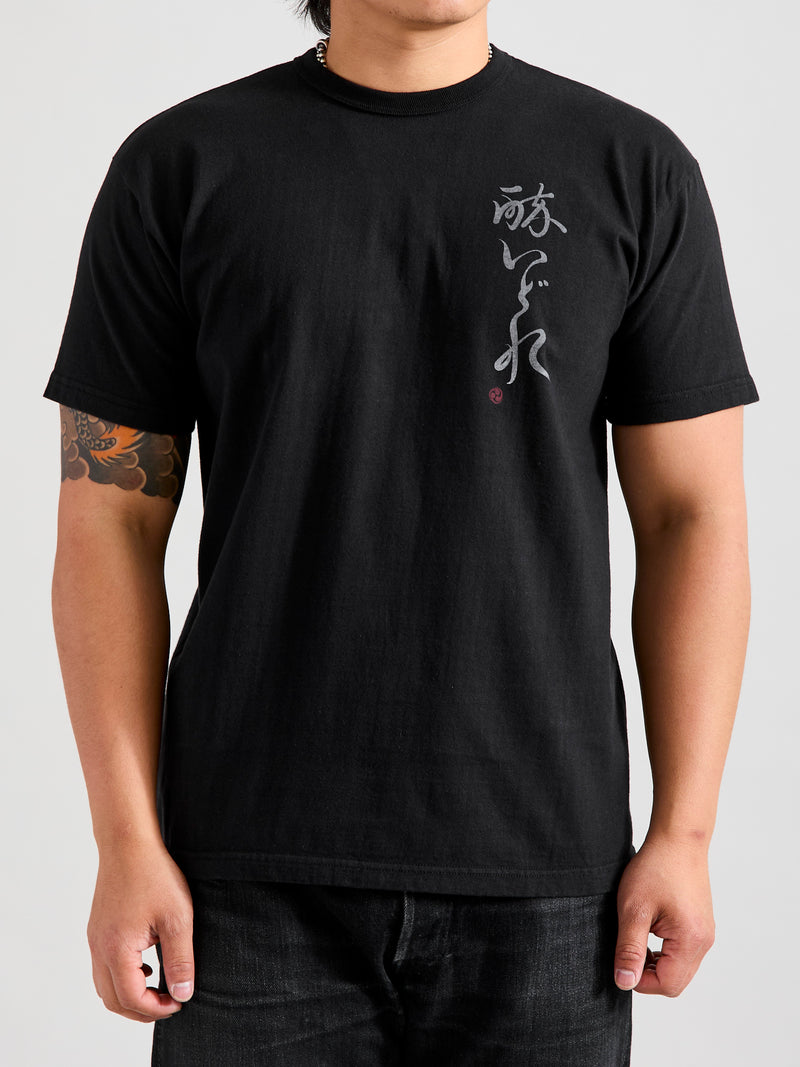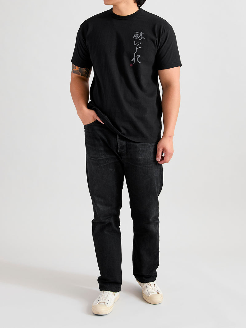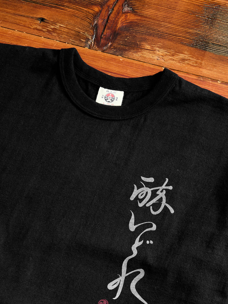 • Samurai's Heavyweight T-shirts are crafted using a thick 14 gauge yarn, and sewn with the same level of expertise as the brand's denim. Woven on vintage machines, the shirts feature carefully hand-printed silk screen images. This installment is cut in Samurai's new OVS fit, which increases the chest size and length for the overseas market.