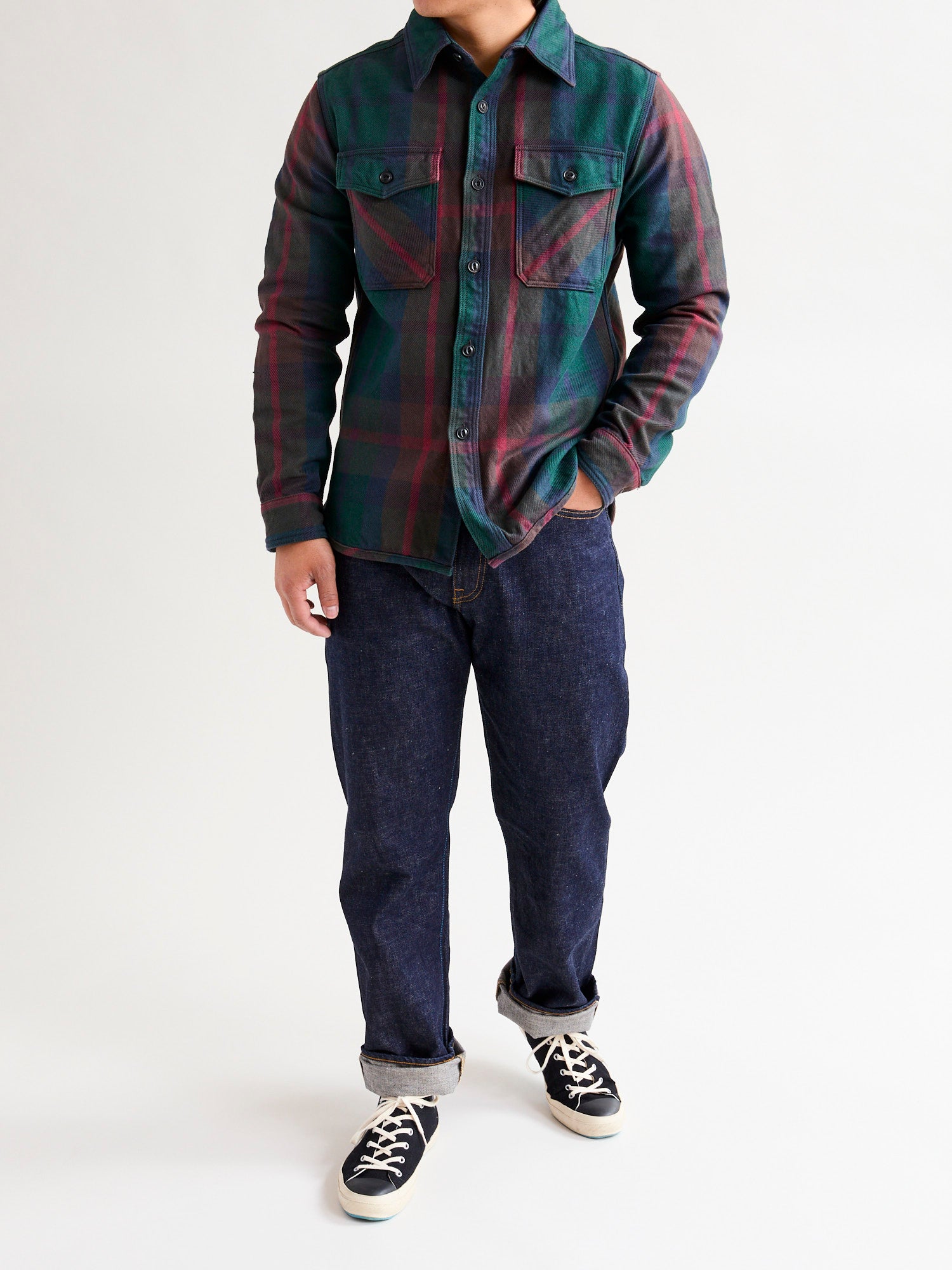 • UES' Extra Heavy Flannel is the brand's heaviest flannel offering, crafted from a robust 15.5oz fabric with a soft brushed interior for everyday comfort. Woven on vintage power looms, the Heavy Flannel features a robust, direct-dyed fabric designed to fade and soften over time. The direct dyeing method saturates the fabric with rich, enduring colors that develop a unique patina with wear. All UES flannel shirts feature chain-stitched side seams, utility chest pockets, and ivory palm nut buttons throughout.