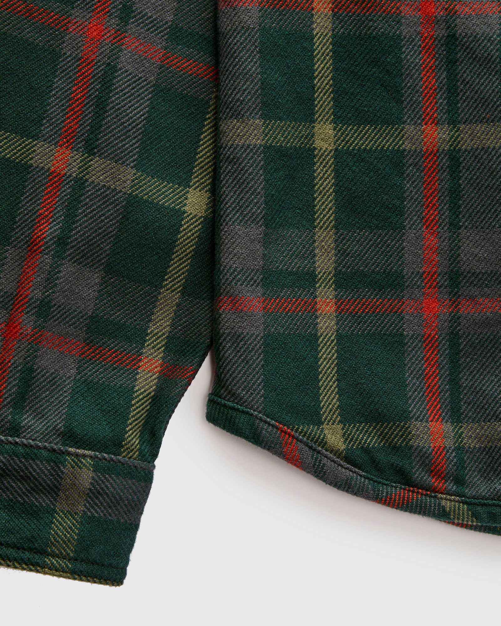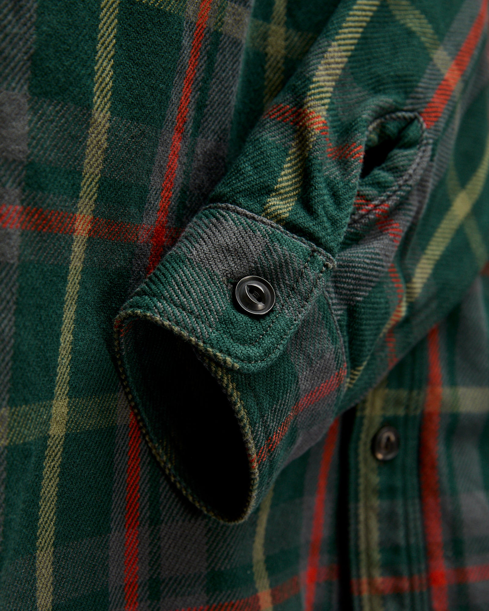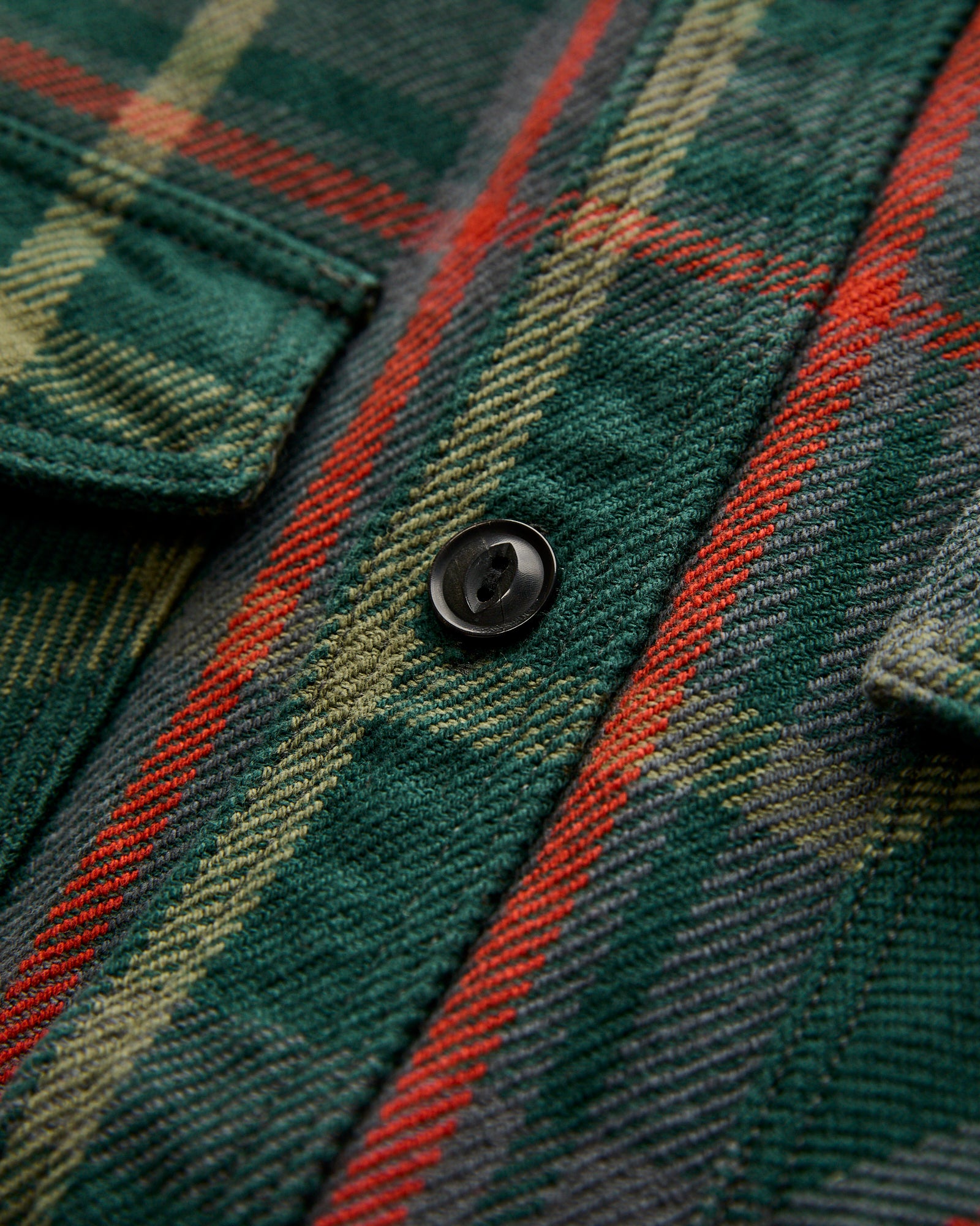 • The Extra Heavyweight Flannel is UES' heaviest flannel offering, constructed using a rugged 15.5oz selvedge flannel fabric with a brushed interior face for everyday comfort. Woven on vintage power looms, the Heavy Flannel features a sturdy, direct-dyed fabric designed to fade and soften over time. The direct dyeing method saturates the fabric with rich, enduring colors that develop a unique patina with wear. All UES flannel shirts feature chain-stitched side seams, utility chest pockets, and buffalo horn buttons throughout.