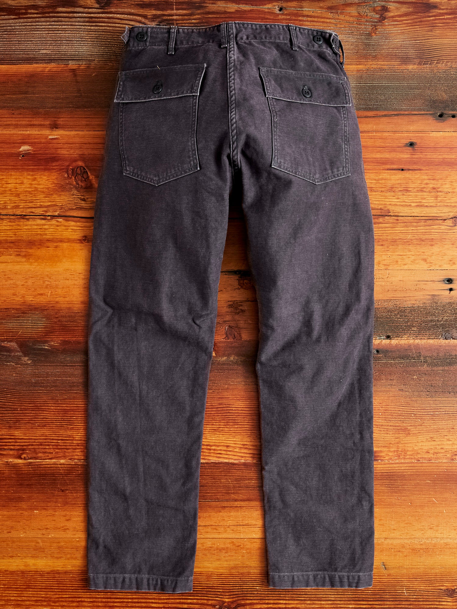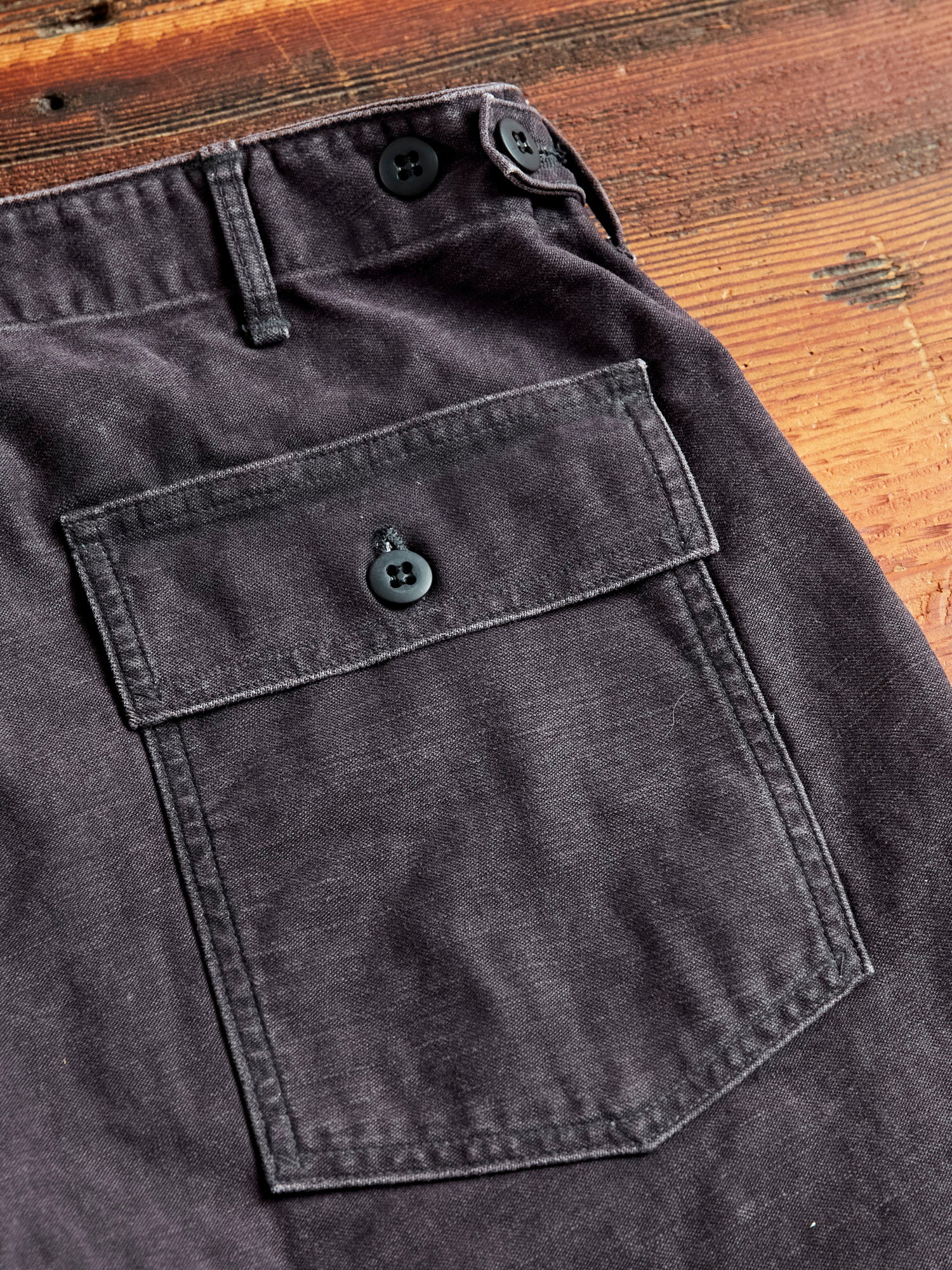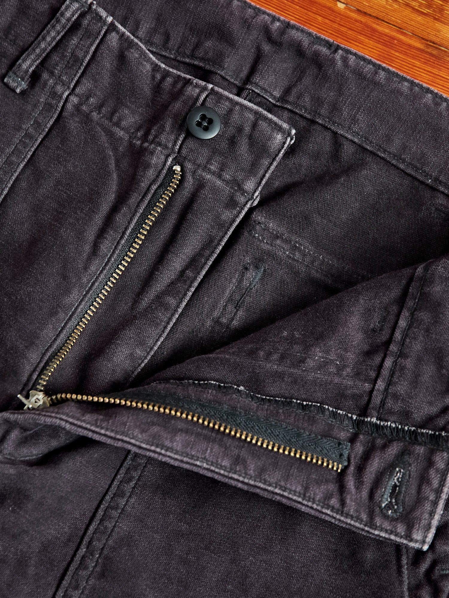 • Inspired by classic military uniforms of the 70's, orSlow's Fatigue Pants are a rugged alternative to jeans. Built from a durable reverse sateen fabric, this installment has undergone a stonewashing process to replicate the look and feel of a worn-in garment. The pants feature standard issue design elements such as elongated pockets with exterior detailing and bartack reinforcements, and are cut in a slim fit silhouette that is easy to wear.