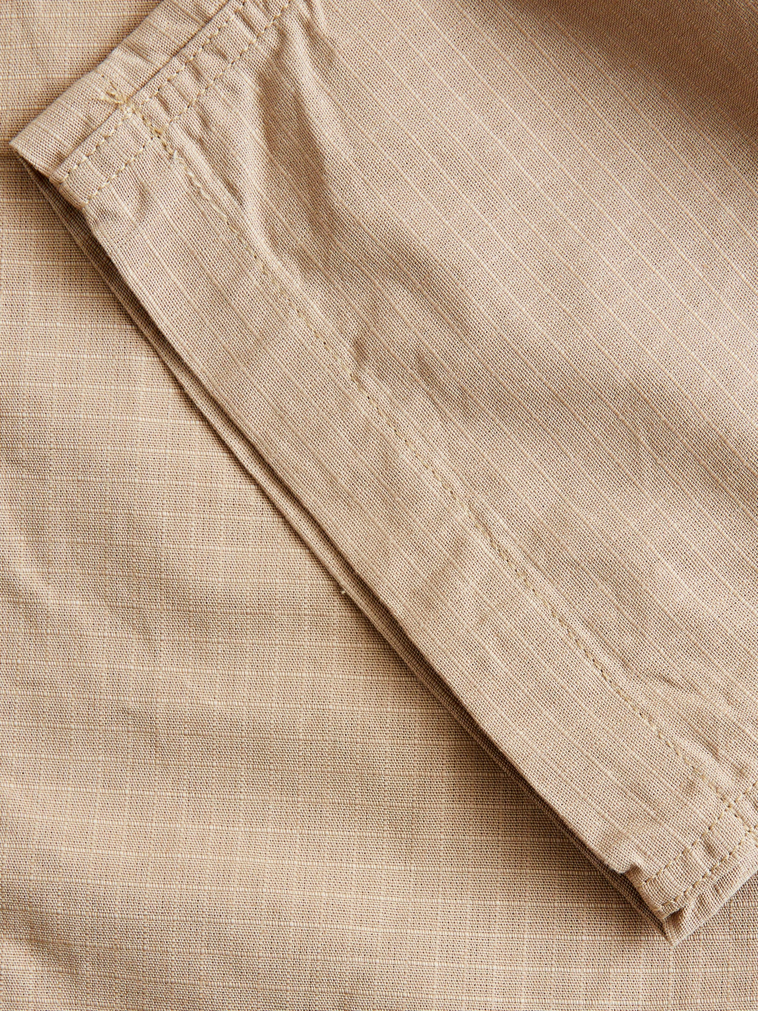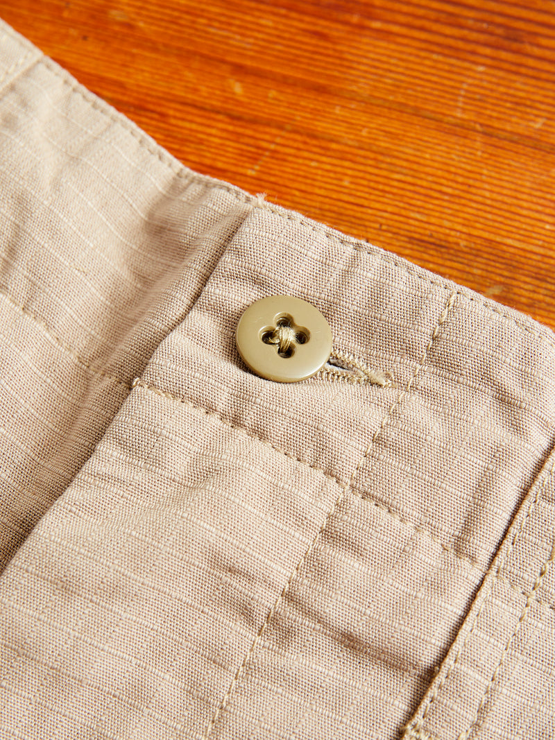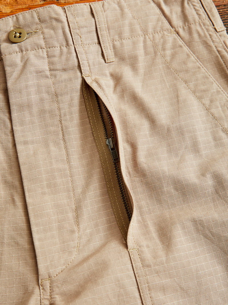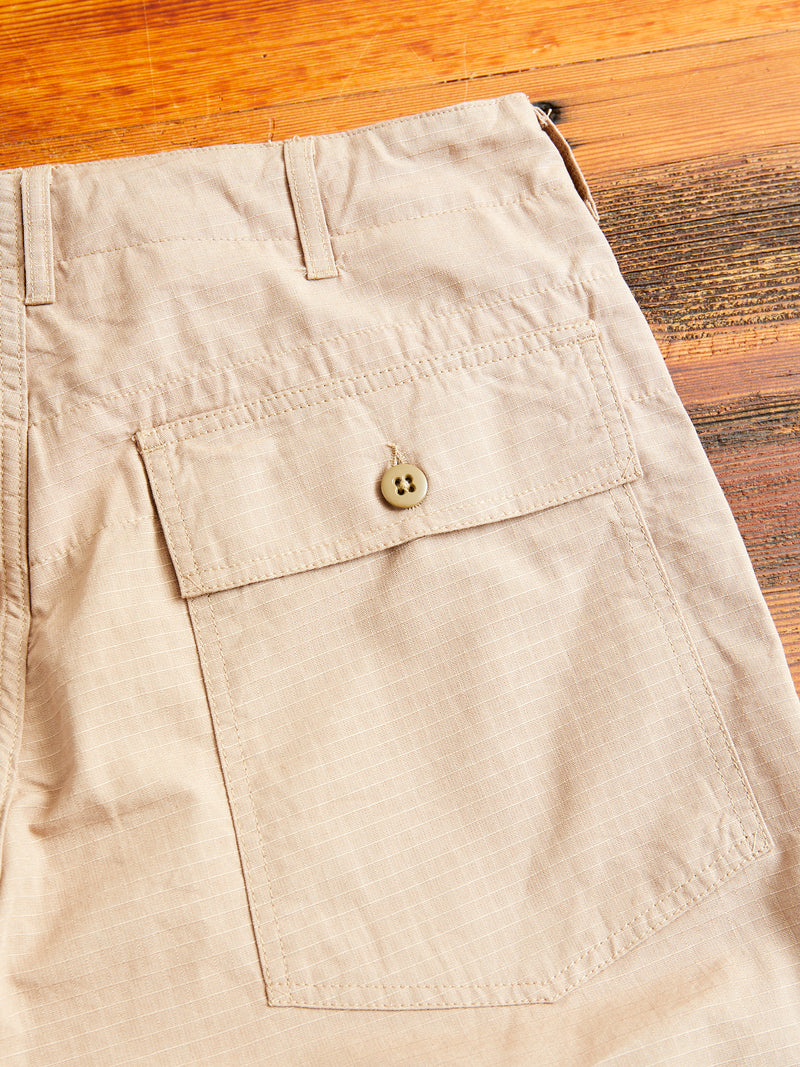 • A military inspired classic, Engineered Garments updates the iconic Fatigue Pant silhouette with great attention to detail. Featuring a durable cotton-ripstop fabric, the pants sport a sturdy and lightweight feel. The pants come cut in a tailored straight-leg fit, with a roomy top-block and slight taper down the leg. Detailed with drawstrings at the waistband, large fatigue-style pockets, and cinch openings at the hem, designed to lead a string through to adjust leg opening.