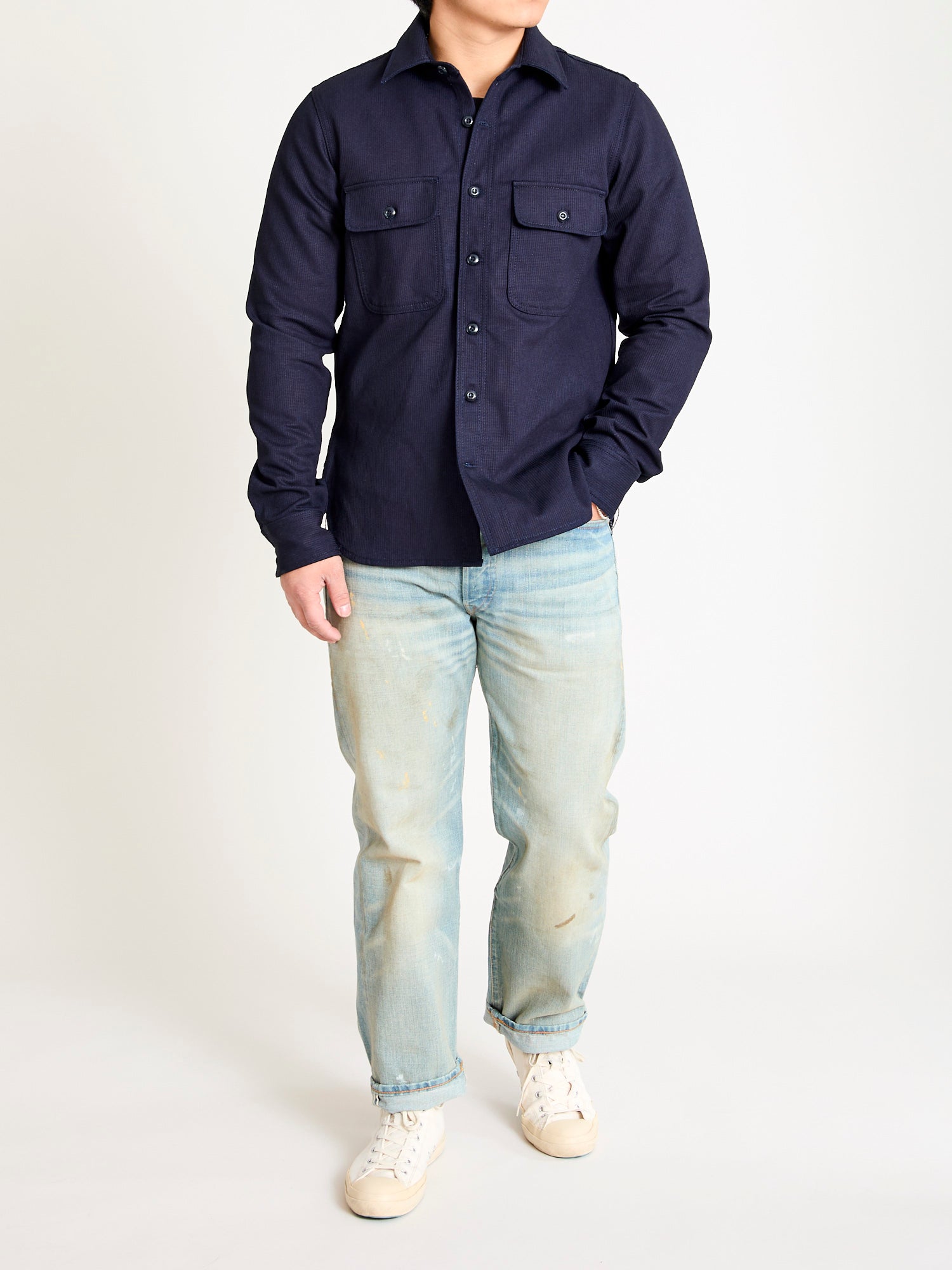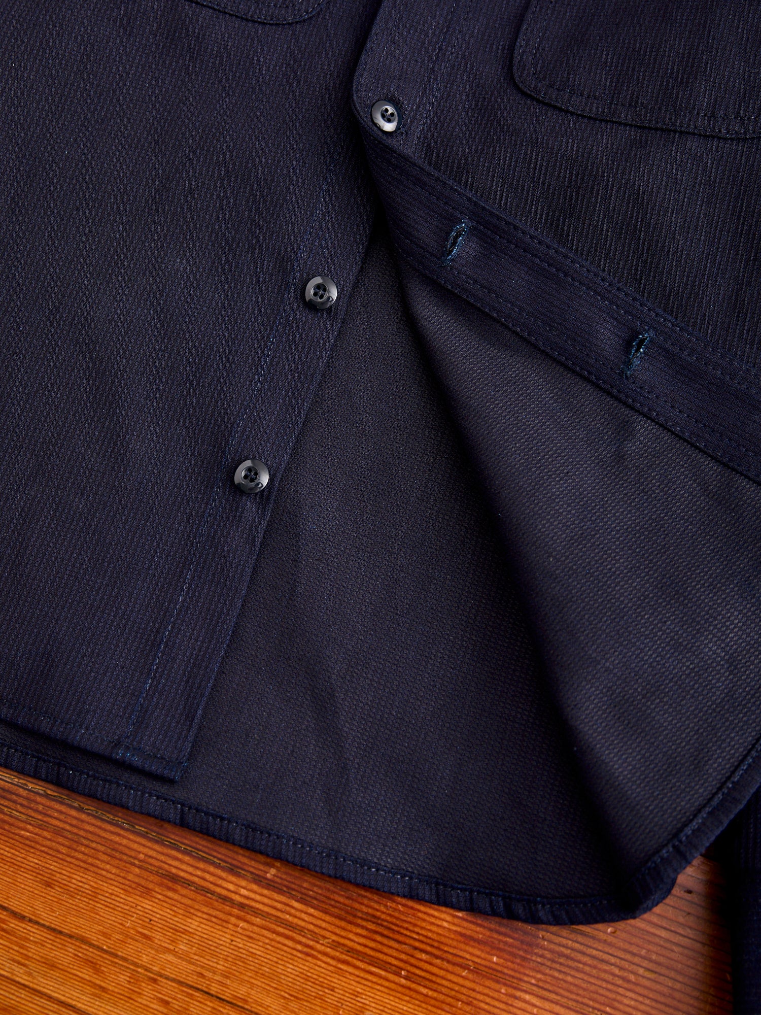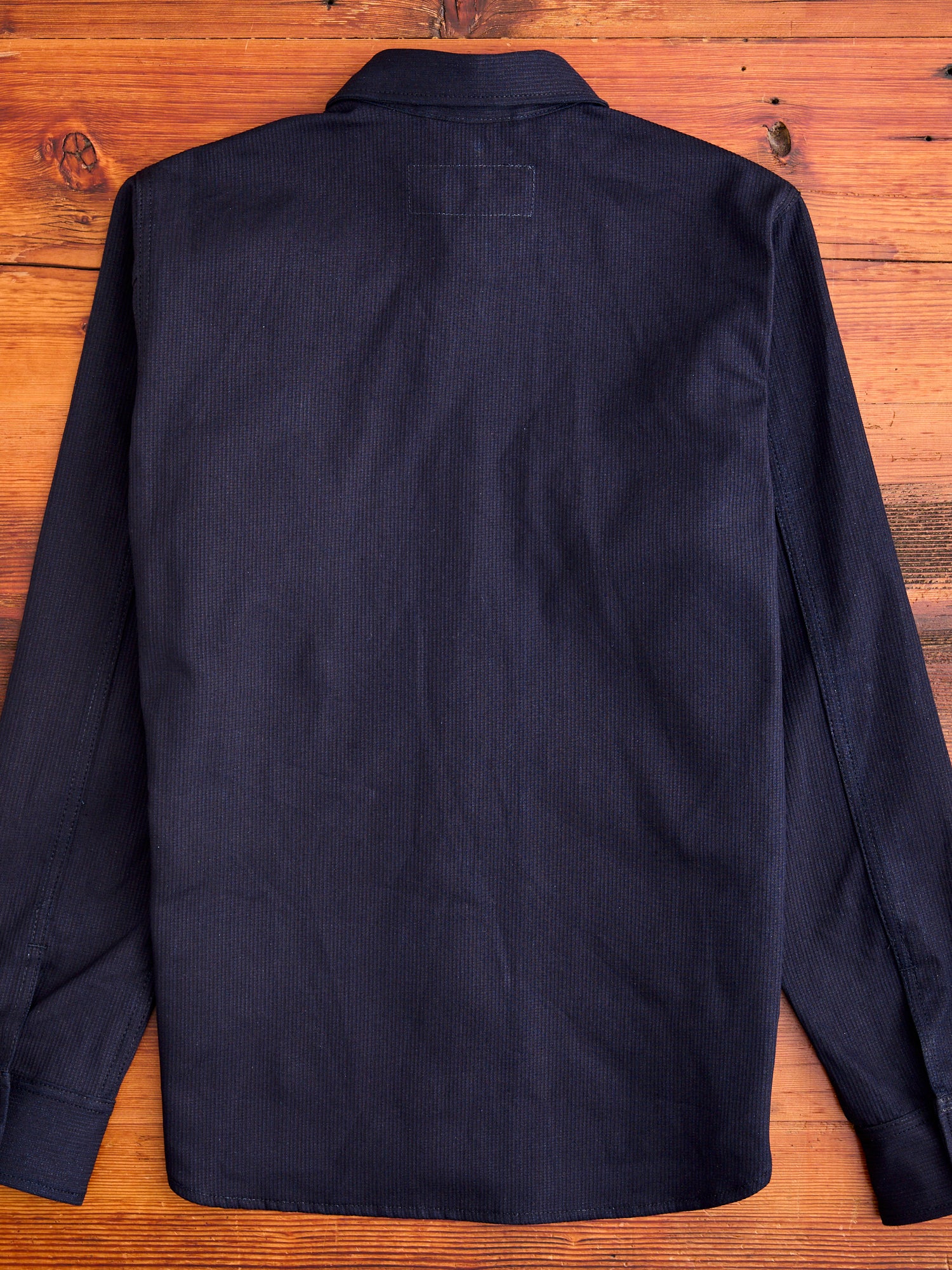 • Inspired by classic work shirts, Rogue Territory's Field Shirt is an easy-to-wear rugged style. This installment is made using a 8oz Japanese indigo whipcord fabric, woven with an an ample surface texture. The shirt is designed in a classic work shirt silhouette with two pockets at the chest and double needle chain-stitch runoff at the vents.