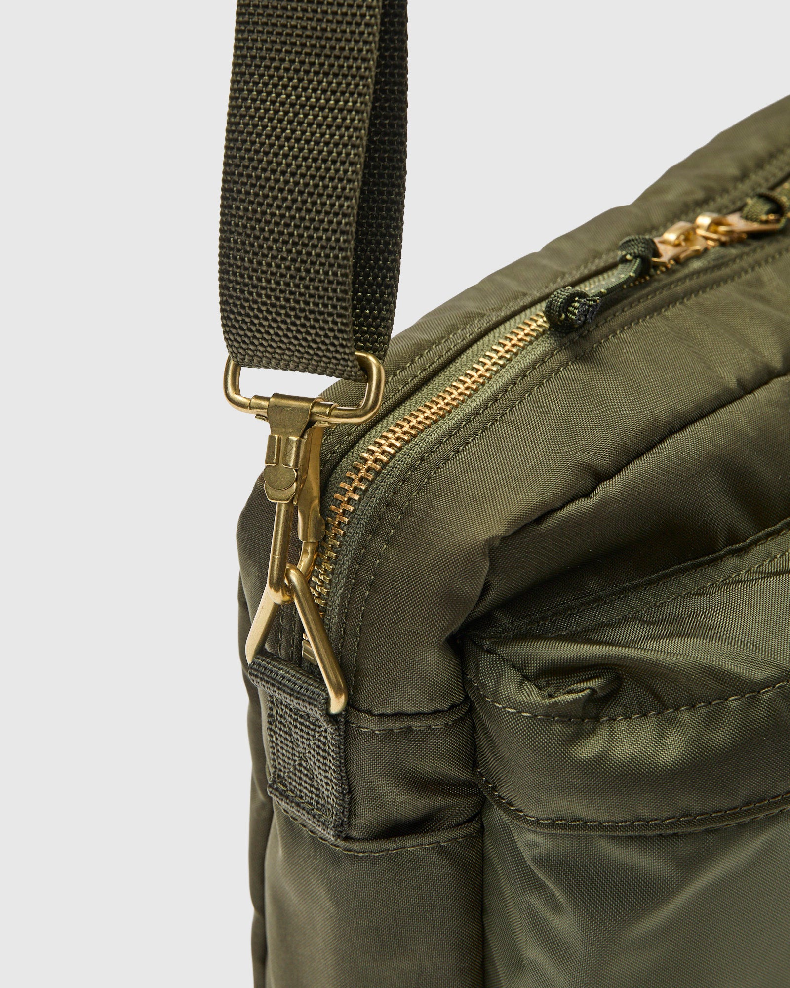 • The Force series receives inspiration from tactical military gear, reimagining mil-spec fabrics for everyday use. Made using a custom fabricated 210 denier nylon, a lightweight, water-resistent cloth chosen for it's durability and abrasion resistance. Fitted with a tear-resistant nylon ripstop lining, Porter's interior liner comes in the brand's signature "rescue orange" and draws inspiration directly from military flight jackets. The 5457 shoulder bag is a mid-sized carry bag. Fitted with a removable pocket that doubles as a pouch and custom Japanese YKK zippers, this shoulder bag comes with two outer pockets and a large main compartment for great travel utility.