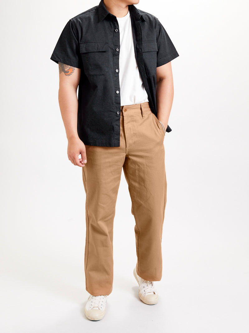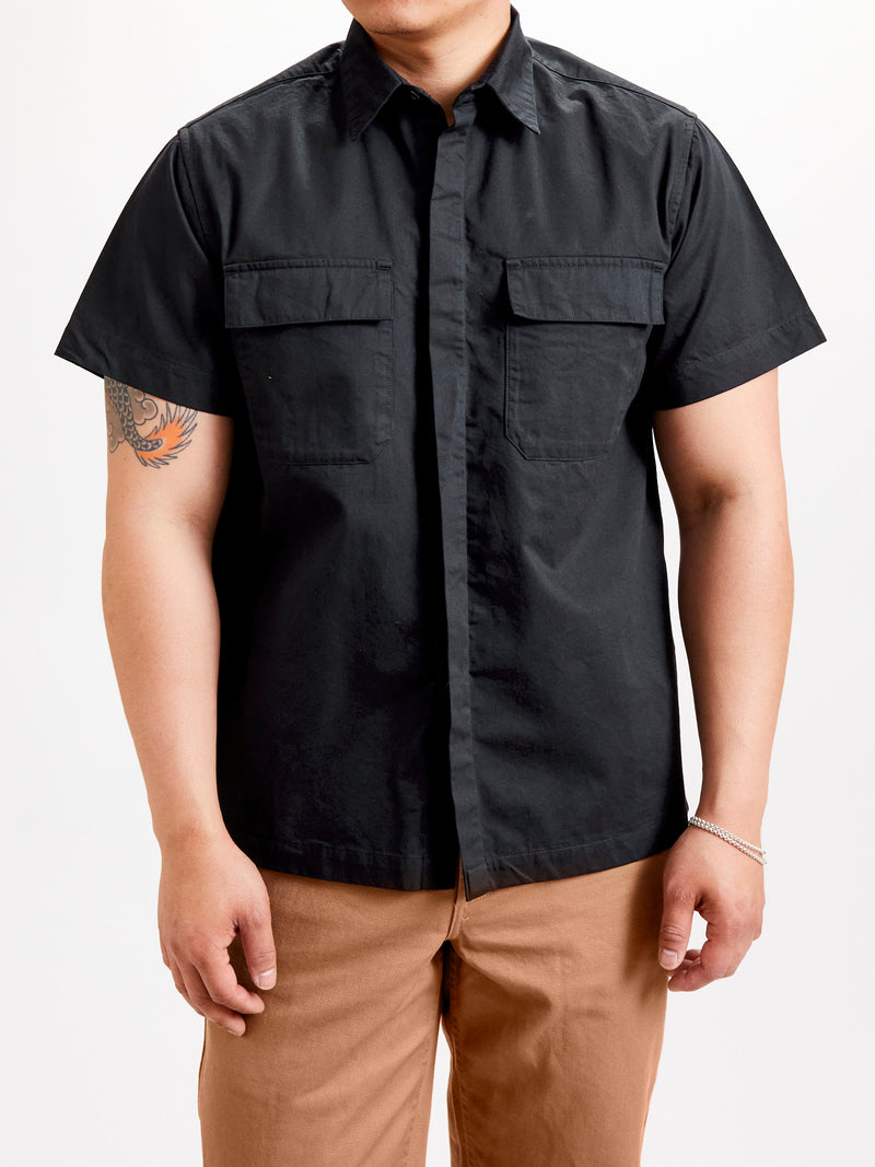 • The Garage Shirt from 3sixteen comes modeled after vintage mechanic shirts with traditional button-up oxford detailing. This iteration of the shirt is built using a custom-developed, high thread count and densely woven cotton fabric. Made in India, the shirt features custom buttons, a button up collar design, dual flap chest pockets, and comes finished with a straight hem.