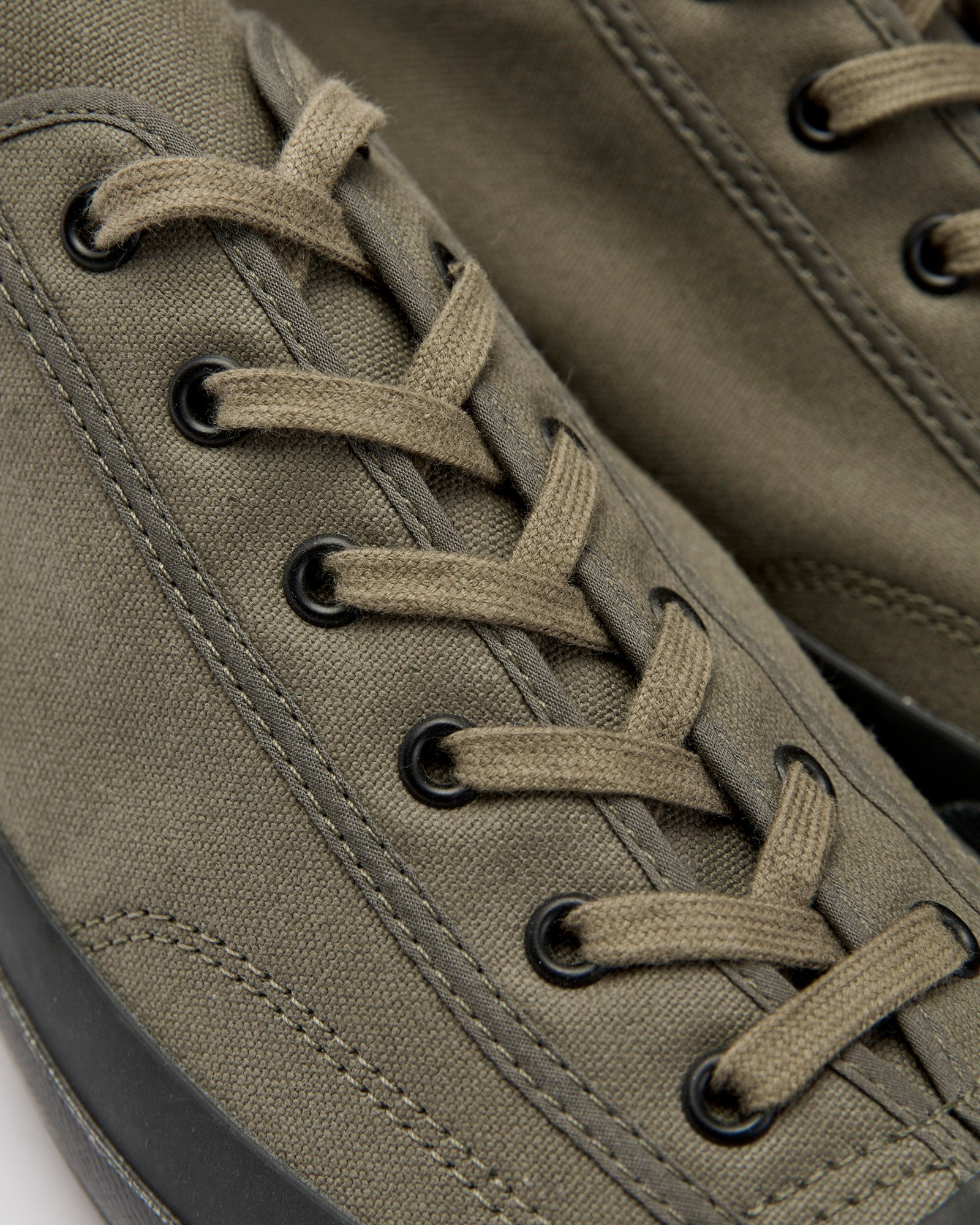• The Gym Classic Sneaker from Moonstar is a reimagined version of a 1960s tennis shoe, faithfully preserving the midcentury design, comfort, and quality. Crafted in Japan, the sneakers feature a heavyweight canvas upper paired with vulcanized rubber soles. Each pair is built using the traditional "Ka-ryu" process, in which the outsoles are kiln-fired at 240°F to produce a stronger, more durable construction that holds up to extensive wear.