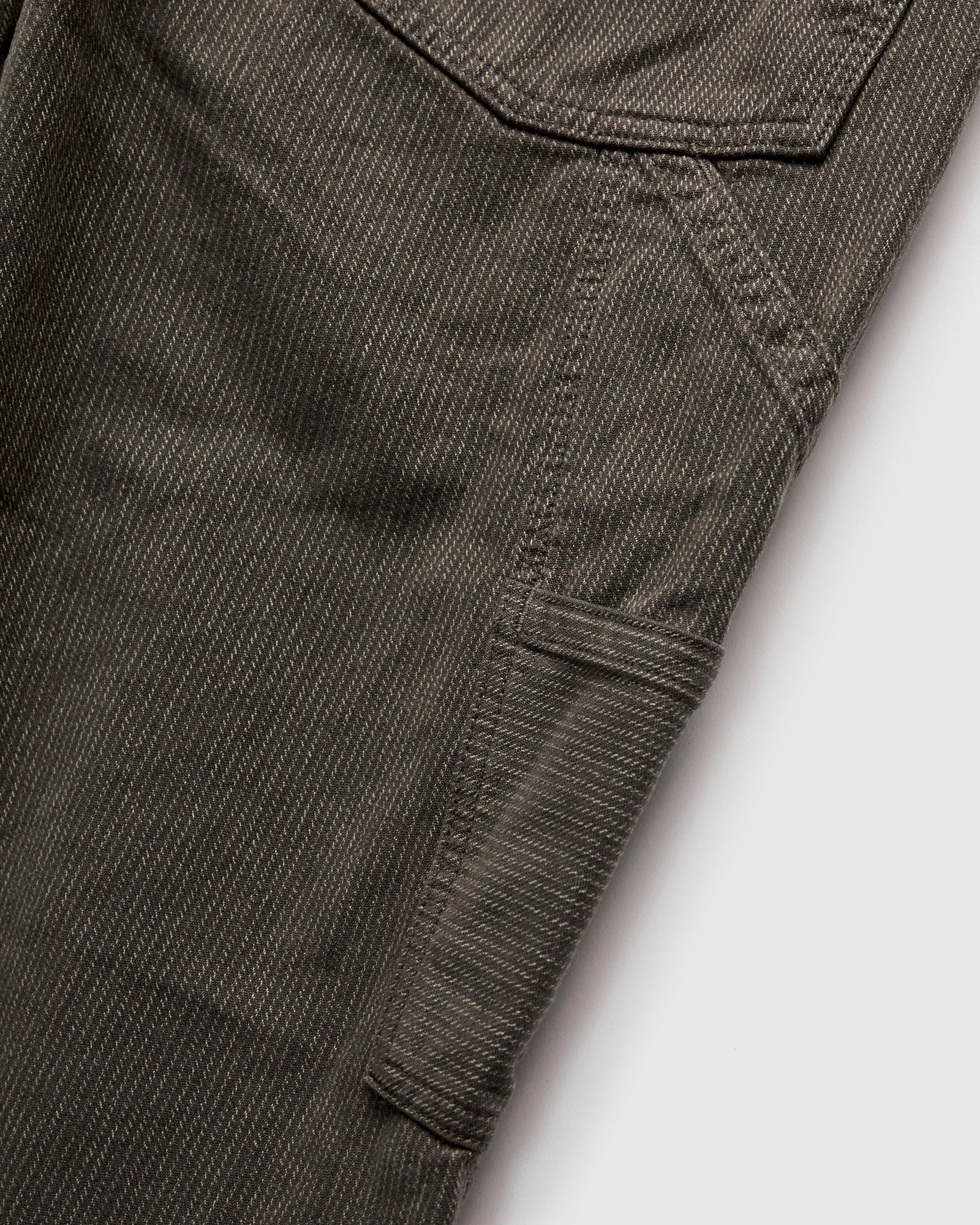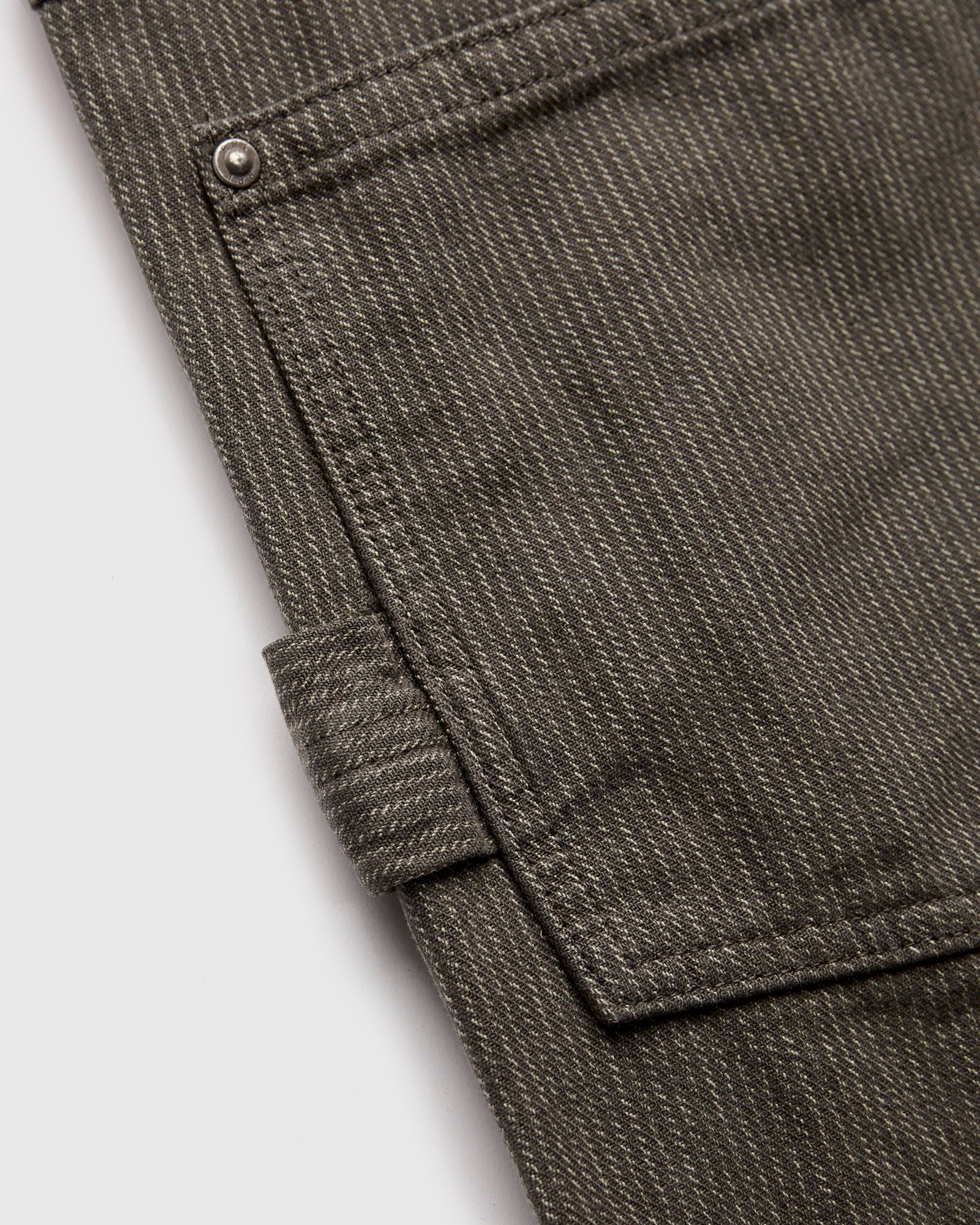 • Inspired by vintage workwear, this installment of RRL's Hamilton Carpenter Pant is made from a burly 9.75oz striped cotton twill from Japan. The pants are heavily-laundered to achieve a ultra-soft feel and time-worn that shows off the fabric's contrasting stripe texture. Cut in the brand's Engineer straight fit, the pants are equipped with utilitarian tool pockets at the thigh to round out the carpenter-style look.