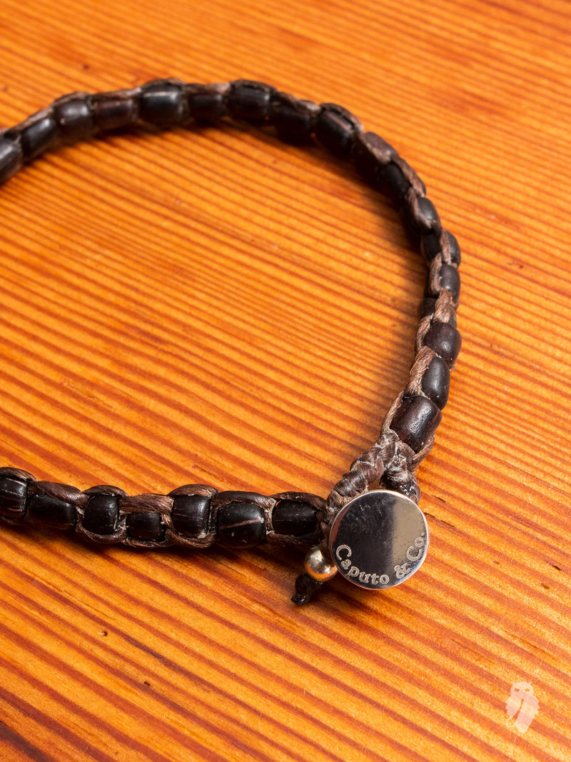 • This bracelet comes as part of Caputo & Co.'s Southeast Asian-inspired collection, made in collaboration with select artisans from Bali. Woven using recycled glass, the bracelet is handmade using regional techniques that have been practiced for centuries. Sewn with sturdy waxed nylon threading and fitted with sterling silver accents and loop closure.