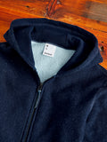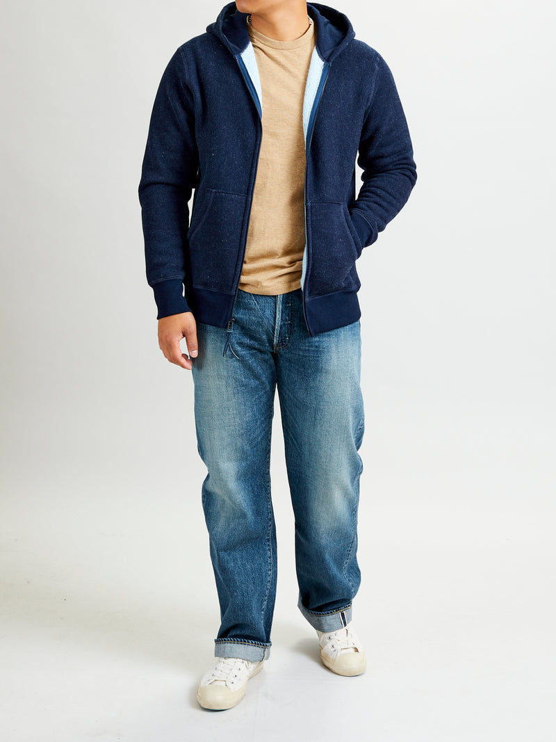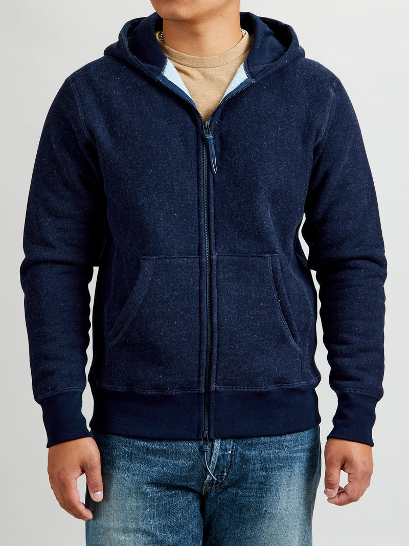 • The Heavyweight Hoodie from 3sixteen is a weighty 14.75oz fleece sweatshirt, designed for the utmost warmth and comfort in cold weather. This linstallment is crafted using indigo-dyed yarn for a rich blue color that will fade similarly to denim. The hoodie features a custom 3 piece hood designed for extra shielding against heavy winds and rain, as well as a double YKK zipper, and a streamlined look that foregoes the drawstrings of previous incarnations.