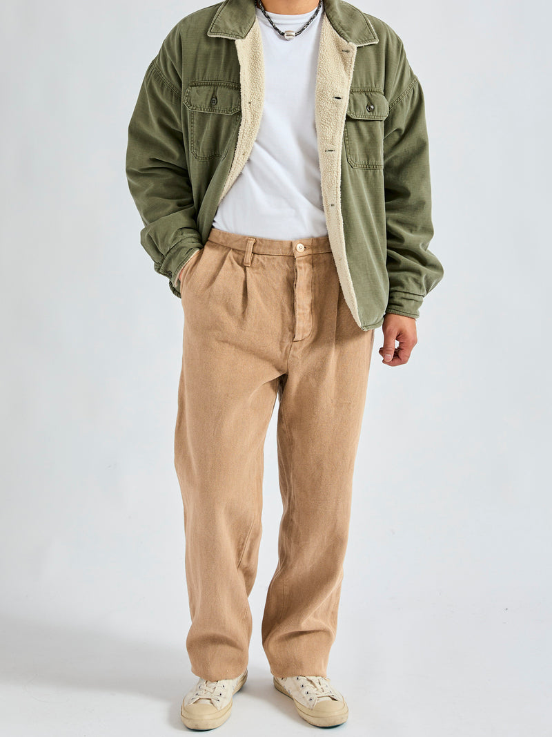 • Dyed with natural coffee grounds, SEUVAS gives their Double Pleated 2Tuck Pants a garment-dye treatment. Crafted from heavyweight herringbone twill, SEUVAS reinterprets the classic suit trouser for everyday use. Made in partnership with local Japanese cafes, the brand recycles coffee grounds for their dyeing process, echoing the brands commitment to reuse and sustainability. The pants feature a straight-leg cut and classic trouser details, including slant waist pockets, rear welt pockets, and a waistband liner.