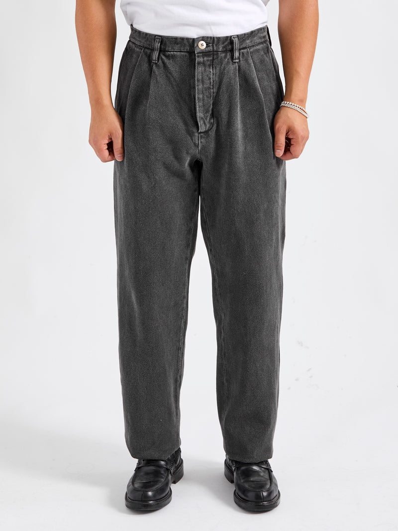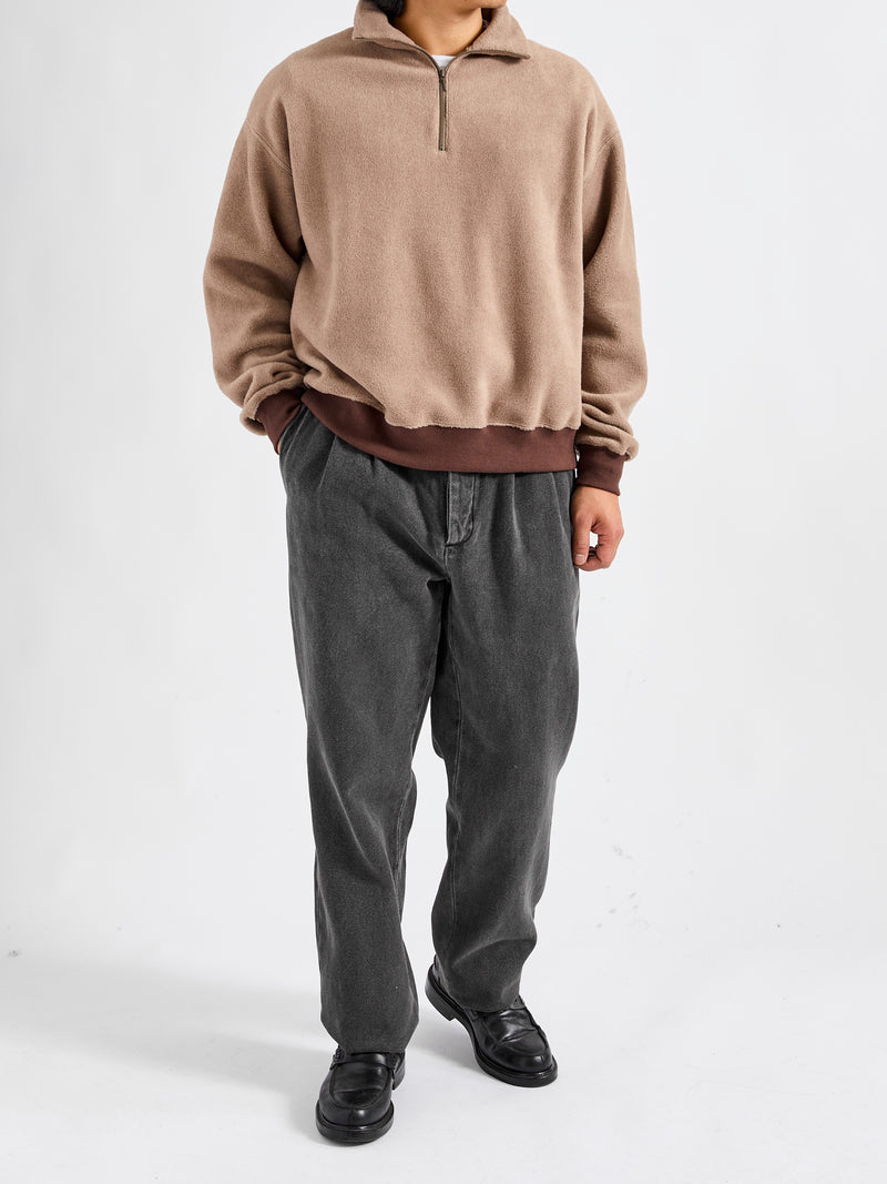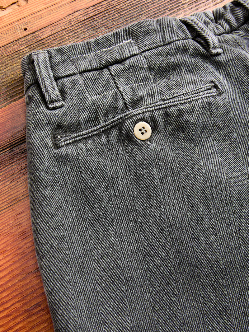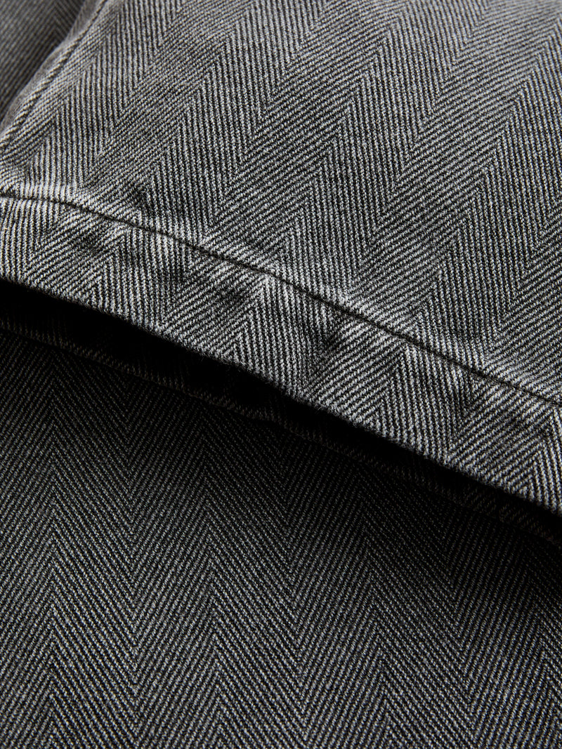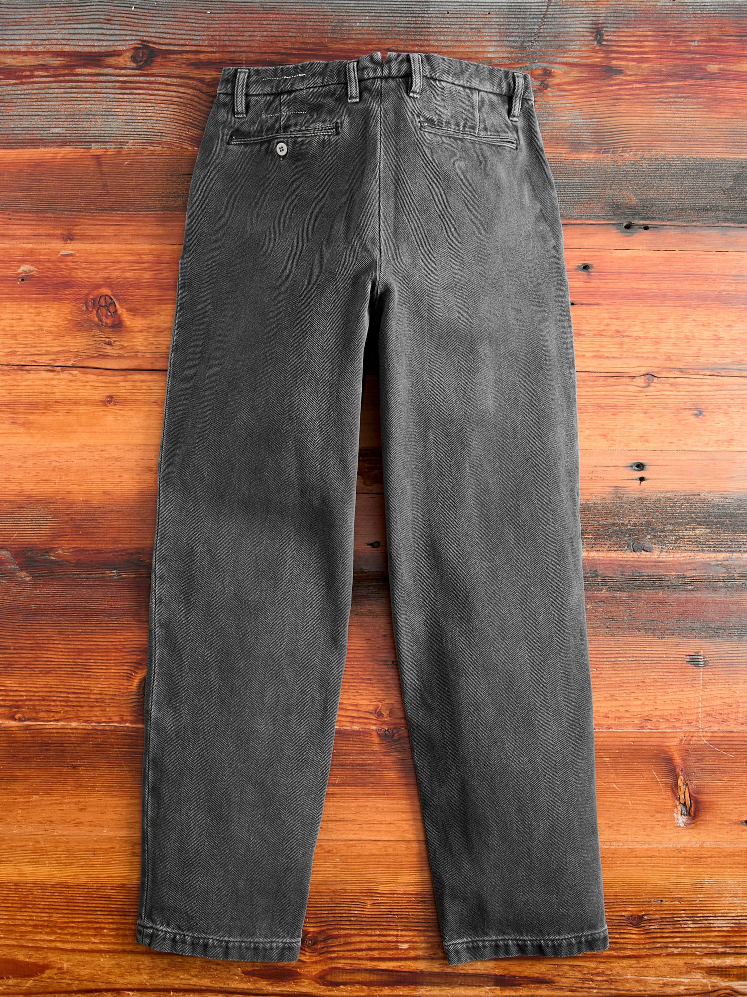 • Dyed with Japanese Binchotan charcoal and black sulfide dye, SEUVAS gives their Double Pleated 2Tuck Pants a garment-dye treatment for a deep hue that evolves over time. Made from heavyweight herringbone twill, these pants reinterpret the classic suit trouser for everyday use. They feature a straight-leg cut and traditional trouser detailing, including slant waist pockets, rear welt pockets, and a waistband liner. Binchotan charcoal, derived from white oak branches and traditionally used in Japanese cooking, adds depth to the dye, allowing the fabric's color to transform beautifully with wear.