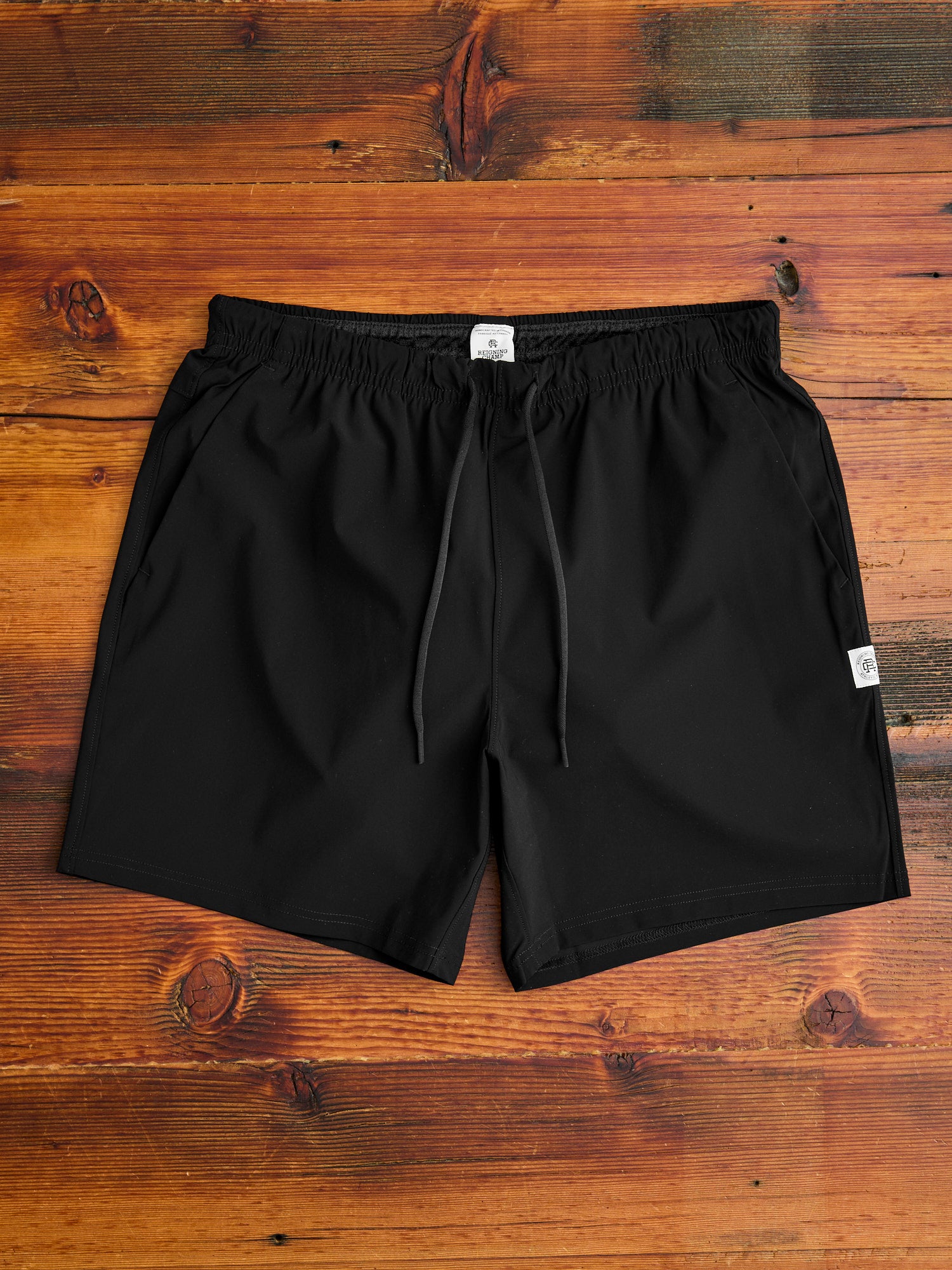 • Reigning Champ's all-new Swim Shorts are crafted in Canada using a high gauge Italian nylon with durable two-way stretch. Its fast drying knit surface resists pilling from sand abrasion, as well as fading from UV and chlorine exposure. The shorts are equipped with mesh-lined pockets, and feature a classic design with two slant pockets at the waist and a single zip pocket at the rear. Fitted with an elastic waistband for comfort.