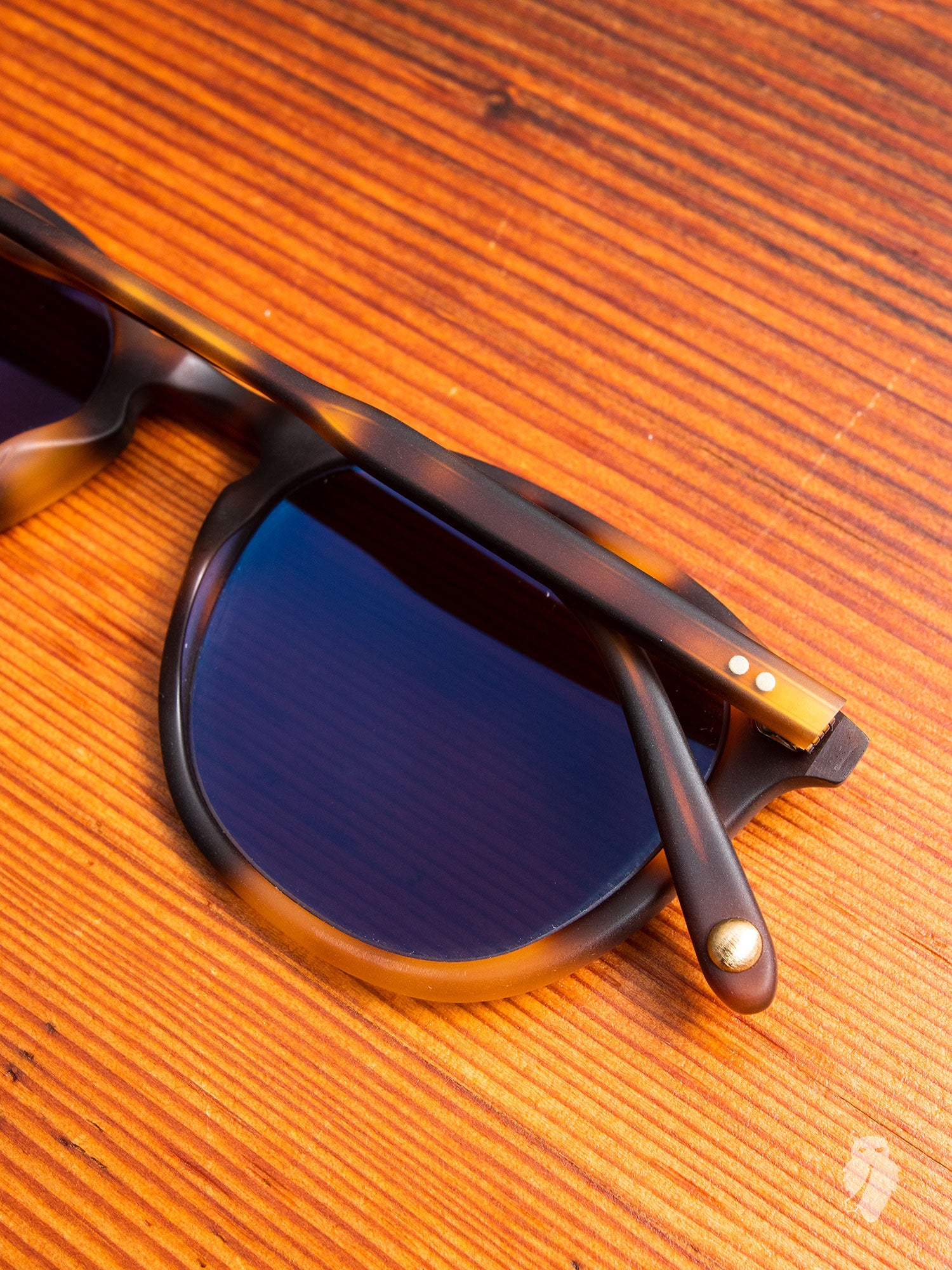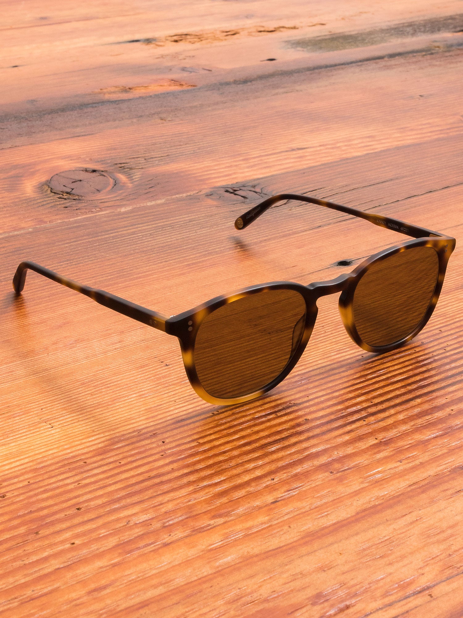 • Garrett Leight's Kinney sunglasses are an enduring wayfarer style inspired by the personality of Venice, California. Handmade from durable acetate, the versatile frame sports a rounded keyhole design idea for medium to large face sizes, and comes fitted with CR-39 UV protected lenses for harsh sunlight. Comes with custom leather carrying case and cleaning cloth.