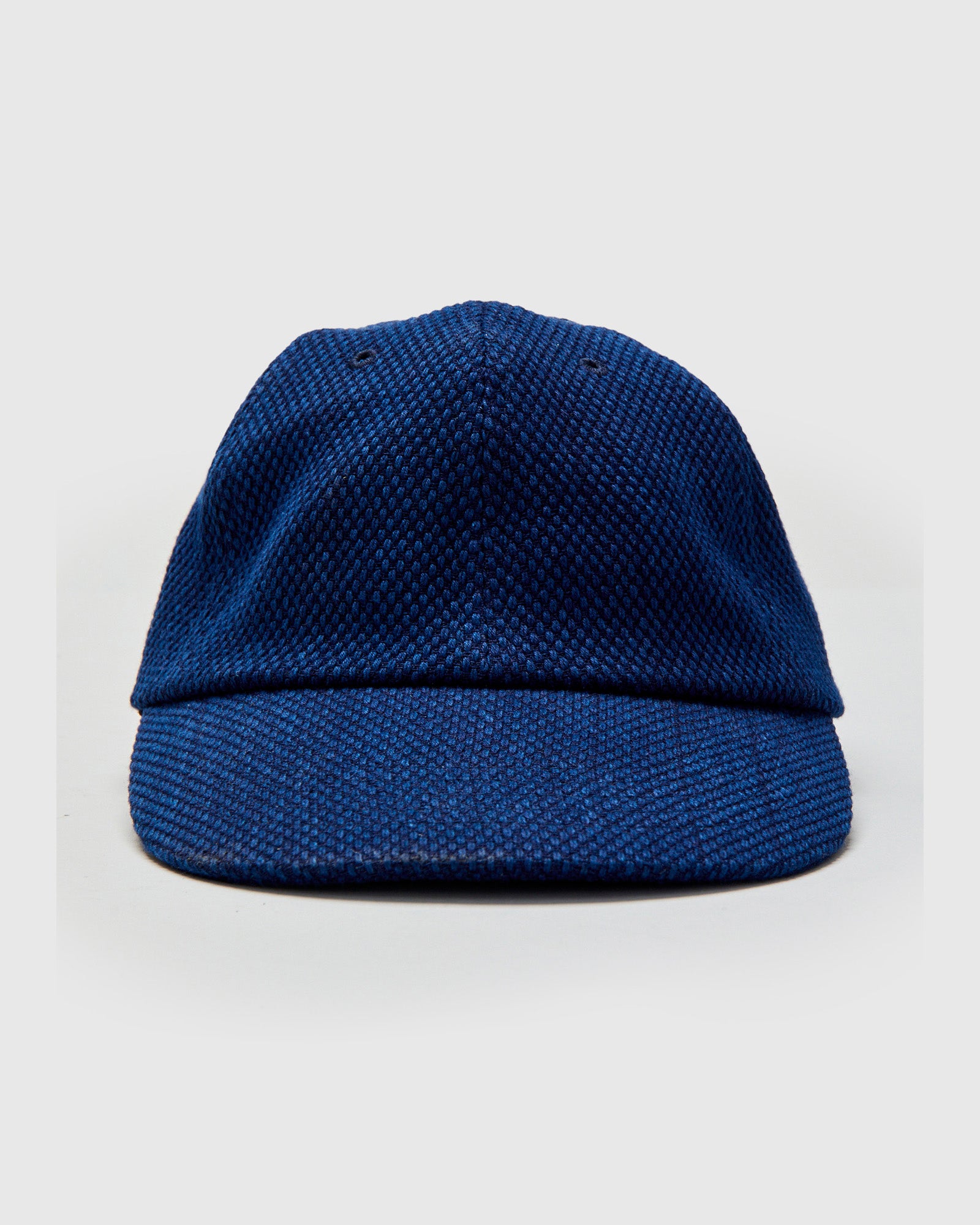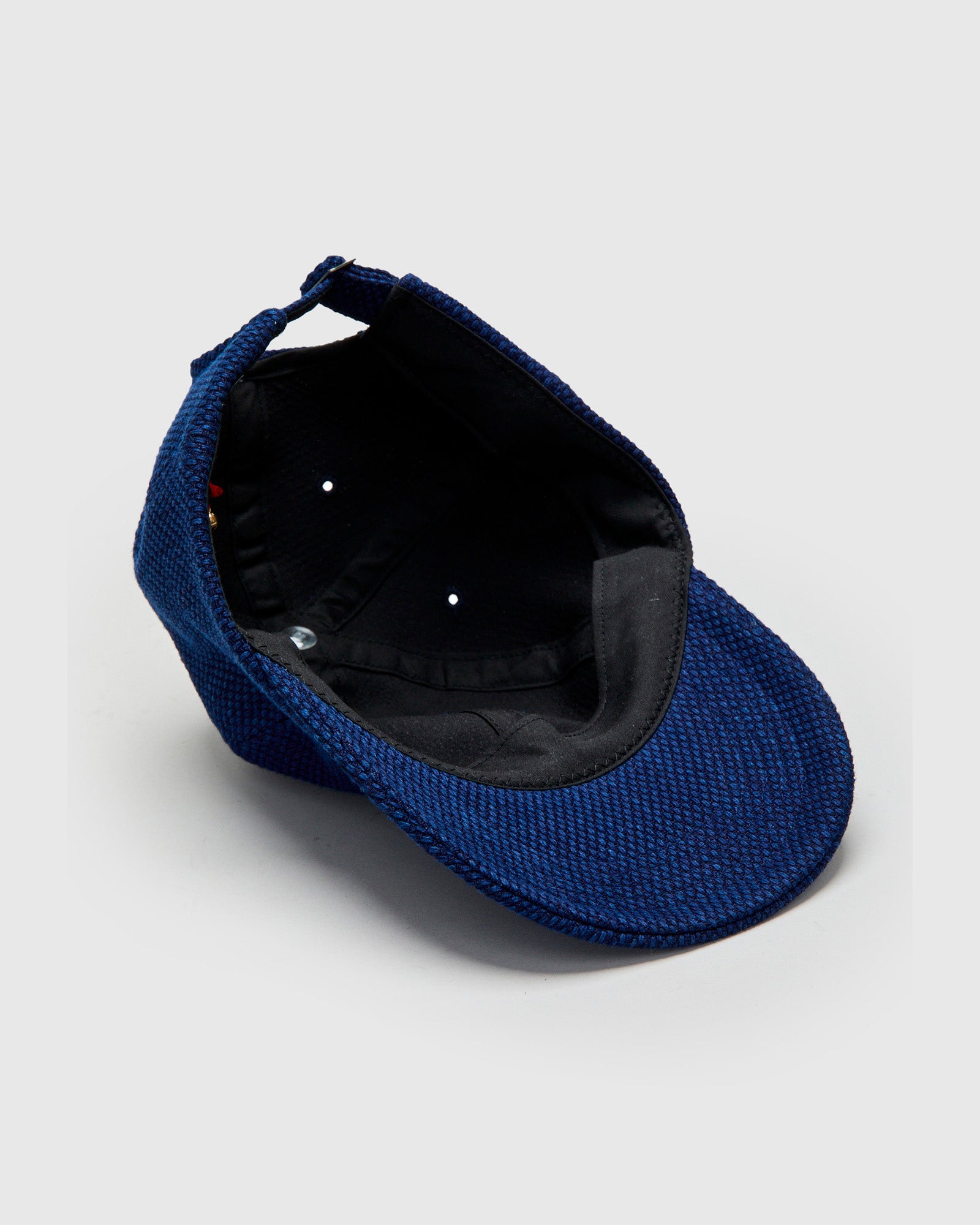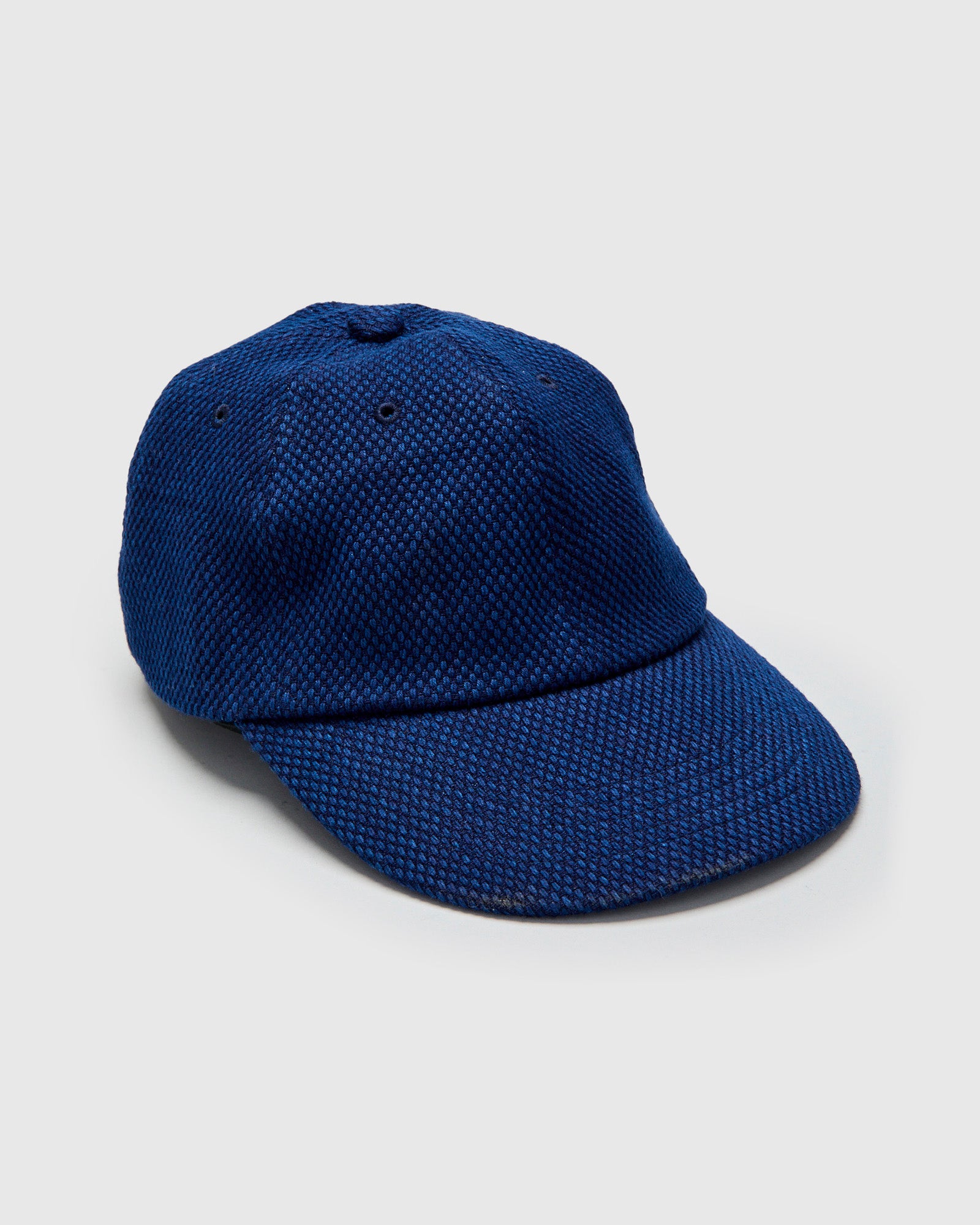 • This baseball cap from BLUE BLUE is made from an indigo-dyed woven sashiko fabric and features an adjustable strap at the back for maximum versatility. Dyed using genuine indigo for a deep color, Blue Blue Japan's woven sashiko fabric features a dense weave with a varying texture.