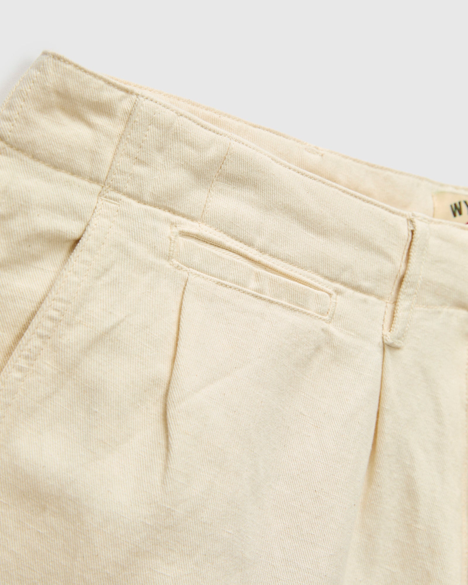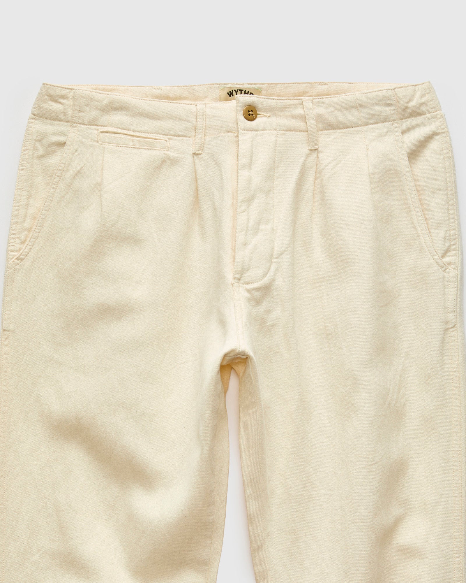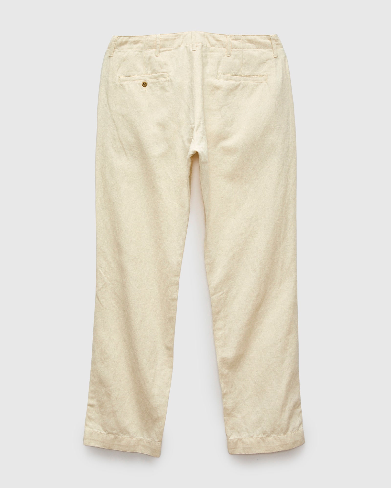 • Based on US military chinos brought back by G.I's, Wythe reinterprets the American slant pocket trouser. Crafted from a custom woven cotton-linen slub twill fabric, the chinos feature a high breathability, durable weave, and soft touch. The pants are cut in a classic straight leg with a medium-rise, and slight taper down the leg.
