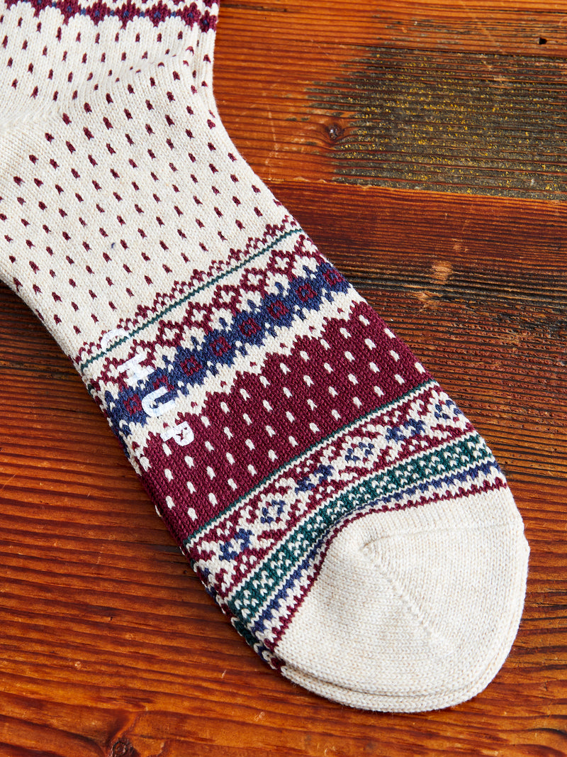 • The Log Home socks from CHUP are soft full-length wool socks which take their inspiration from the Northern Europe Log homes. Jacquard woven using a blend of heavyweight multi-colored yarn. All socks from CHUP are handcrafted in Japan as part of Glen-Clyde Inc.