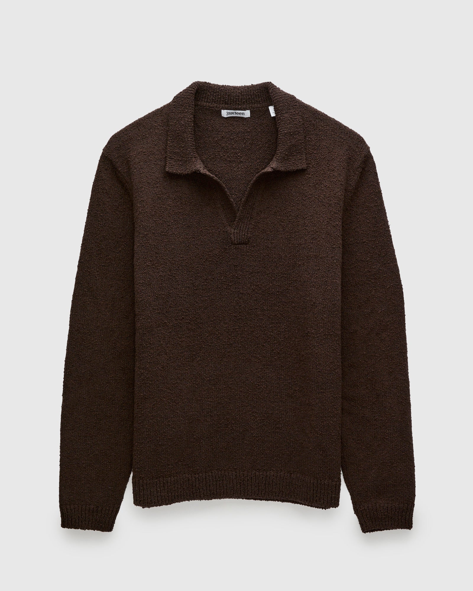 Long Sleeve Knit Polo in Bark Boucle